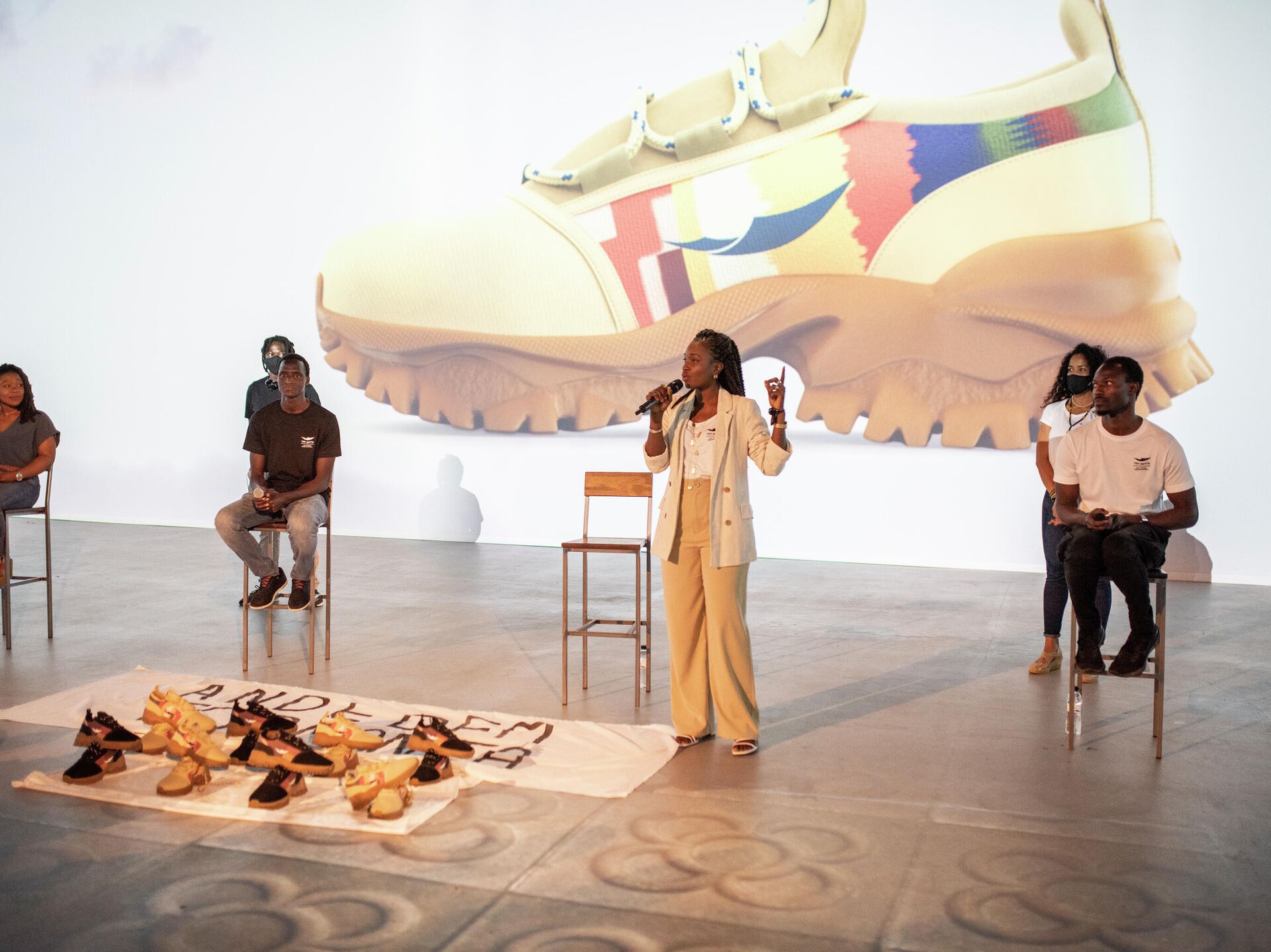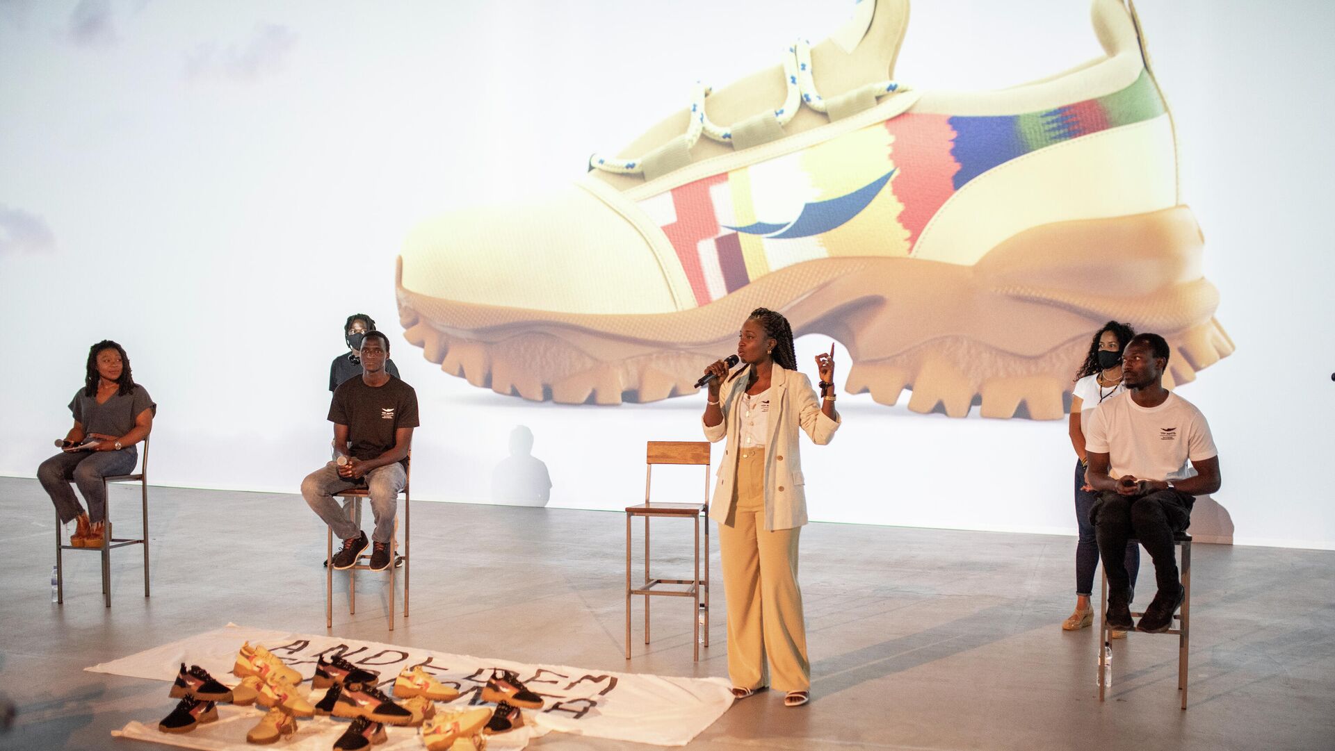 "It's not about just doing it, it's about doing it right" (No se trata solo de hacerlo, sino hacerlo bien) es el lema elegido —parafraseando la conocida consigna de Nike— para promocionar las zapatillas Ante Dem ("un caminar conjunto" en wolof, lengua senegalesa).
