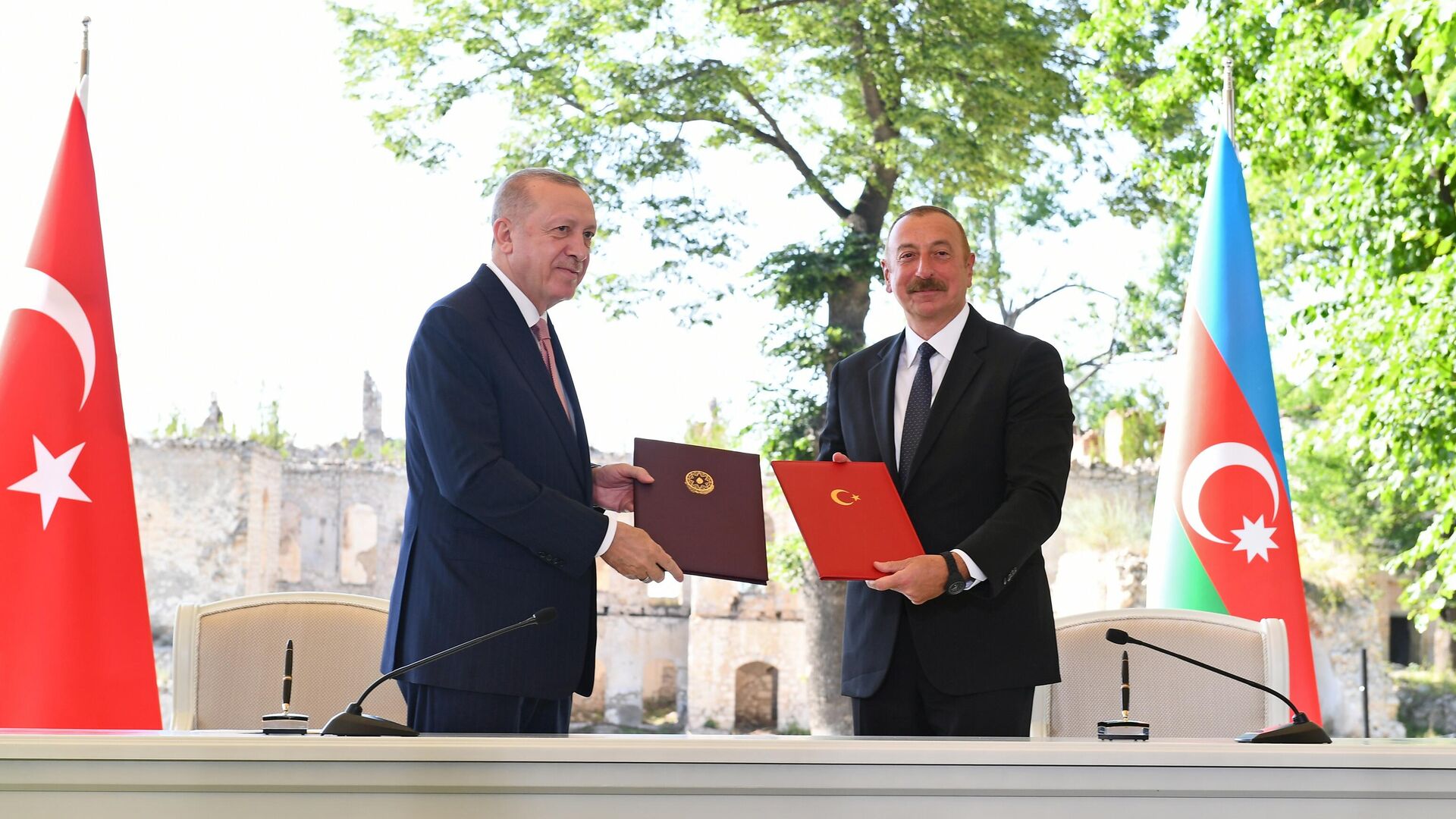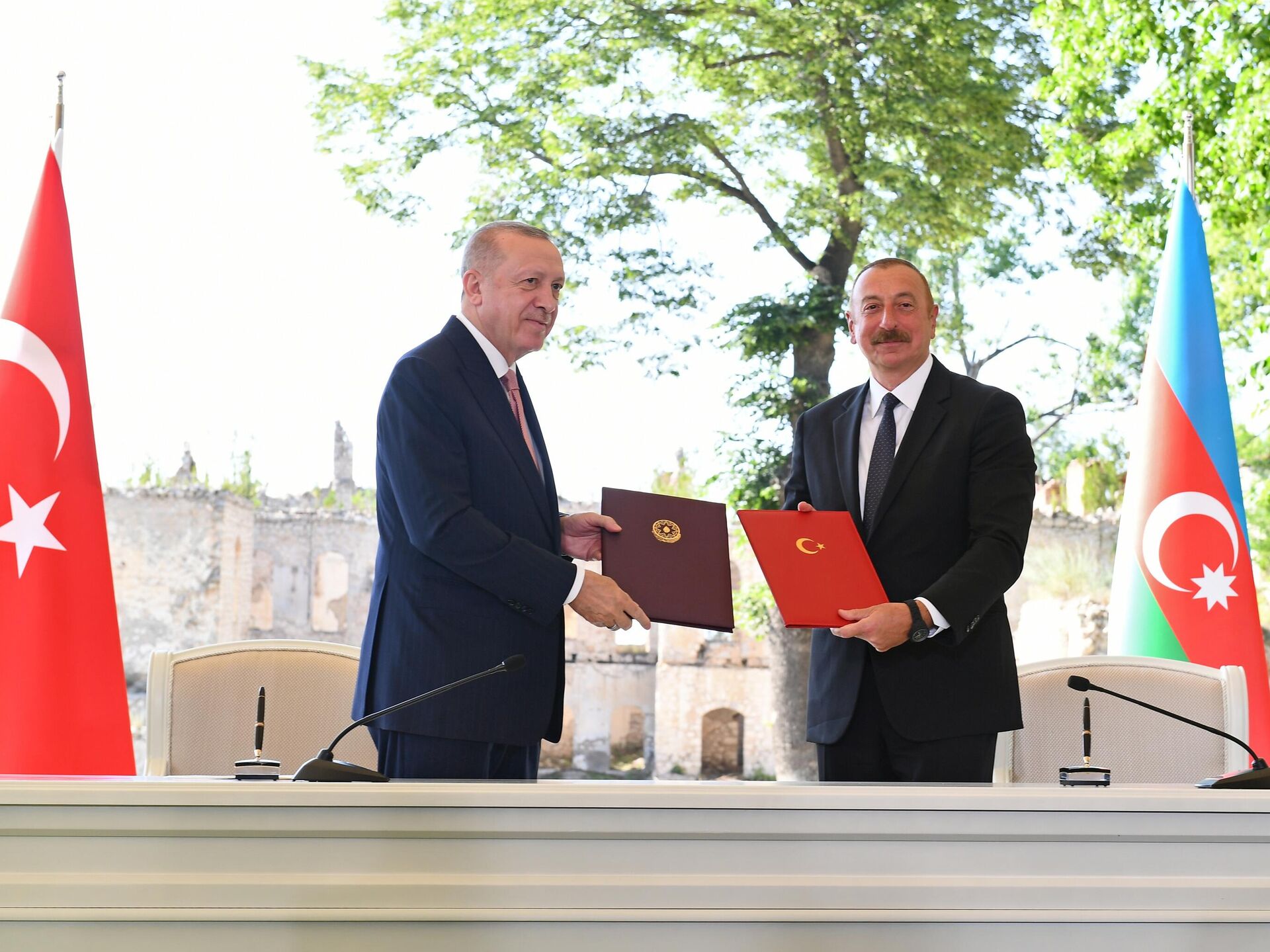 BAKÚ (Sputnik) — Los presidentes de Azerbaiyán y Turquía, Ilham Aliyev y Recep Tayyip Erdogan, firmaron durante una reunión en la ciudad de Shusha una... 15.06.2021, Sputnik Mundo