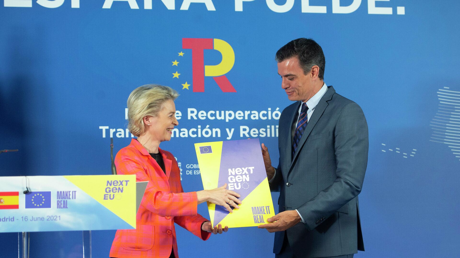 15:45 GMT 16.06.2021 (actualizado: 17:27 GMT 16.06.2021) El presidente del Gobierno de España, Pedro Sánchez, y la presidenta de la Comisión Europea, Ursula von der Leyen, han compartido entusiasmo por la aprobación del plan de recuperación económica tras la pandemia para España. Un programa de reformas por el que el país recibirá 69.500 millones de euros.