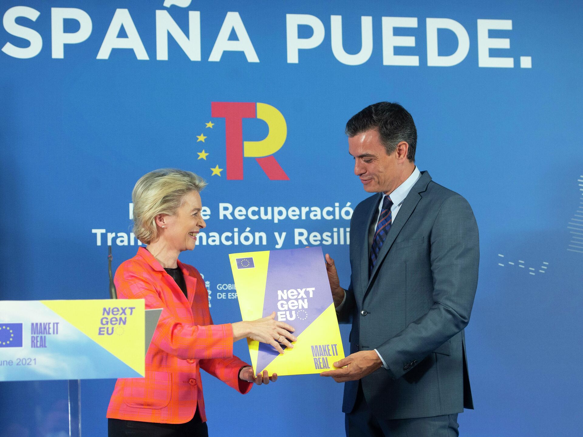 El presidente del Gobierno de España, Pedro Sánchez, y la presidenta de la Comisión Europea, Ursula von der Leyen, han compartido entusiasmo por la aprobación... 16.06.2021, Sputnik Mundo