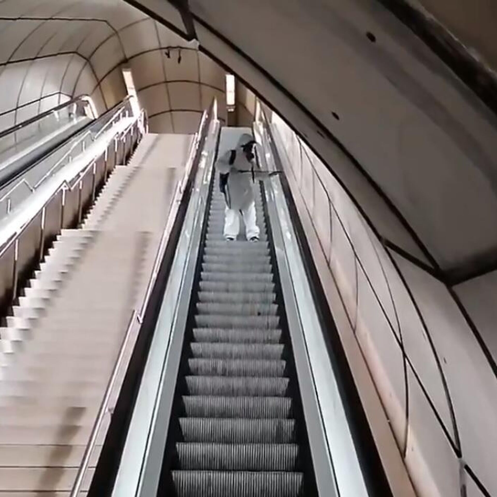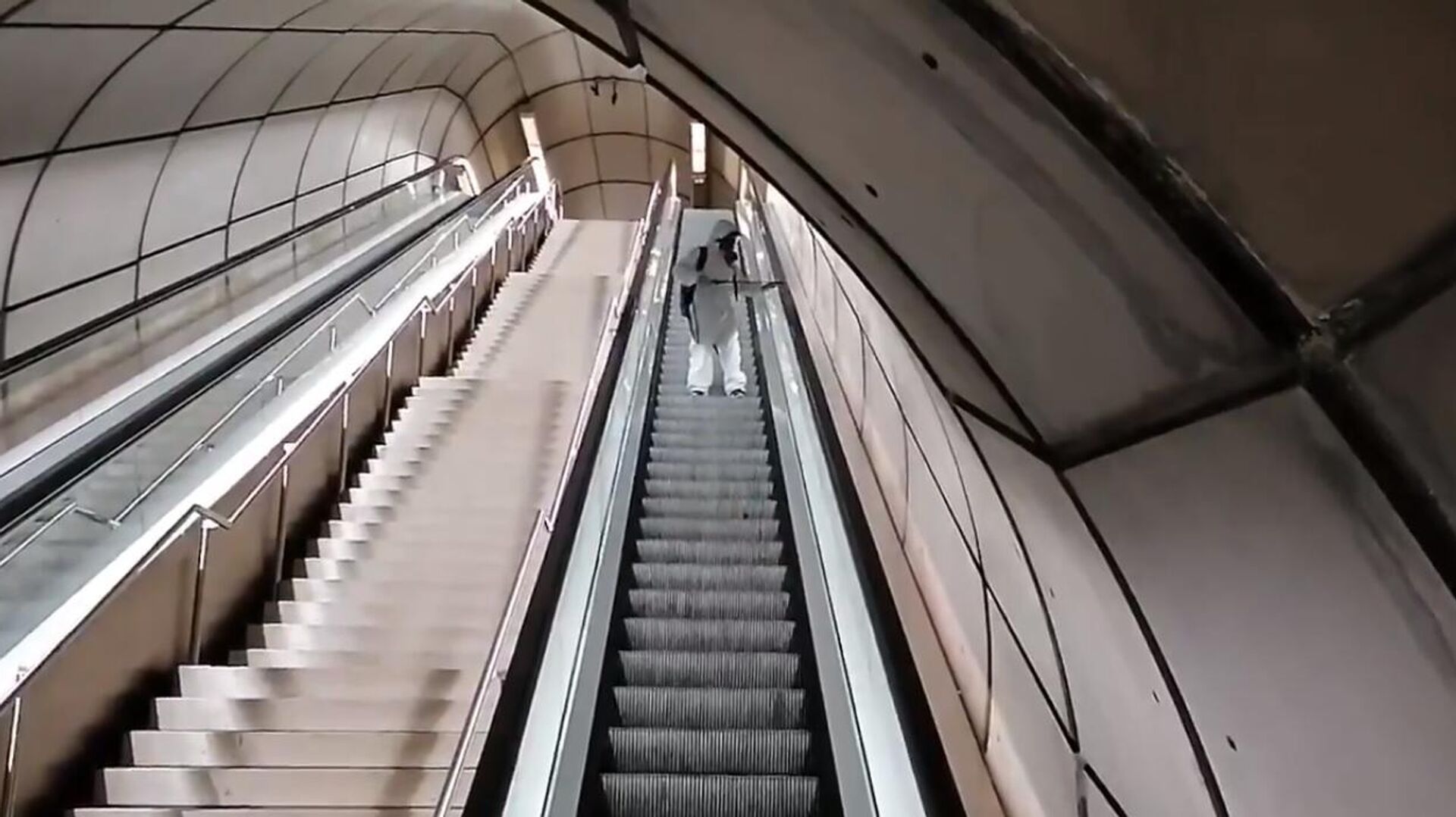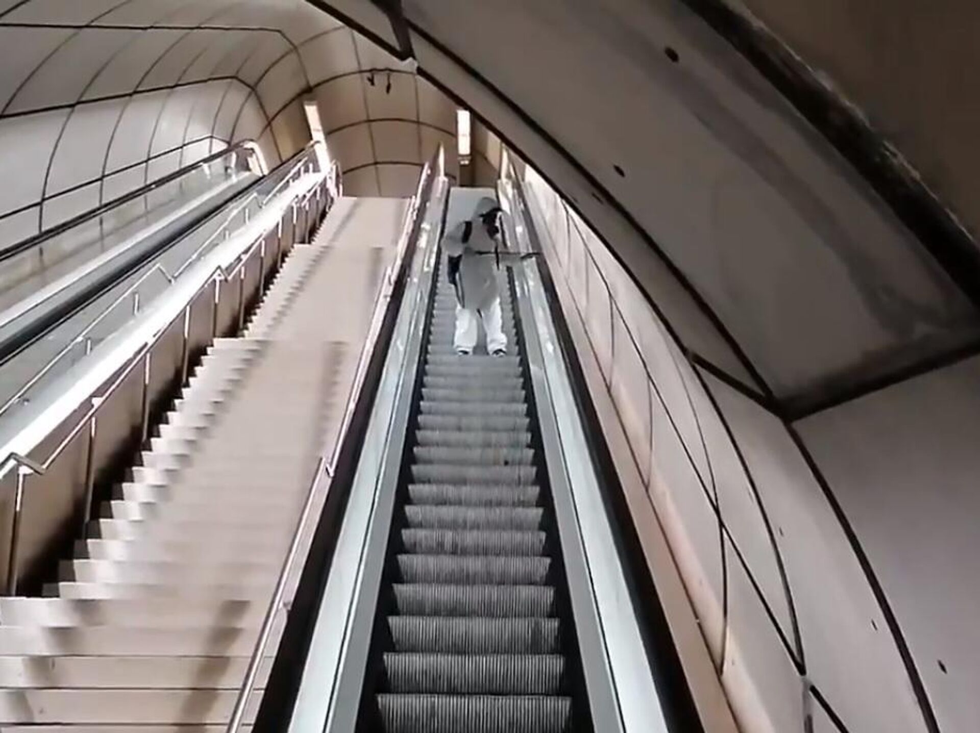 señores del metro de Bilbao XD ha desinfectado todo el rato el mismo trozo de escalera. se creen que somos tontos?