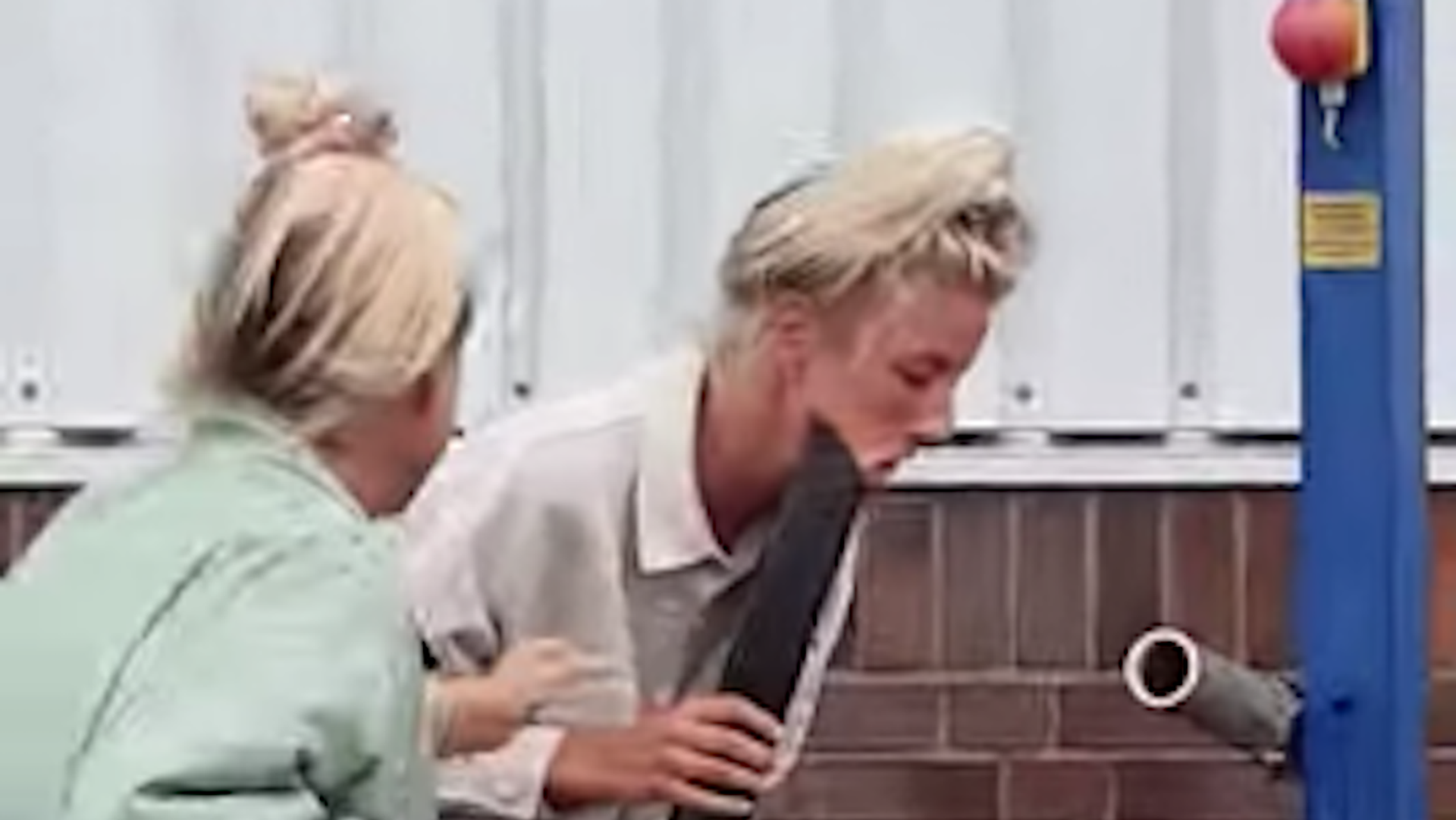 Sin embargo, en su improvisado concierto, no se da cuenta que tiene la boca de la aspiradora muy cerca de su mejilla y su cachete termina siendo succionado. Es aquí cuando pide ayuda a su amiga, incapaz de tenderle una mano porque se encuentra muerta de la risa.
