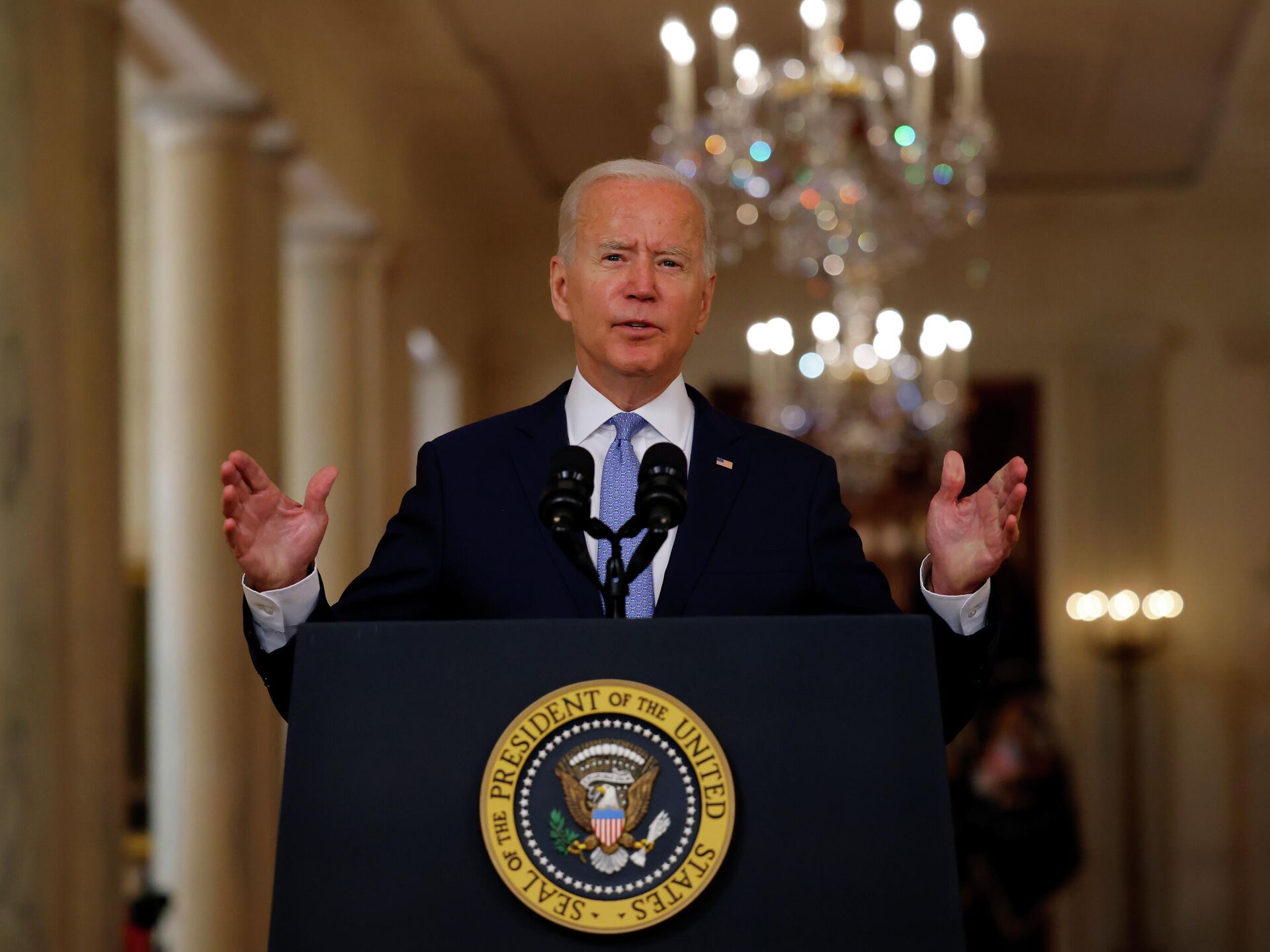 “Los talibanes han asumido compromisos públicos, transmitidos por televisión y radio en todo Afganistán, sobre el salvoconducto para cualquiera que quiera irse, incluidas las personas que trabajaron junto a los estadounidenses. No solo tomamos en cuenta su palabra, sino por sus acciones, y tenemos influencia para asegurarnos de que se cumplan esos compromisos", afirmó el mandatario.