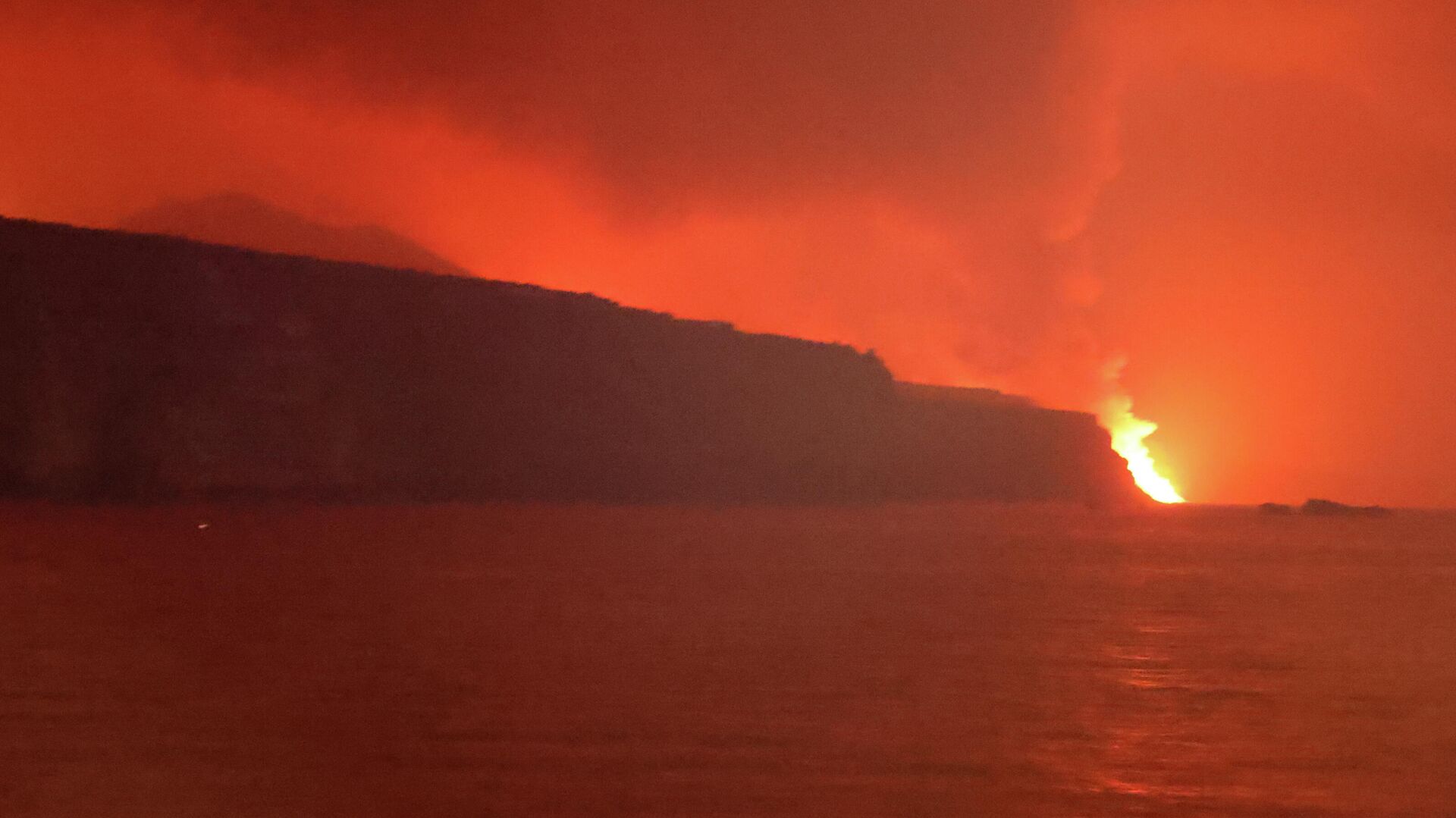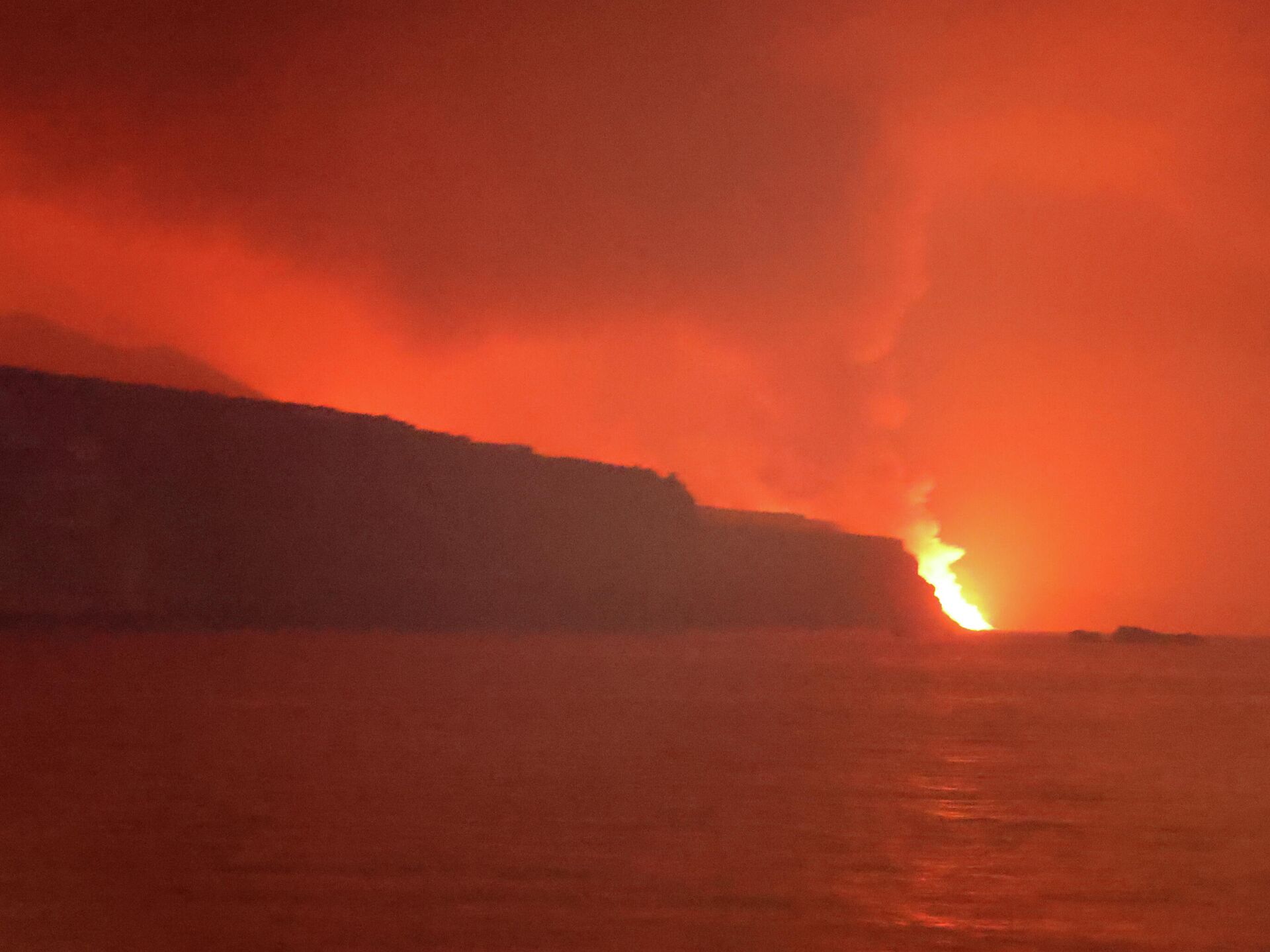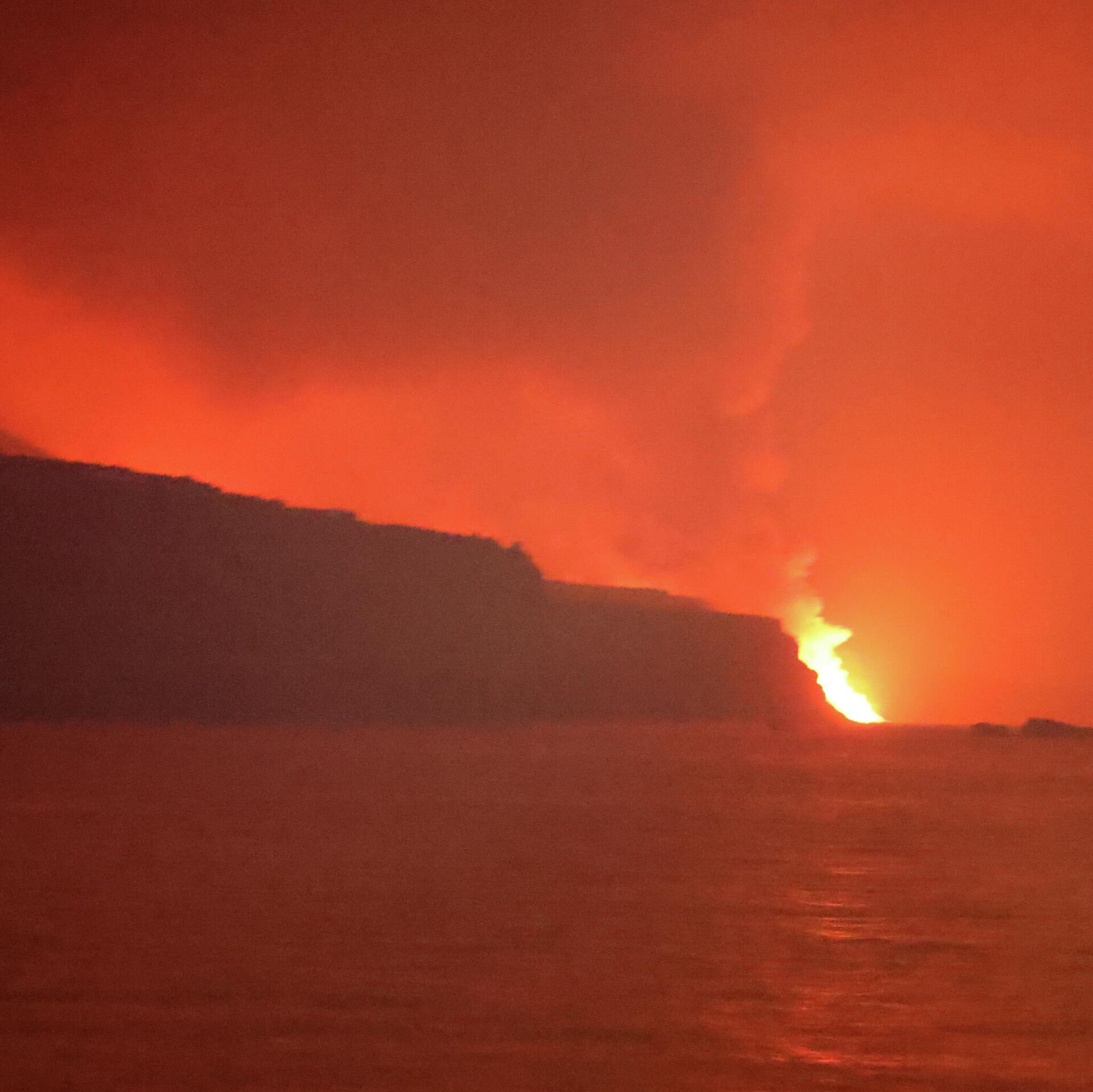La colada alcanza el mar. Imagen tomada desde el buque oceanográfico Ramón Margalef. pic.twitter.com/gQGoKfkwig
