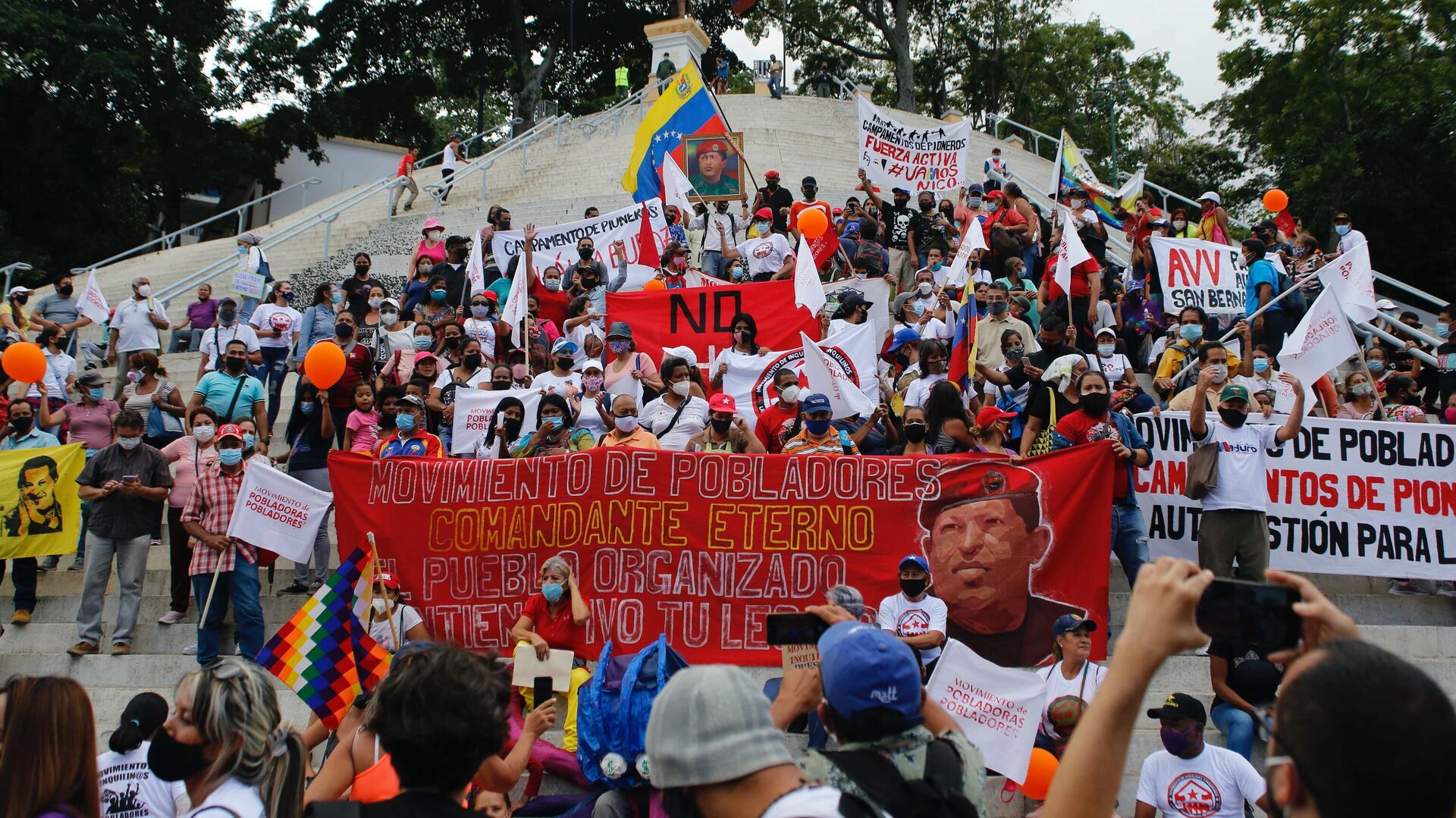 Con el líder bolivariano Hugo Chávez como estandarte, un conjunto de organizaciones sociales y territoriales de Caracas articuladas en el Movimiento de Pobladoras y Pobladores salió a las calles con un documento que plantea la convocatoria a un nuevo ciclo de movilización popular por hábitat y vivienda.