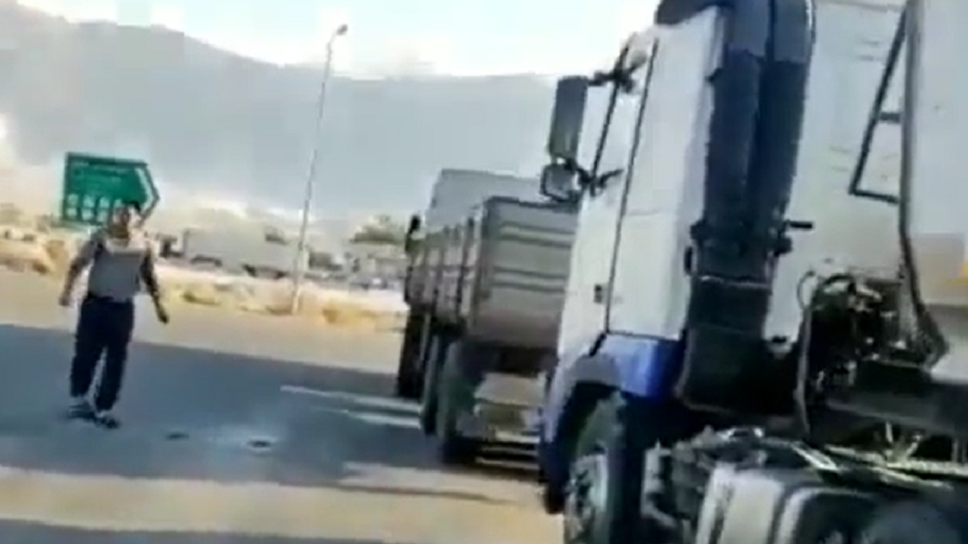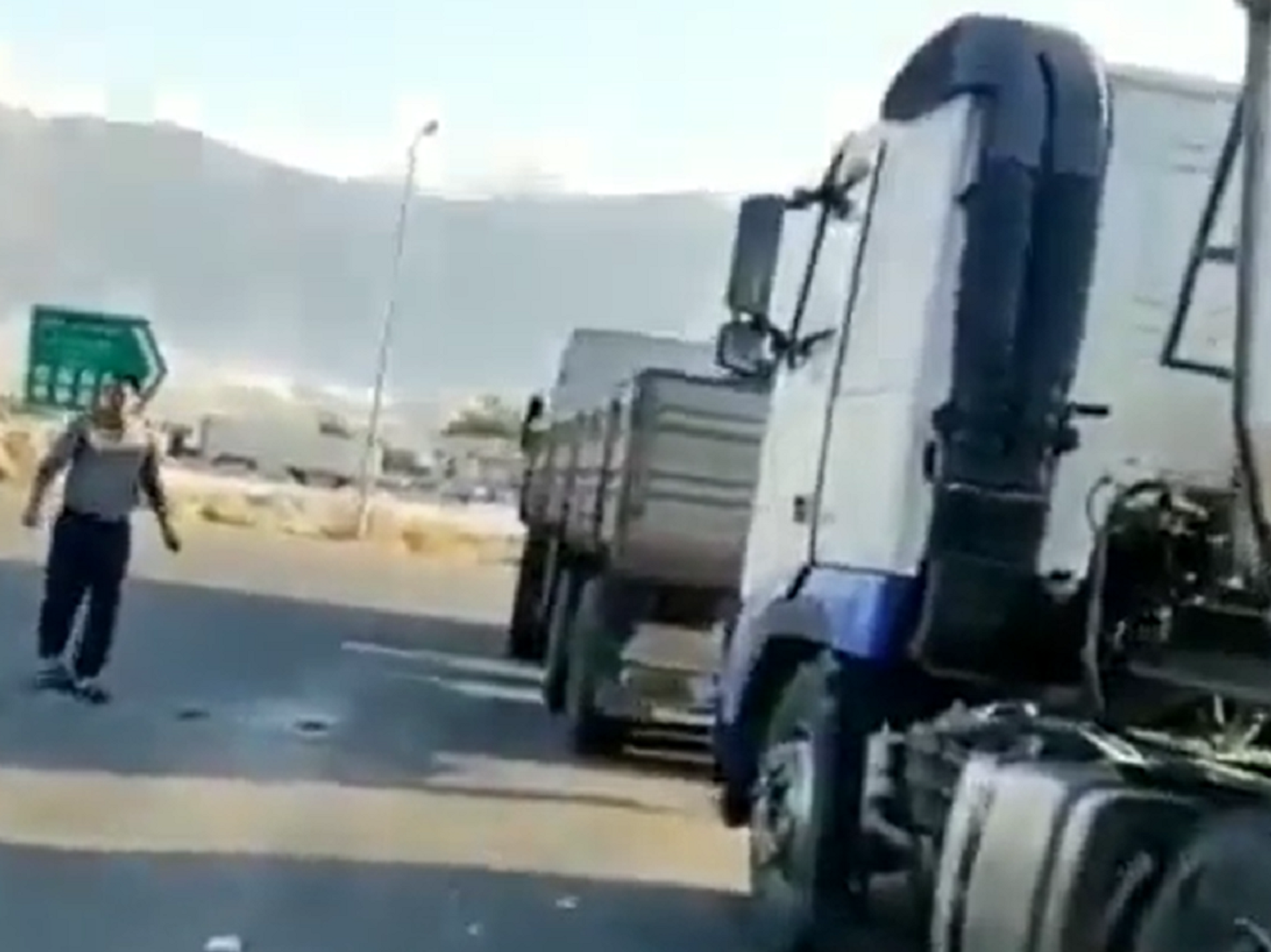 Un sismo de magnitud 6,3 golpeó el sur de Irán. Un video muestra cómo fuertes temblores hacen que dos camiones de varias toneladas se pongan a 'bailar' en plena carretera. El terremoto también levantó nubes de polvo blanco en las montañas de la zona.