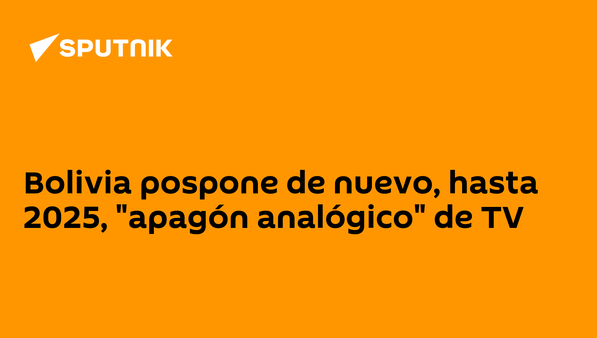 LA PAZ (Sputnik) — El Gobierno de Bolivia confirmó un nuevo aplazamiento del "apagón analógico" de la televisión abierta, que debió comenzar en noviembre de... 15.01.2022, Sputnik Mundo