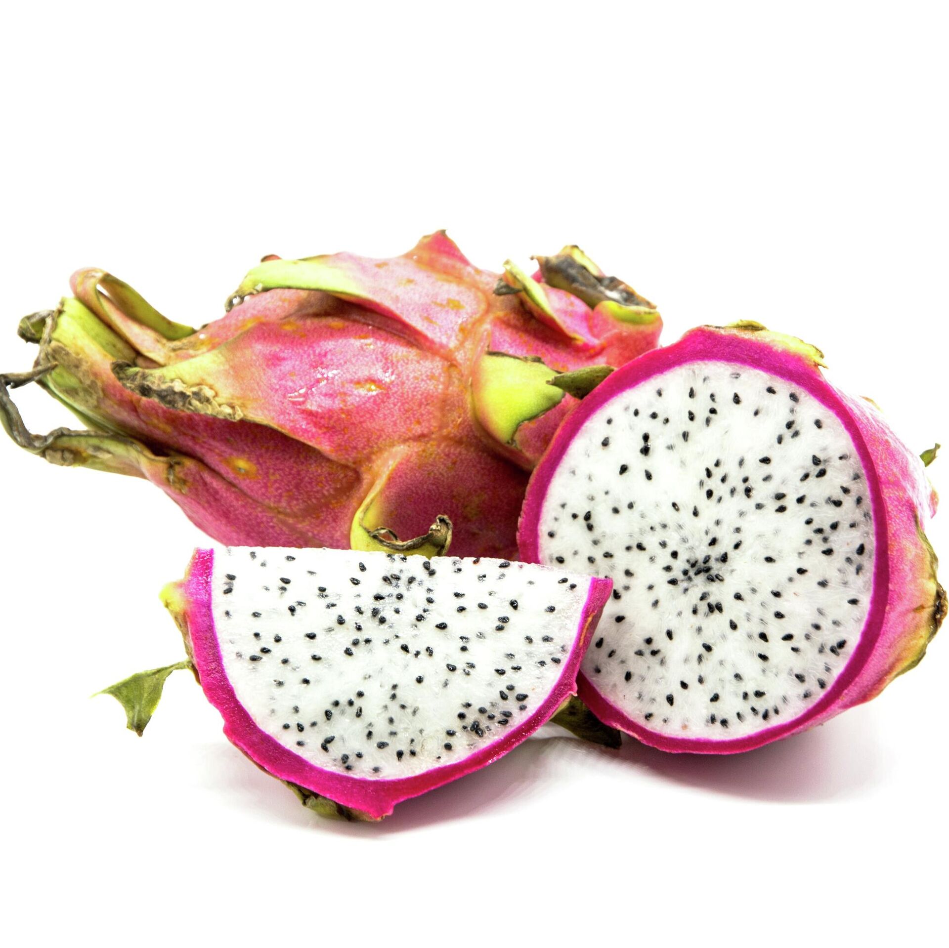 La fruta del dragón nace de una planta cactácea originaria de países tropicales. Su producción, sin embargo, se ha expandido a otras partes del mundo. Esta fruta puede tener un exterior de color rosado o amarillo. La parte de adentro consiste en pulpa blanca carnosa salpicada de pequeñas semillas negras.