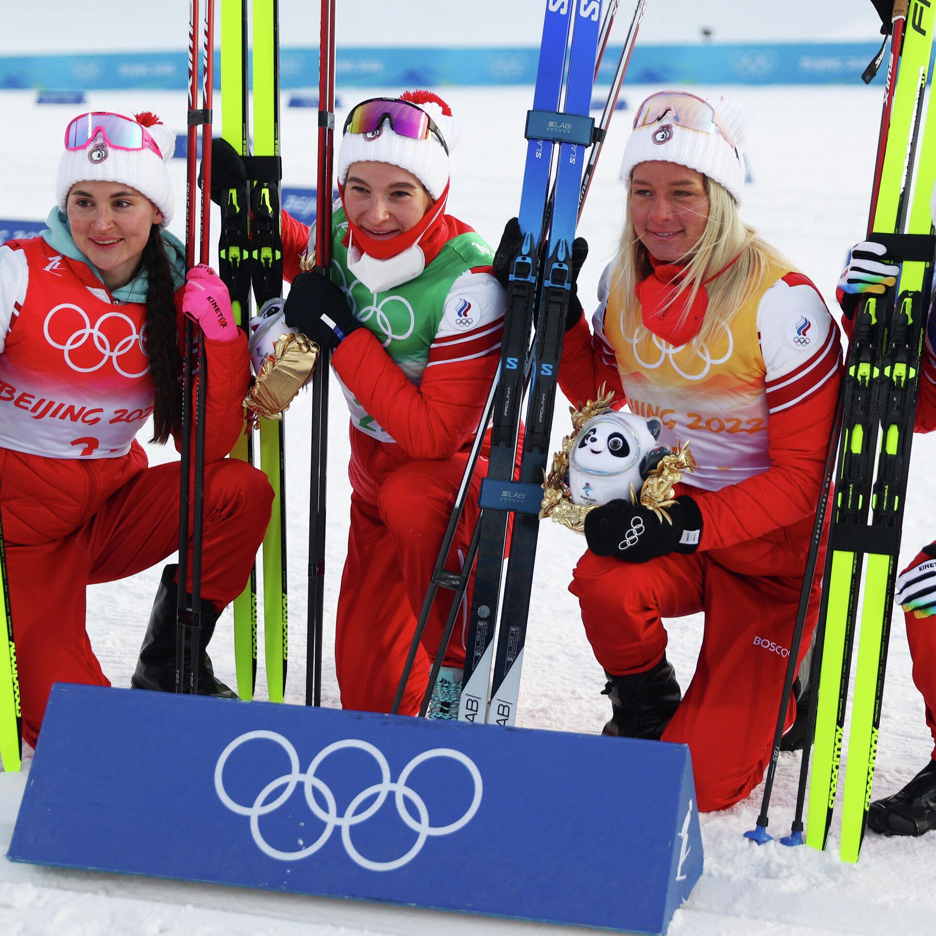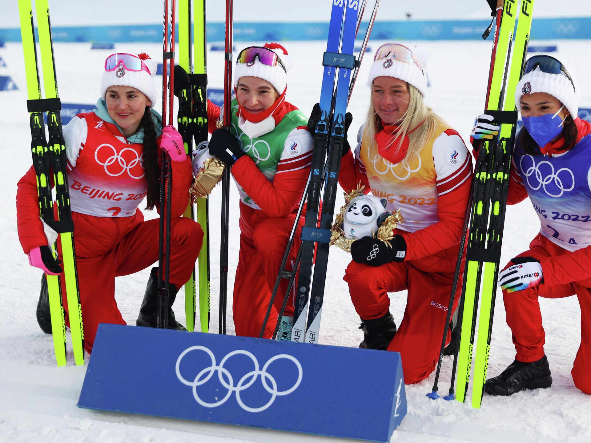 El equipo integrado por Veronika Stepanova, Natalia Nepryaeva, Tatiana Sorina y Yulia Stupak completó la carrera en 53 minutos y 41.0 segundos y ganó la medalla de oro, el 12 de febrero de 2022 - Sputnik Mundo, 1920, 12.02.2022