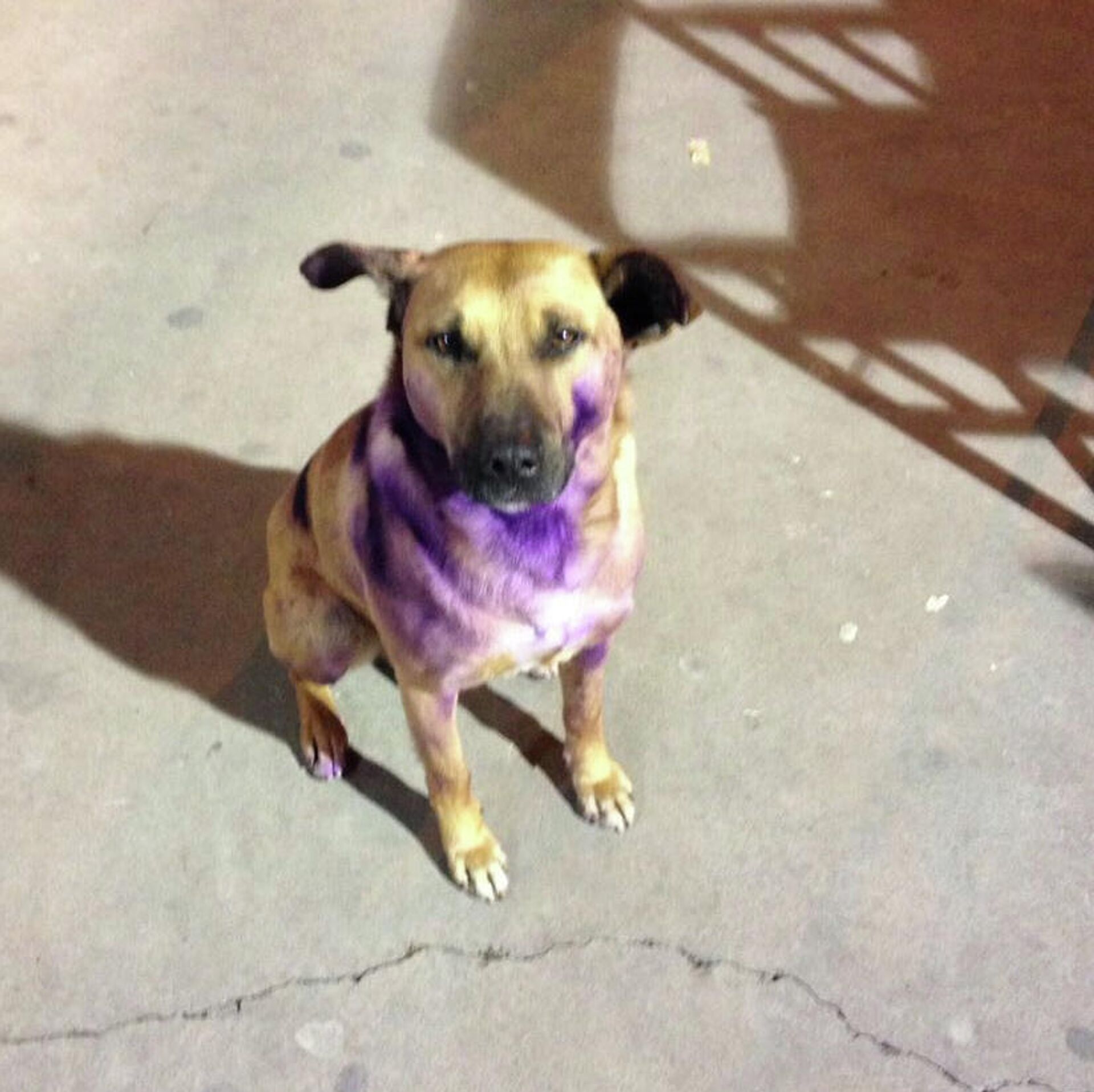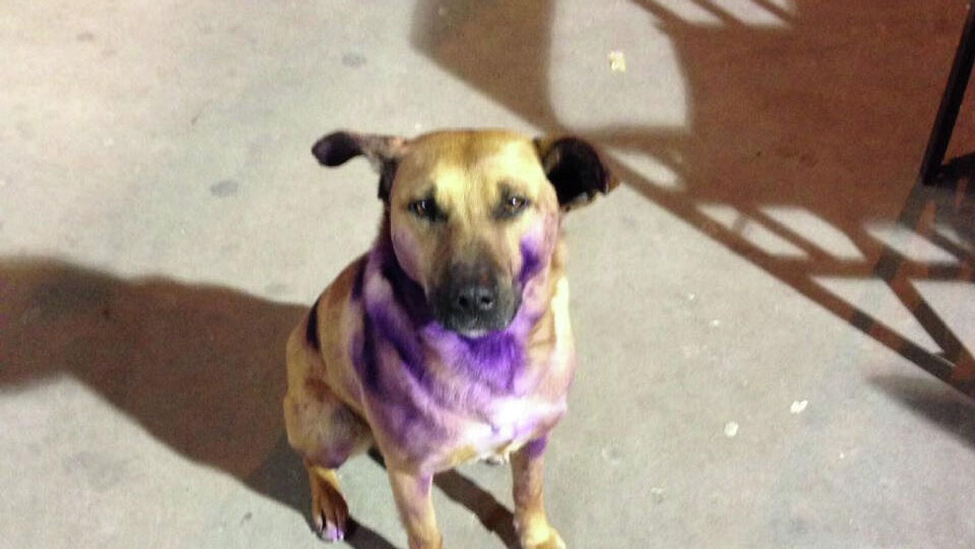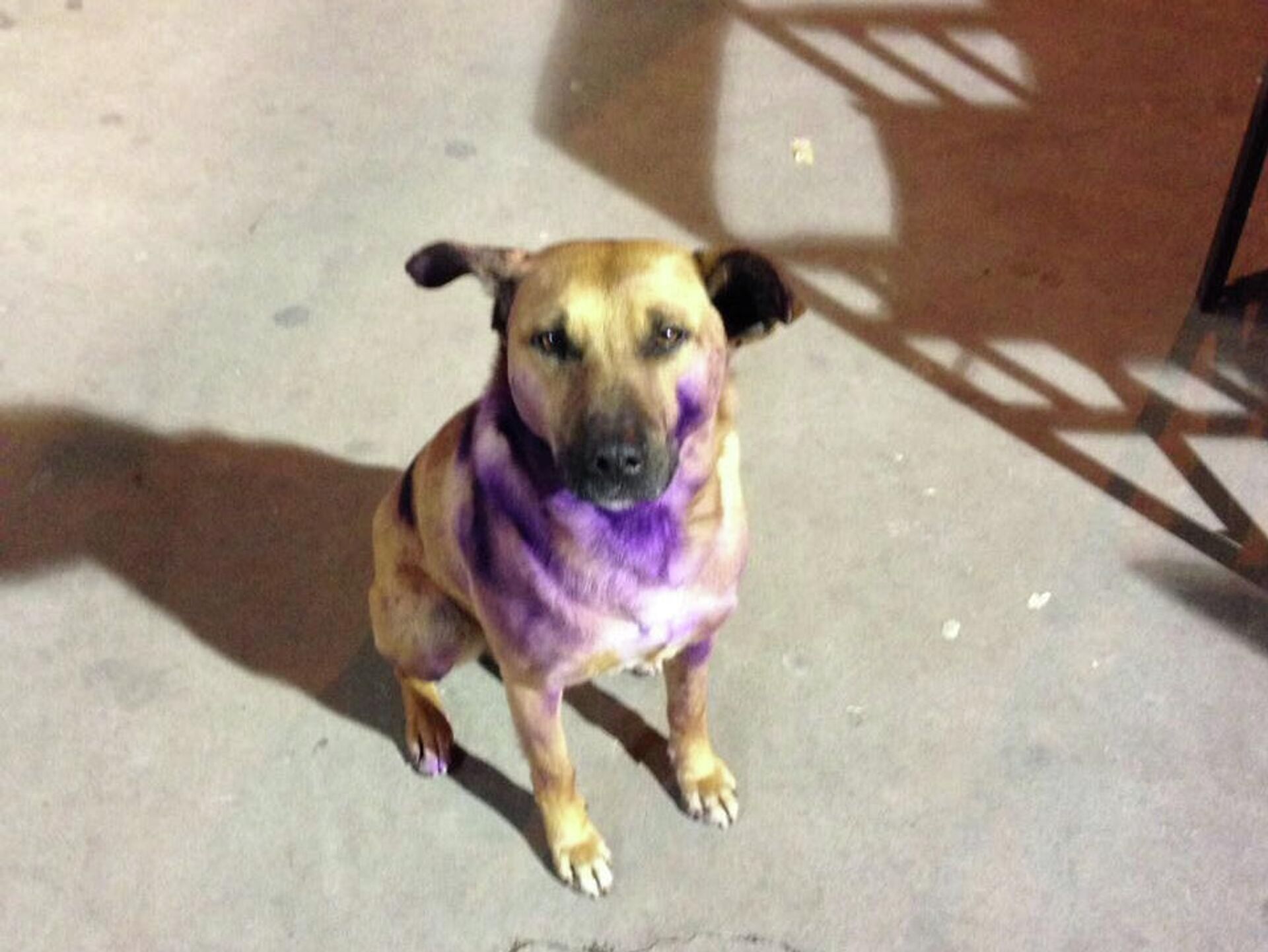 Al menos desde 2016 circula la imagen de un perro que tiene pintado el pecho de morado, supuestamente porque un grupo de feministas lo atacó por "ser macho".