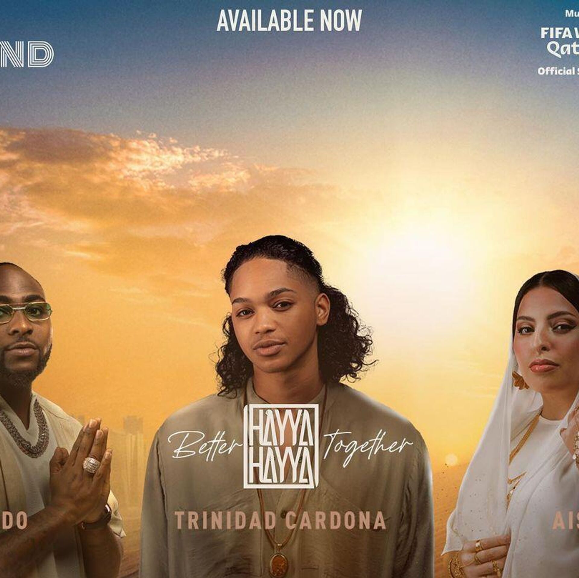 Bajo el nombre de Hayya Hayya (better together) —vamos vamos, mejor juntos en español—, la Copa del Mundo de Catar 2022 ya tiene su canción oficial, con las voces del nigeriano Davido, la catarí Aisha y el joven estadounidense Trinidad Cardona.Difundida a través de las plataformas de streaming y los canales oficiales de la FIFA, el video muestra imágenes de archivo de futbolistas de todo el mundo.Varios jugadores latinoamericanos aparecen en el video del sencillo: el histórico jugador de la selección argentina, Diego Armando Maradona, el brasileño Cafú, así como el delantero uruguayo Edinson Cavani o el zaguero chileno Gary Medel."Quiero recorrer el camino en cada calle, quiero jugar con el mundo a mis pies", menciona el nuevo himno, que es parte de una estrategia de la FIFA que apela llegar a una audiencia internacional a través de la unión del fútbol y la música."Esta canción, que reúne voces de todo el continente americano, África y Oriente Medio, simboliza cómo la música y el fútbol pueden unir al mundo", dijo Kay Madati, directora comercial de la FIFA.¿Quiénes son los cantantes?