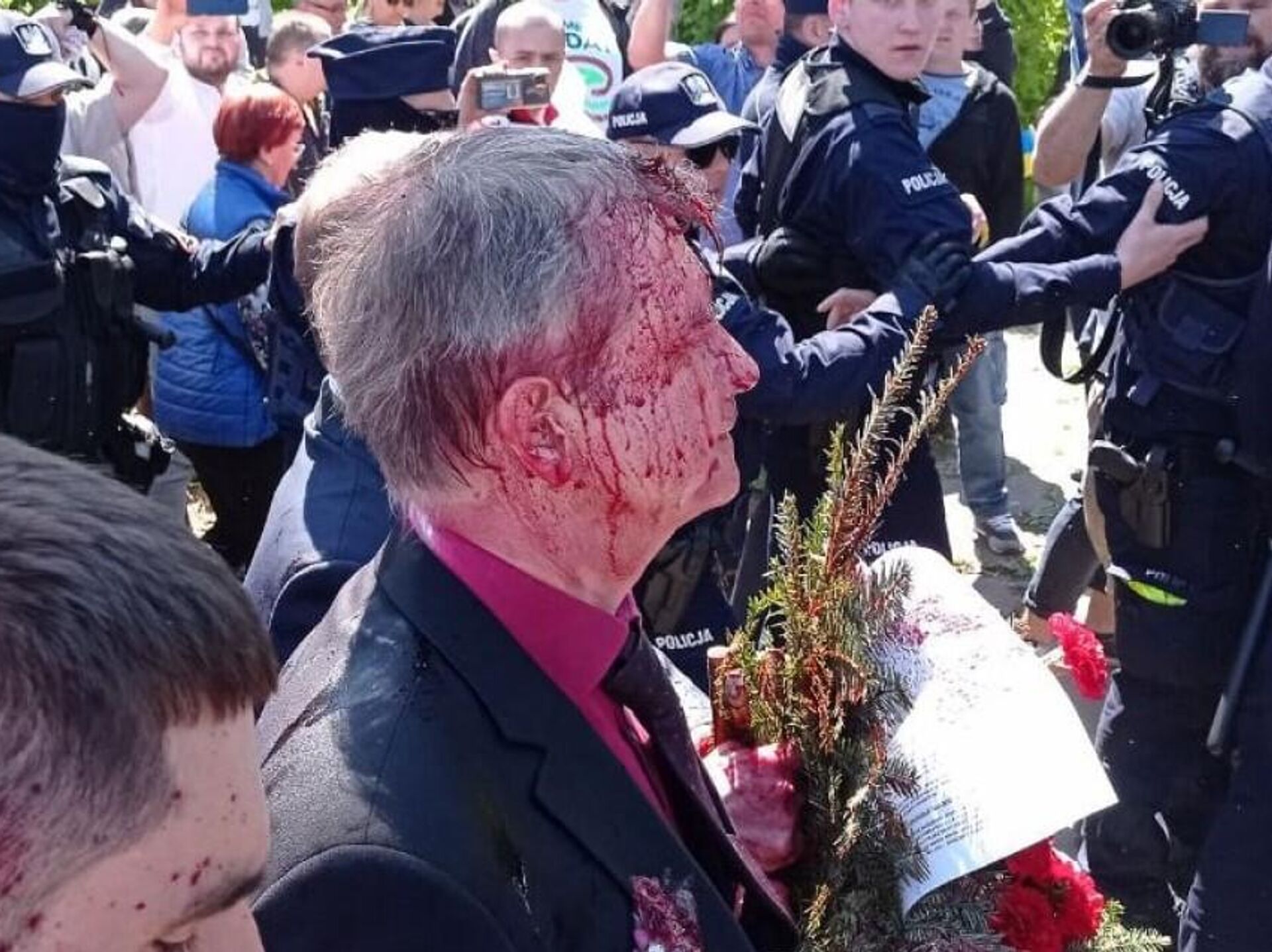 El embajador ruso en Polonia, Serguéi Andréyev, fue agredido cuando intentaba depositar una ofrenda floral en el cementerio de los soldados soviéticos en Varsovia.