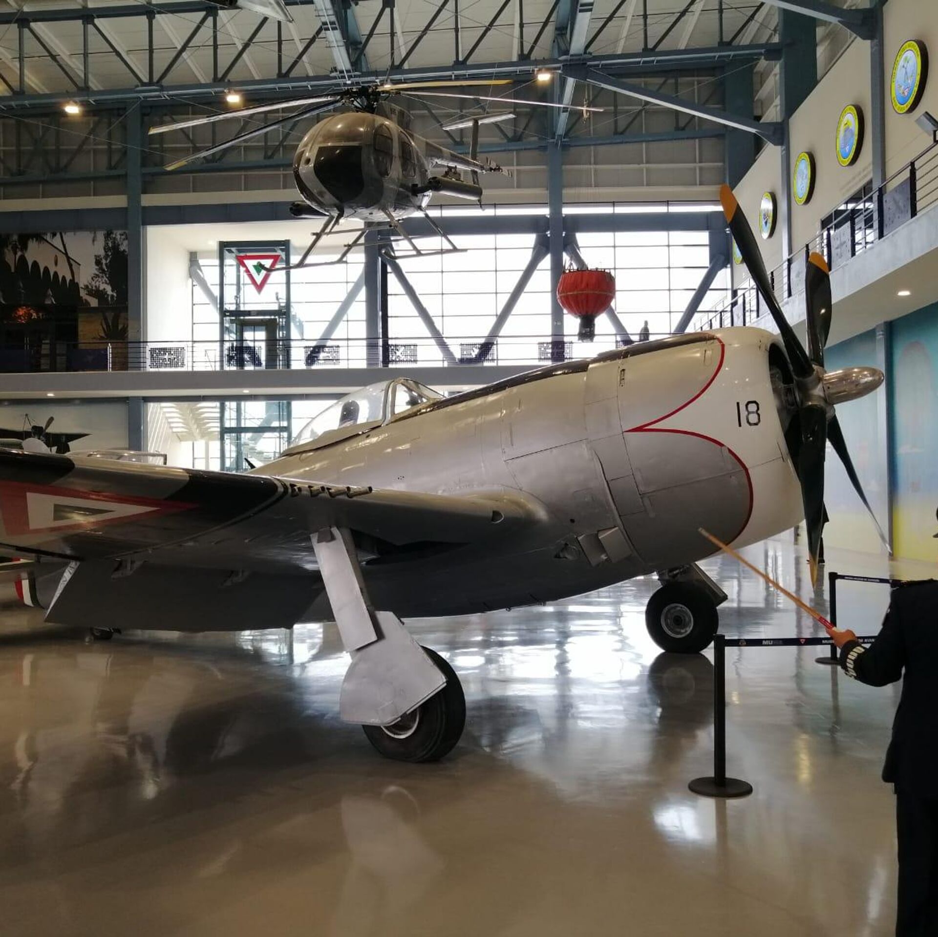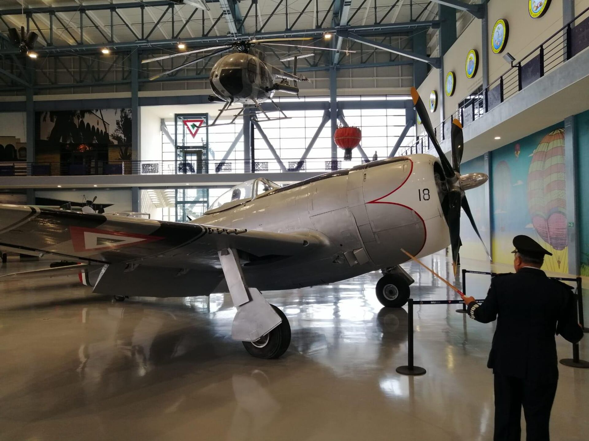 O bien una de las aeronaves, pieza original contenida en el museo, con que Estados Unidos repuso las decenas de aviones adquiridos por México y que fueron dejados en Filipinas, en el marco de los vaivenes del conflicto. Se trata de un P-47D Thunderbolt, conocido como Nariz blanca.