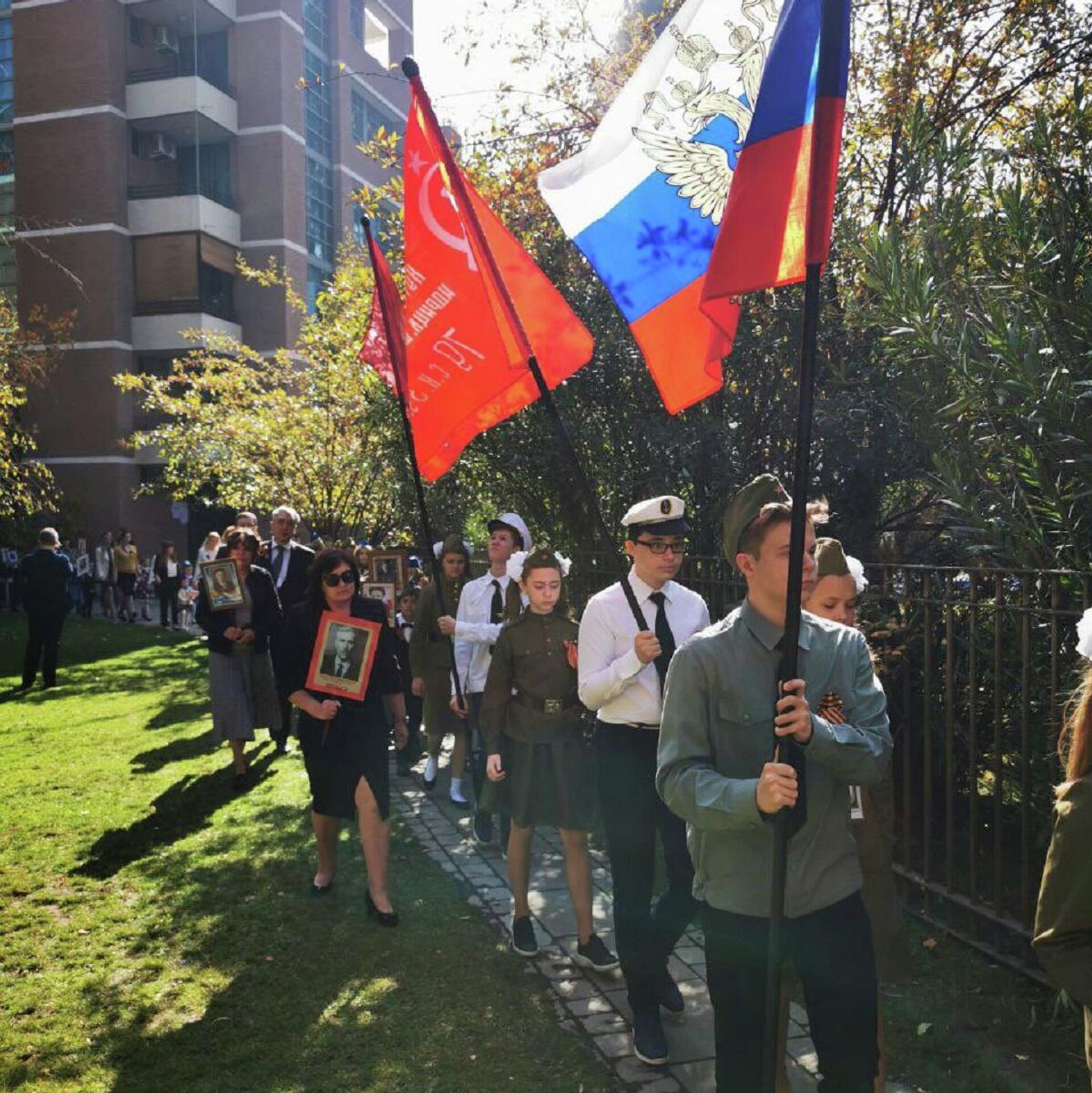 "En el territorio de la embajada de Rusia en Chile se celebró la acción patriótica tradicional Regimiento Inmortal. Más de 60 personas –empleados de la misión diplomática y miembros de sus familias– marcharon con retratos de sus parientes y amigos, veteranos de la Gran Guerra Patria", dijo.