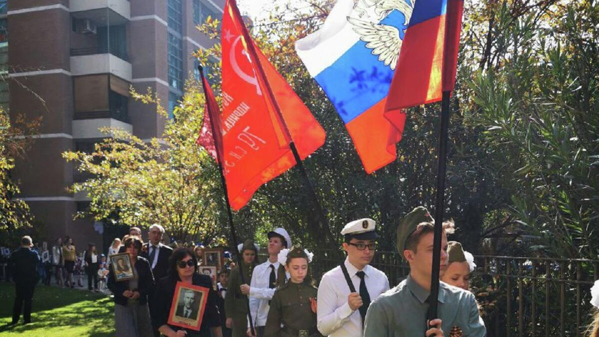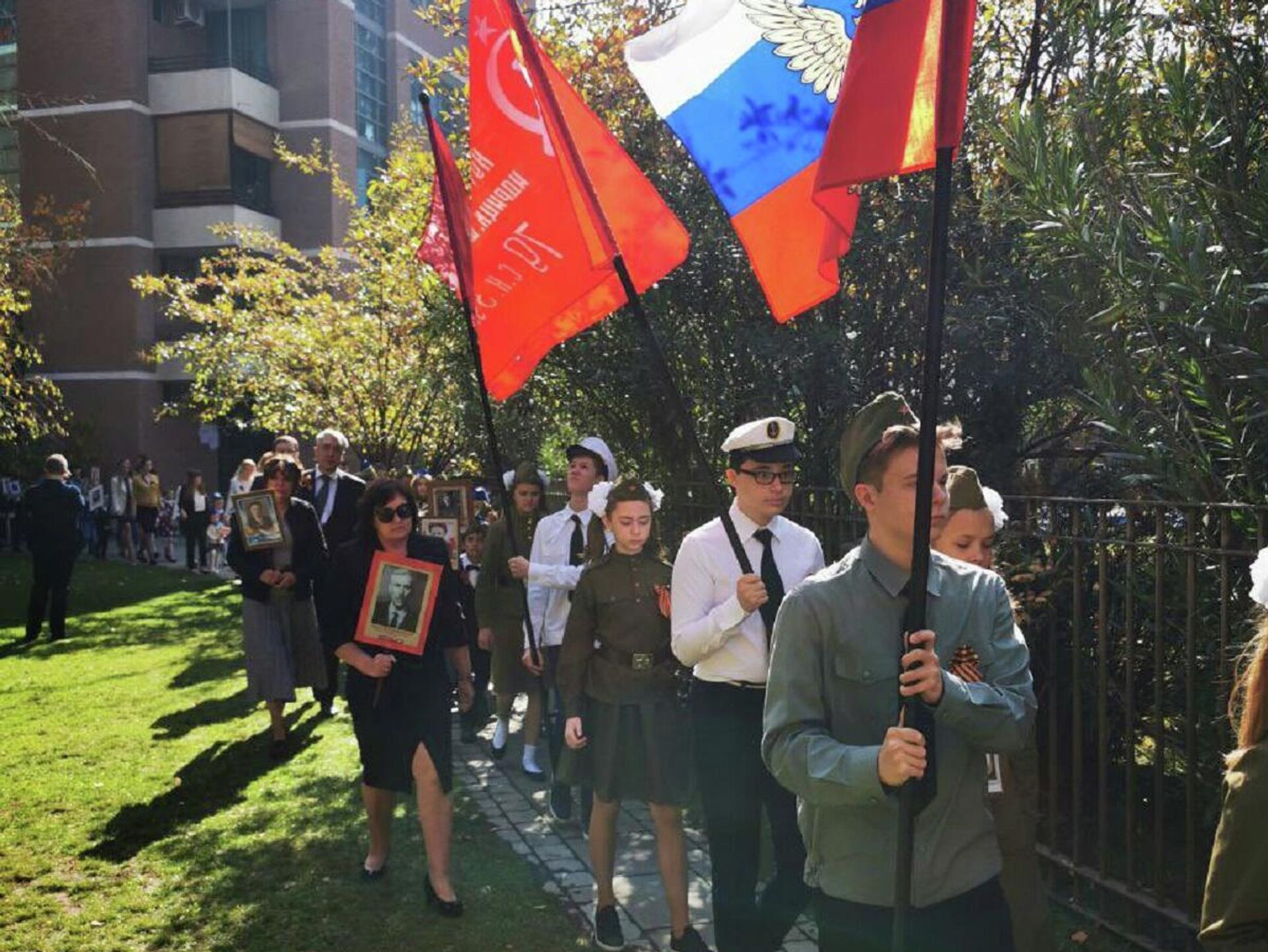 Durante el evento, los estudiantes de la escuela de la embajada recitaron poemas y cantaron canciones de los años de guerra.Además, el agregado de Defensa ruso, Serguéi Tsigankov, destacó en su intervención la importancia de recordar el heroísmo de los pueblos de la Unión Soviética en la Gran Guerra Patria en el contexto de los intentos de Occidente de "reescribir la historia" y "retorcer el rol y el lugar" de Rusia en la victoria sobre el nazismo en la Segunda Guerra Mundial.La marcha del Regimiento Inmortal se llevó a cabo por primera vez el 9 de mayo de 2012 en la ciudad siberiana de Tomsk a iniciativa de periodistas de la televisión local, y desde entonces se celebra anualmente en muchas ciudades rusas y en otros países.Los participantes en el evento llevan los retratos de sus seres queridos que perdieron la vida en los combates de la Segunda Guerra Mundial.