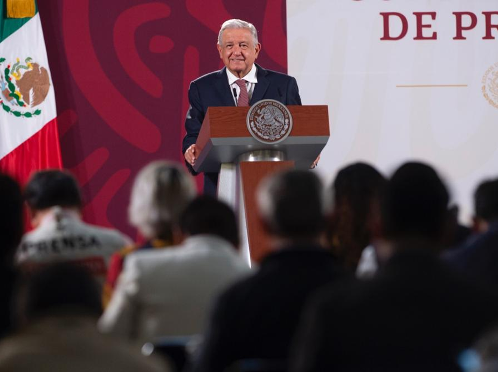 El presidente de México, Andrés Manuel López Obrador, ofrece su tradicional rueda de prensa desde el Salón de la Tesorería del Palacio Nacional, en la Ciudad de México.