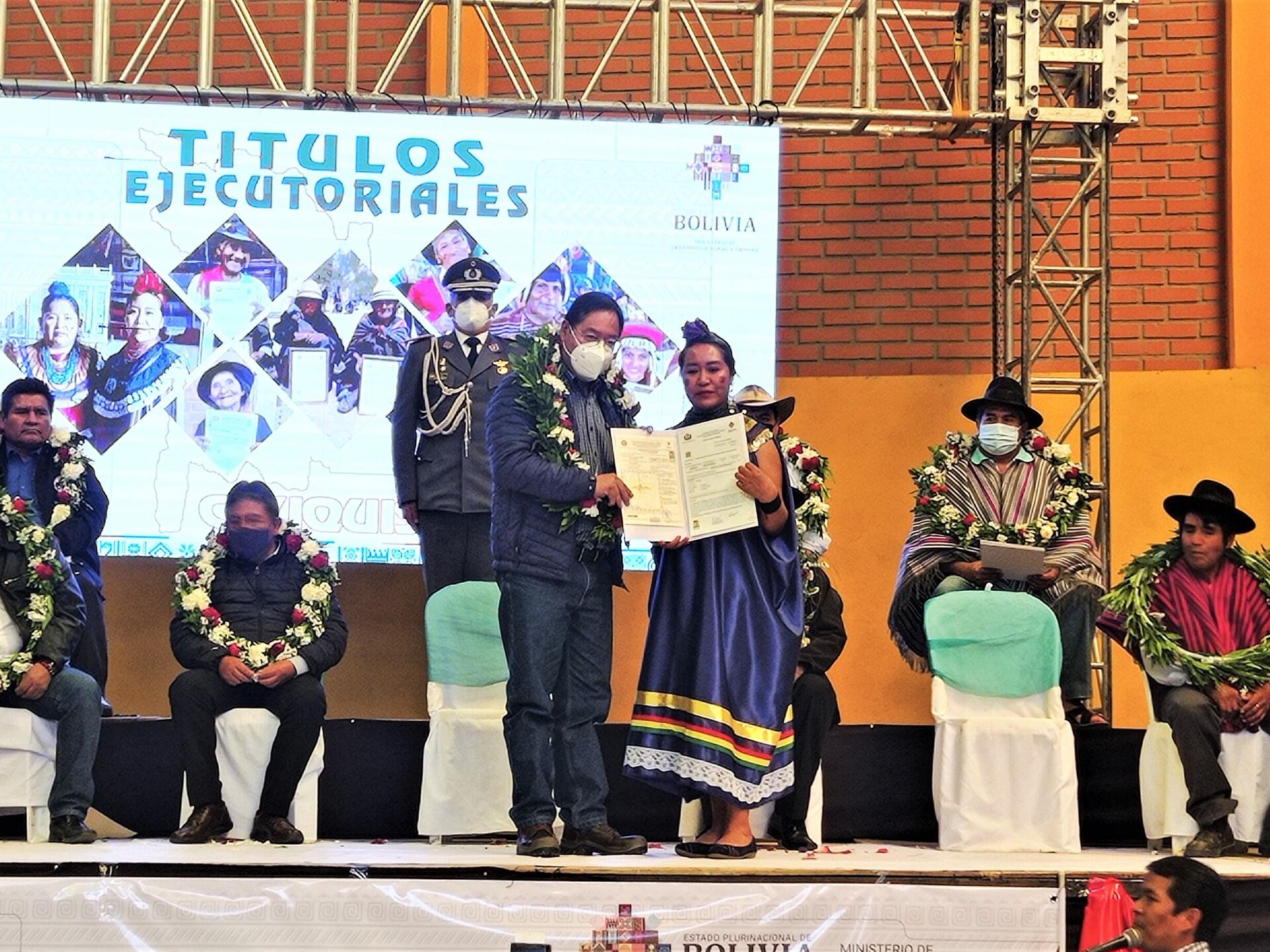 "Han sido muchos años. Cada uno de ustedes que hoy recibe estos 1.091 títulos ¿cuántos años han esperado este momento? He visto a hermanas y hermanos derramar lágrimas por esto, para sentirse realmente propietarios de la tierra donde trabajan, donde generan su alimento y alimentan al pueblo boliviano", destacó Arce en el Coliseo San José, en el barrio sucrense de Huallparrimachi.