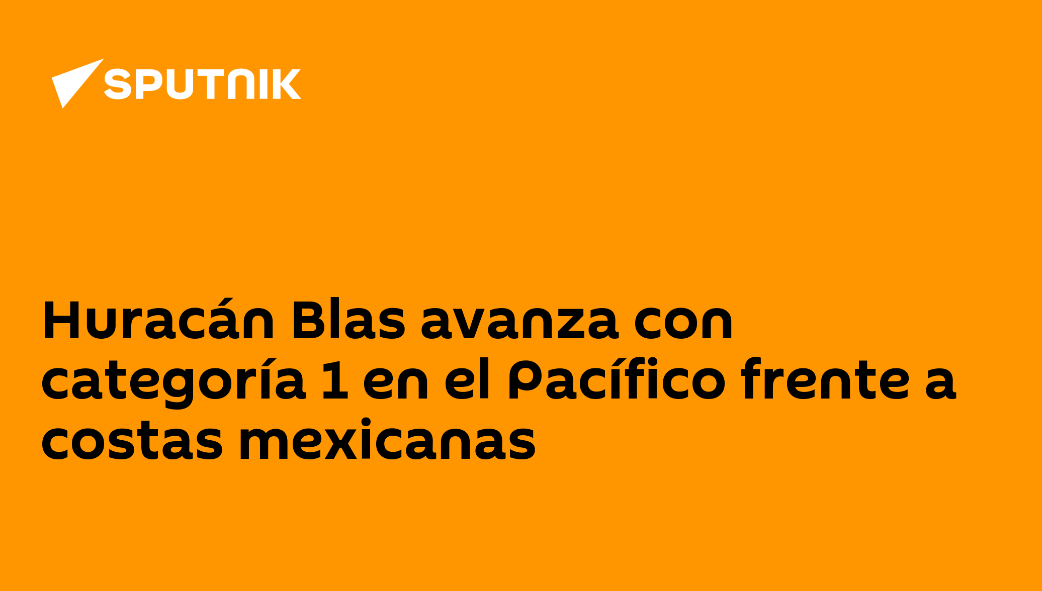 CIUDAD DE MÉXICO (Sputnik) — El huracán Blas avanza en aguas del océano Pacífico, frente a las costas mexicanas de los estados Michoacán y Colima, con vientos sostenidos de 140 kilómetros por hora (km/h), es decir categoría uno, la menor en la escala Saffir-Simpson, informó el Servicio Meteorológico Nacional (SMN).