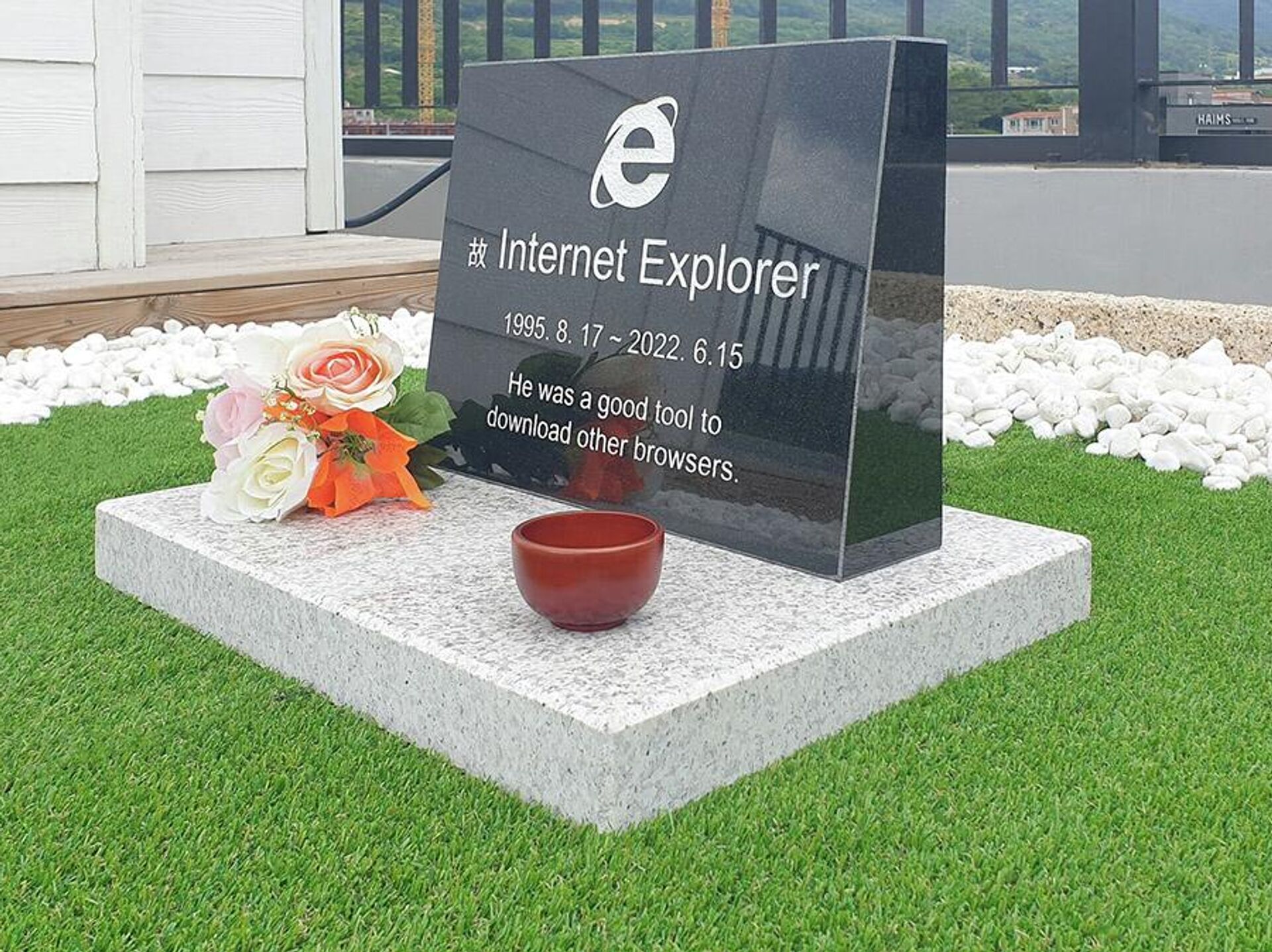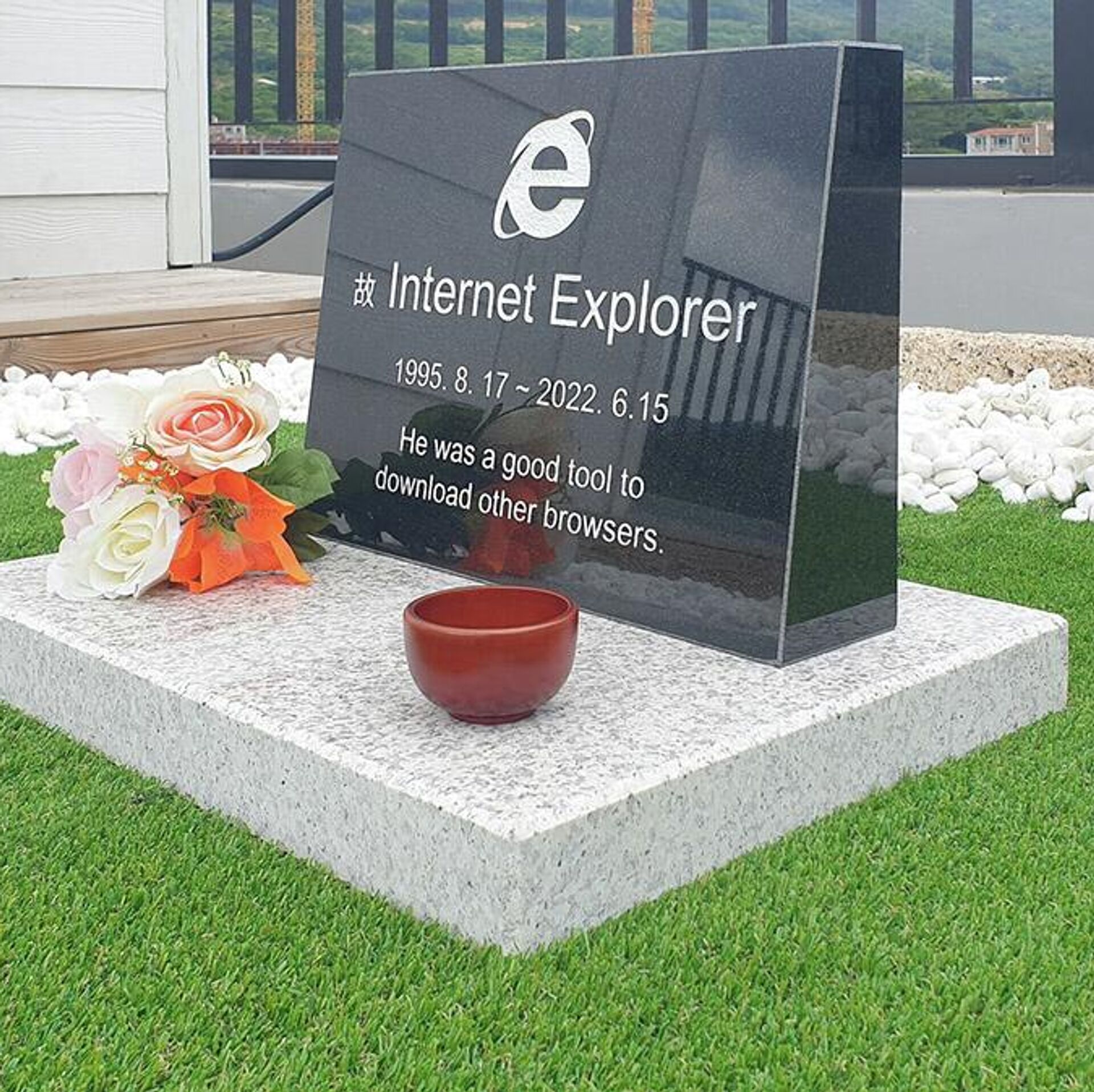 El hombre, llamado Jung Ki-young, diseñó y ordenó una lápida con el logotipo de Internet Explorer y el siguiente epitafio: "Fue una buena herramienta para descargar otros navegadores". La insólita tumba le costó cerca de 330 dólares.Las imágenes del divertido sepulcro rápidamente se hicieron virales en las redes sociales.El propio Jung contó a los medios que la tumba simboliza sus "sentimientos mezclados hacia el software obsoleto" que desempeñó un papel importante en su vida laboral."Lo llamaría una relación de amor-odio", pues, para él, era más difícil poner a prueba sus sitios web y aplicaciones en dicho navegador, explicó en un comentario a la agencia Reuters. Sin embargo, pese a sus deficiencias, Internet Explorer gozó de gran popularidad entre los clientes de Jung y también era el navegador predeterminado del Gobierno y los bancos de Corea del Sur.