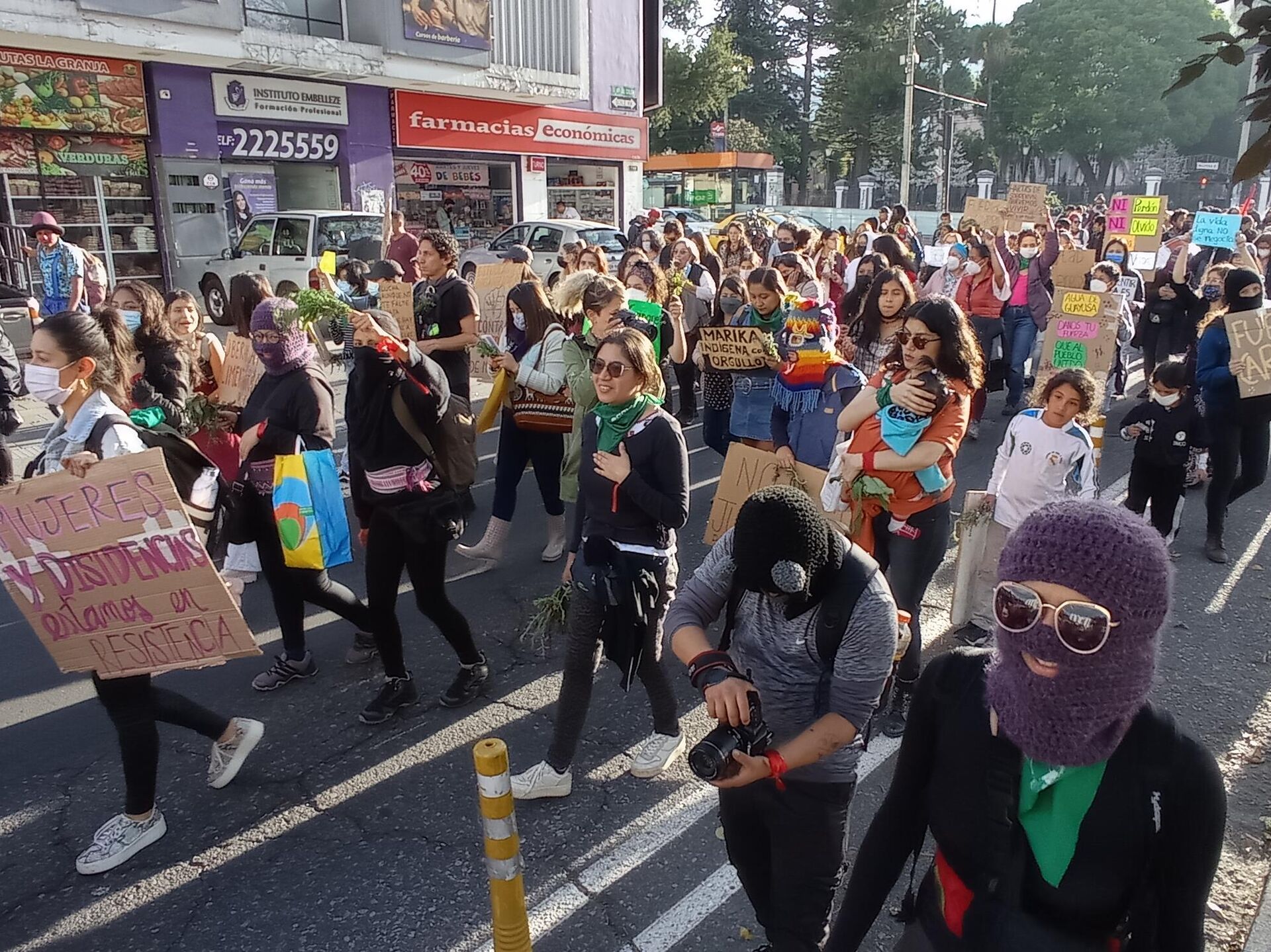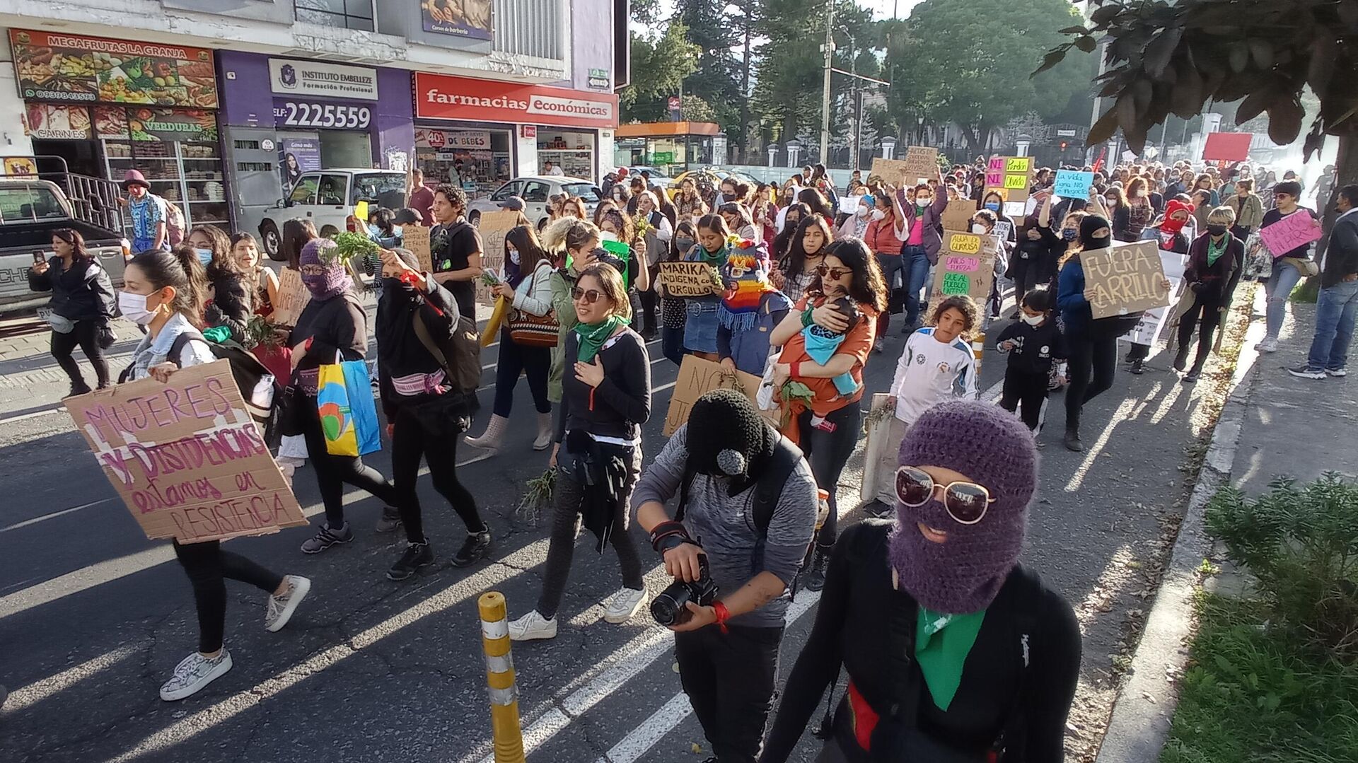 Las mujeres quiteñas se sumaron a esta última movilización, que partió del Seminario Mayor y recorrió por varias horas la ciudad, desparramando música de tambores, trompetas y el colorido de su protesta por las calles.