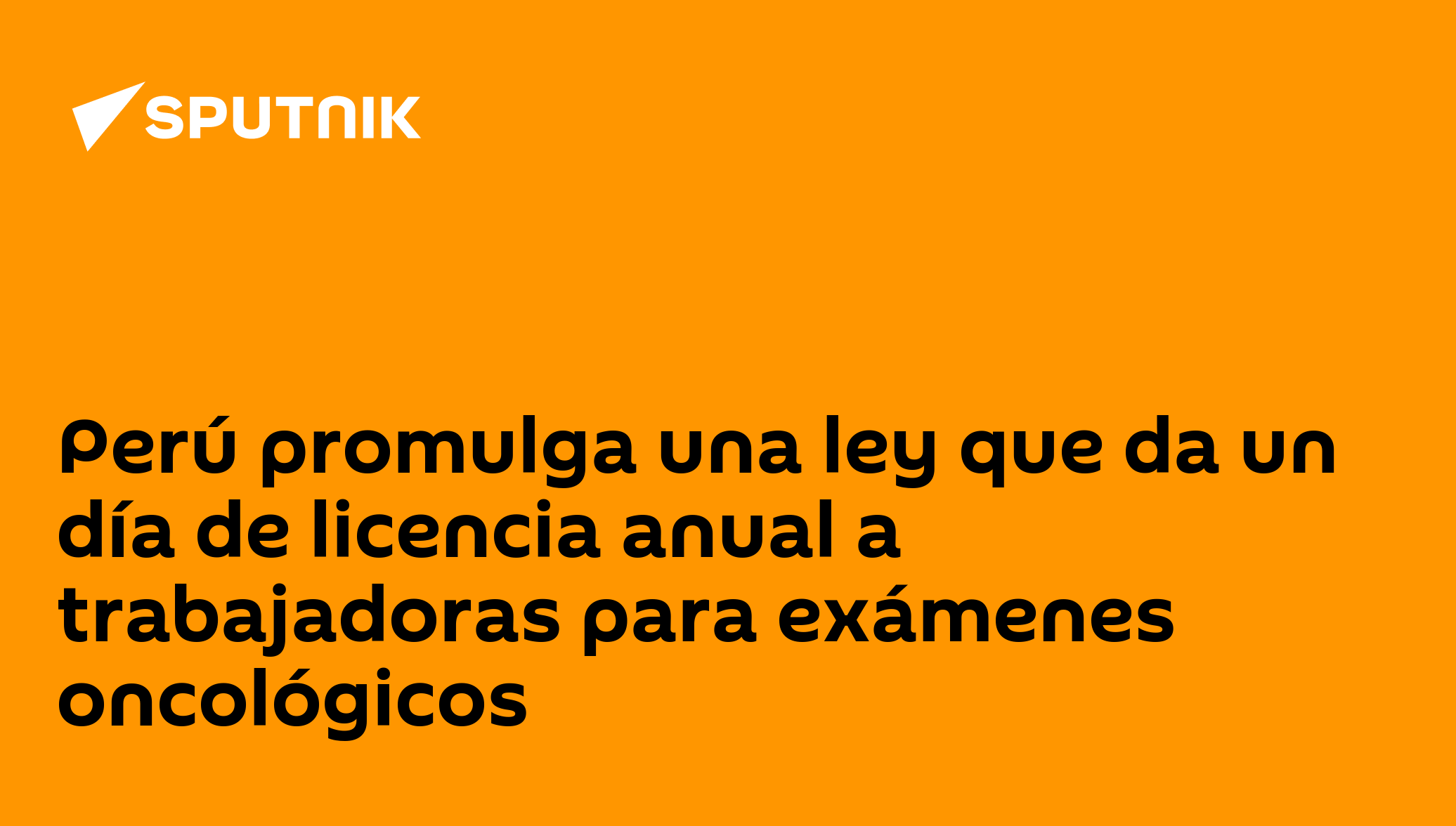 LIMA (Sputnik) — El Gobierno de Perú promulgó una ley que permite a las trabajadoras tener un día al año de licencia para realizarse exámenes de detección de cáncer de mama y cuello uterino.