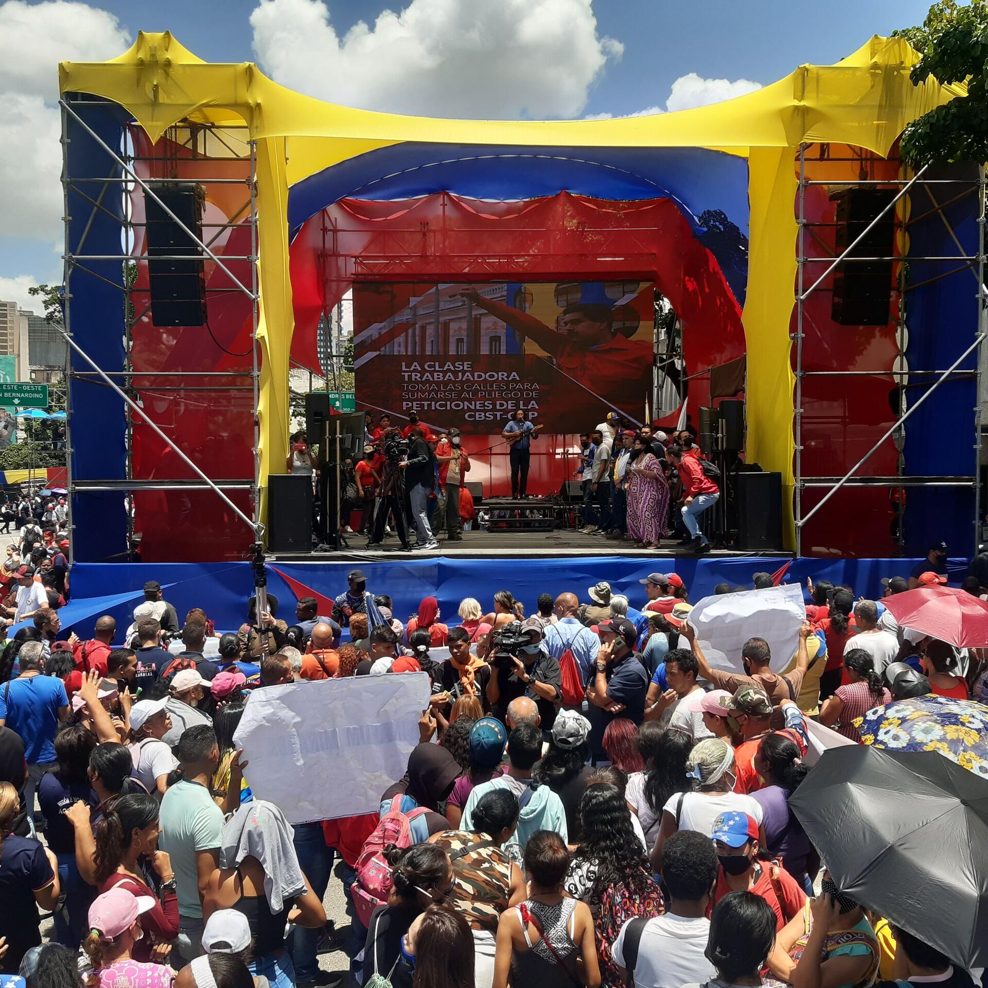 CARACAS (Sputnik) — Trabajadores venezolanos marcharon en Caracas en apoyo a las medidas económicas y sociales impulsadas por el Gobierno de Nicolás Maduro, y para exigir el cese de las sanciones contra este país caribeño.