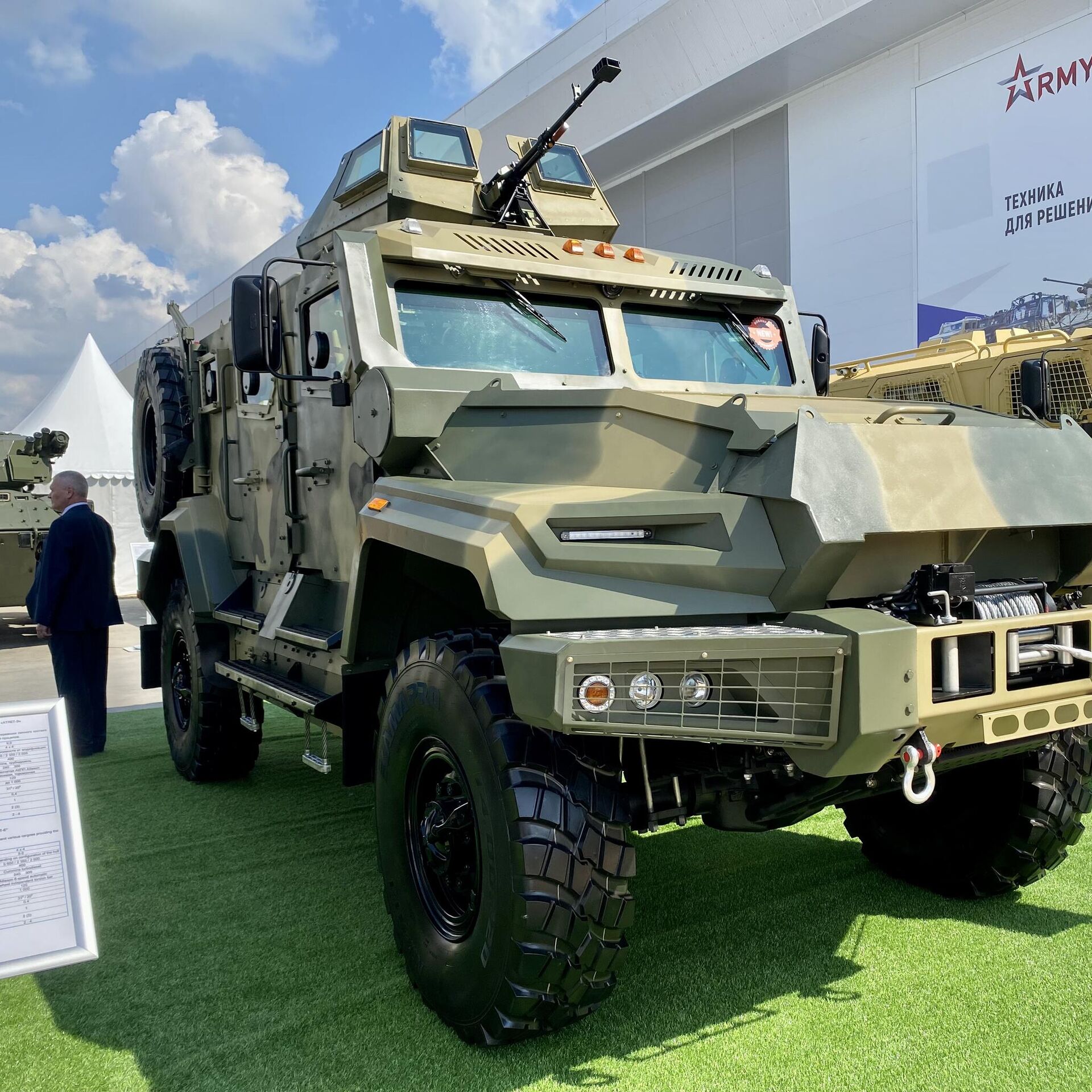 La operación especial de desmilitarización de Ucrania, por supuesto, ha cambiado de una manera u otra la agenda del Foro Army de este año. Por ejemplo, en las exposiciones del equipo militar aparecieron ejemplares no planeados, como este vehículo blindado multifuncional.