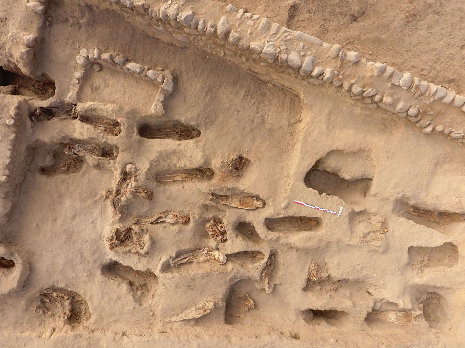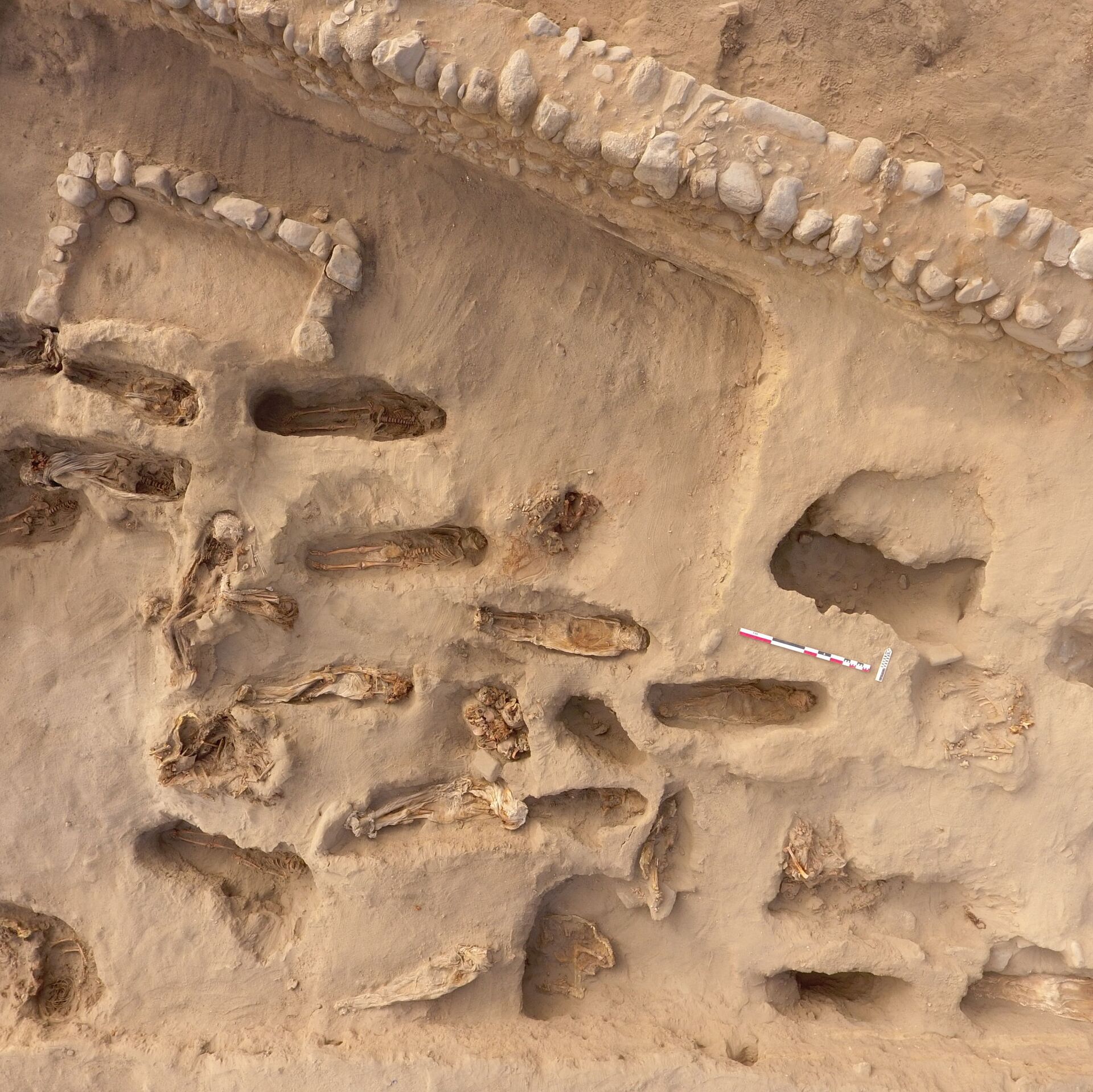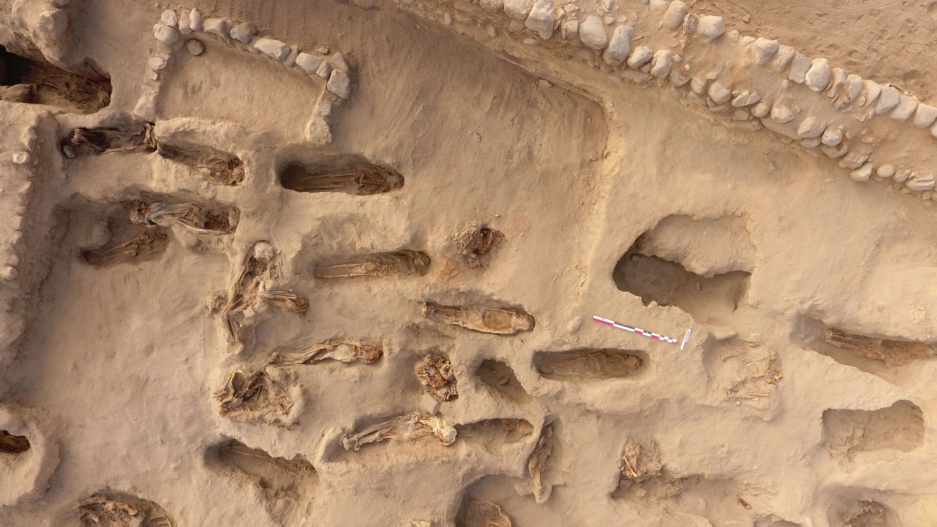 "El proyecto hasta la fecha ha encontrado unos 30 individuos subadultos en la parte alta de la plataforma, pero quedan por excavar todavía más (...) Estos niños están enterrados a unos 10 centímetros, 20 centímetros, están ahí nomás, pero también hay otros niños que están a más profundidad", dijo Luis Flores, arqueólogo residente del sitio a la televisora local Canal N.