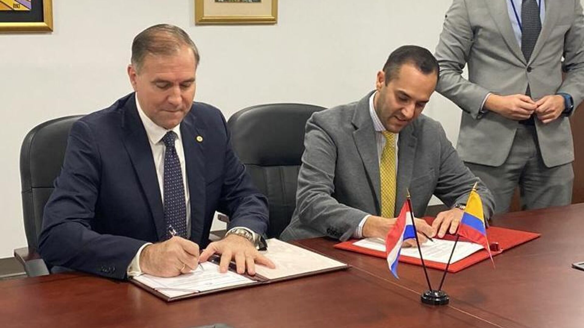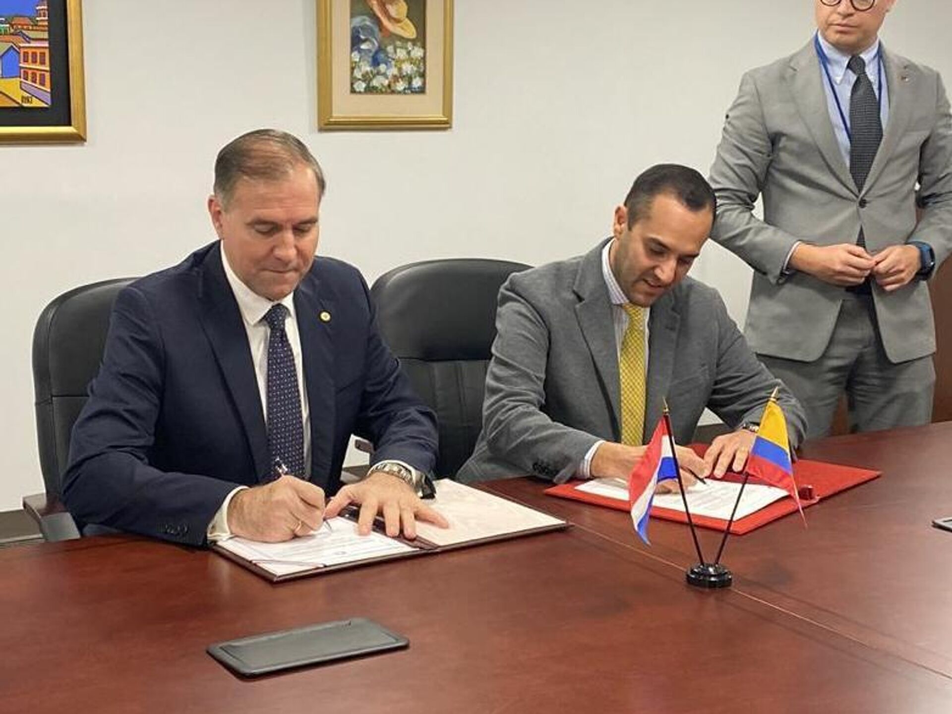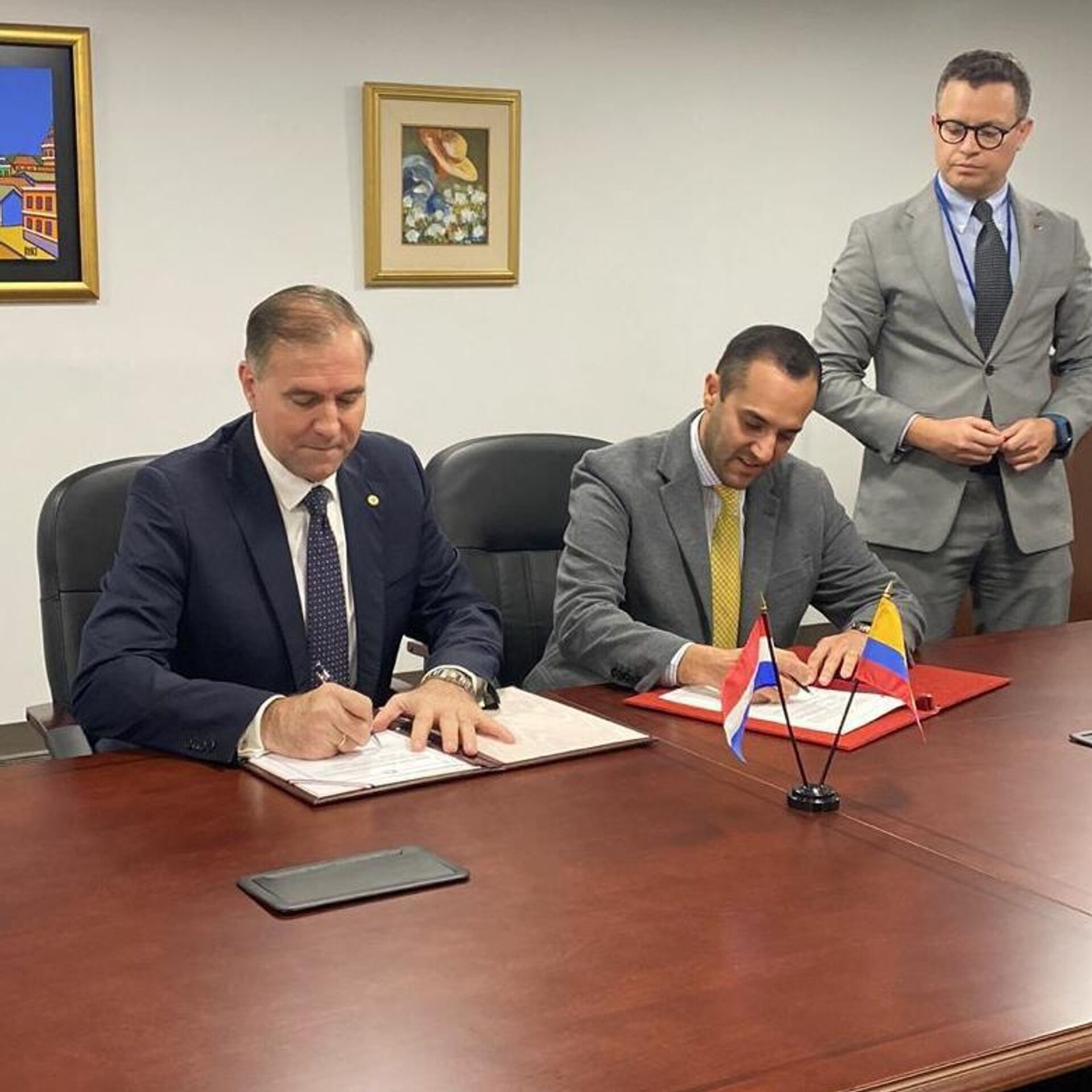 “El Canciller @juancaholguin y su homólogo paraguayo, Julio Arriola, firmaron un memorando de entendimiento para el desarrollo de las relaciones económicas y comerciales entre Paraguay y Ecuador”, indicó el Ministerio de Relaciones Exteriores y Movilidad Humana.