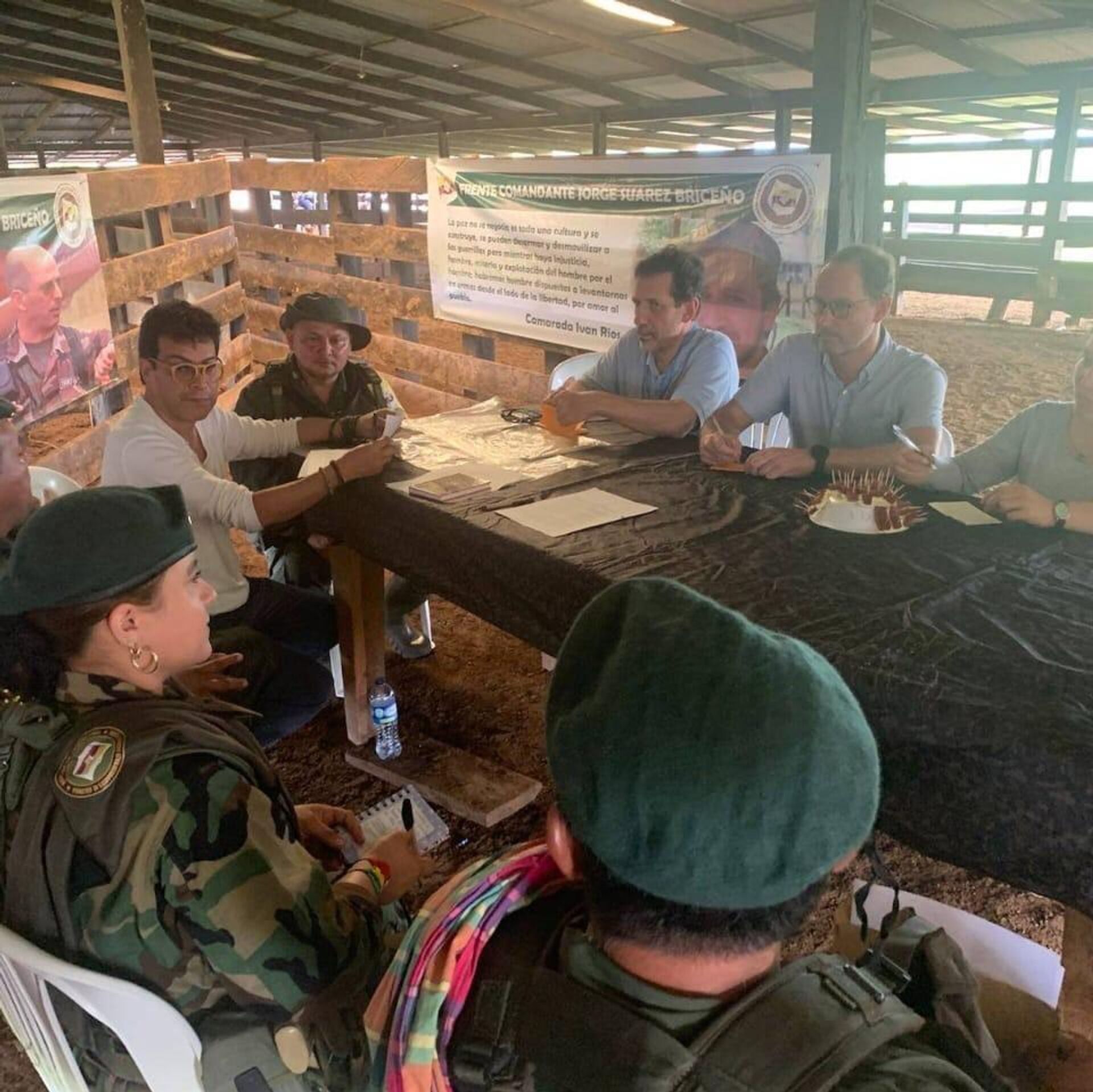 Petro también adjuntó dos fotografías en las que se ve a emisarios de su administración dialogando con miembros de las disidencias en una especie de cambuche en medio de la selva colombiana.