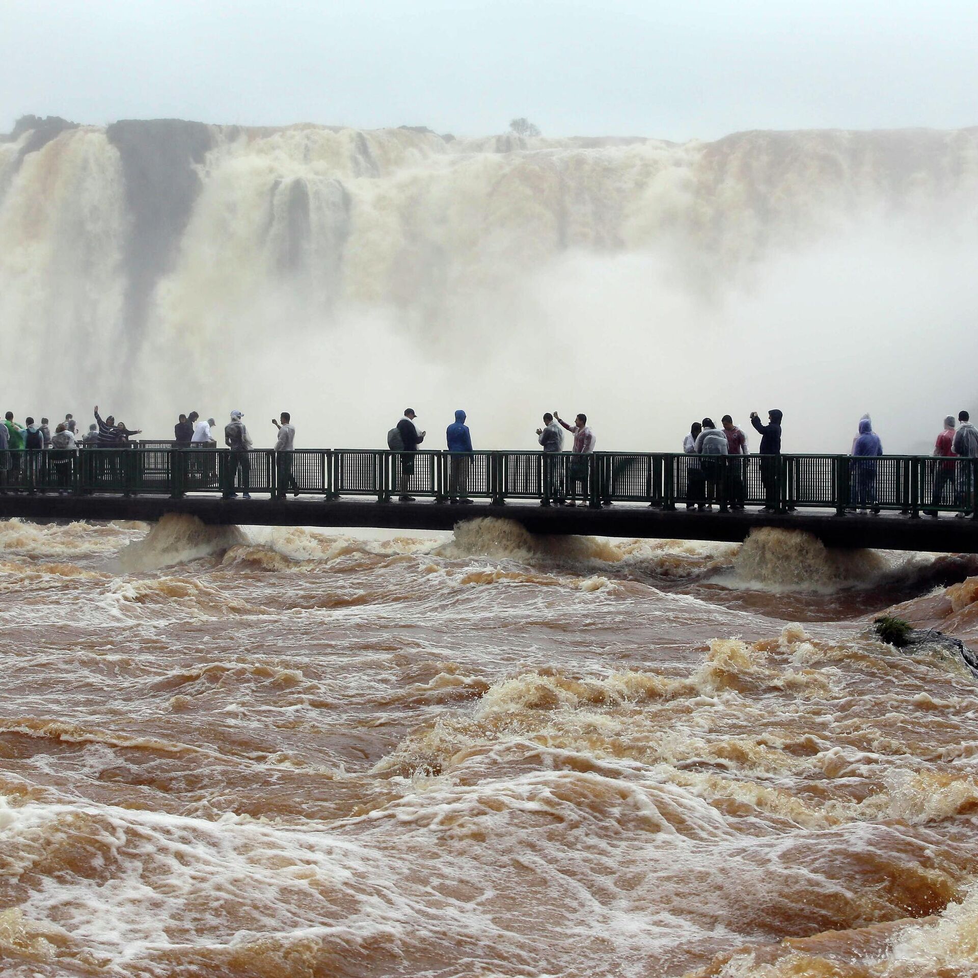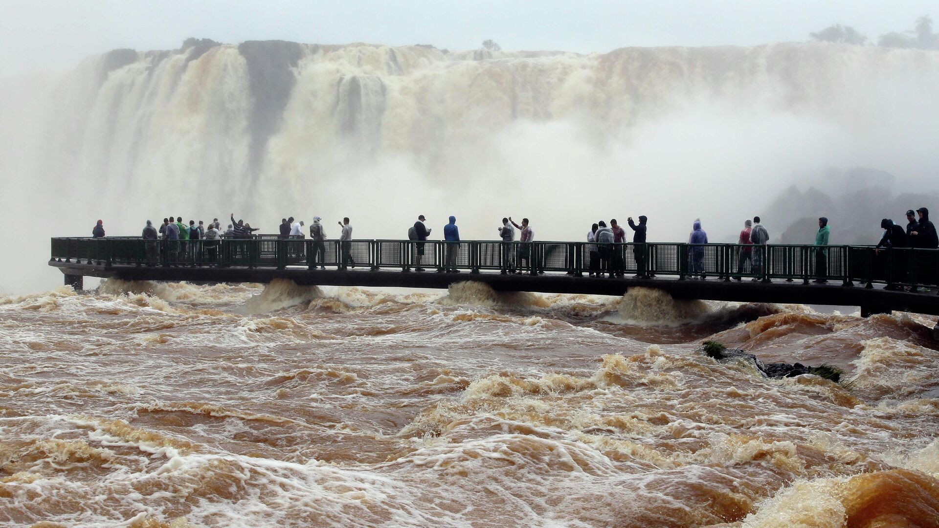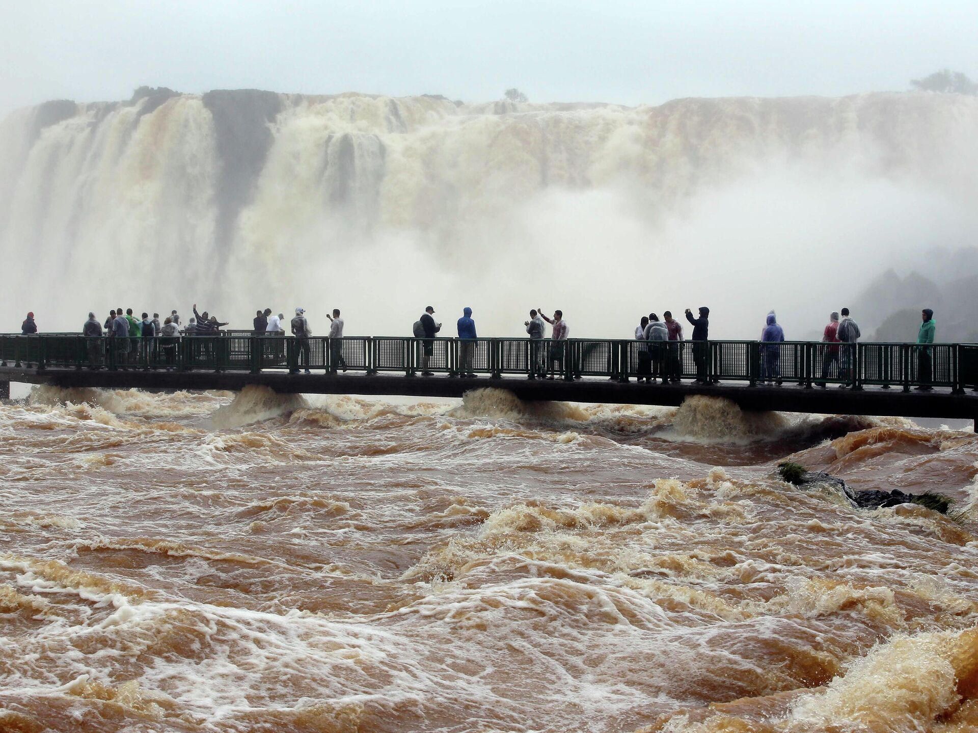 Las pasarelas están, pero bajo agua. Pará volver al paseo de la Garganta del Diablo en #Cataratas habrá que esperar que baje el Río Iguazú.