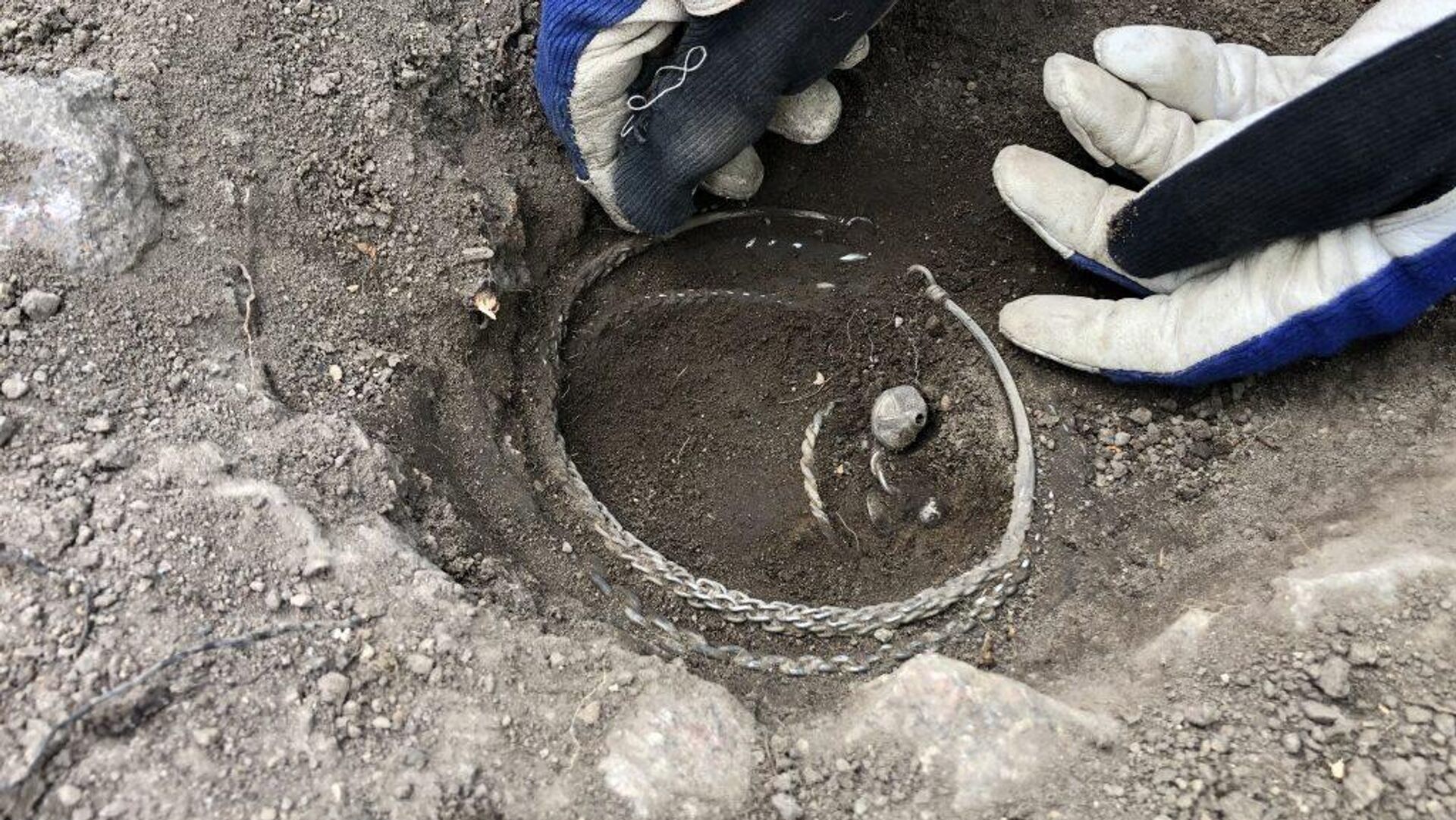 Los arqueólogos descubrieron un tesoro de plata de 1.000 años de antigüedad que contiene varios anillos de cuello, anillos de brazo y monedas de gran belleza a... 05.11.2022, Sputnik Mundo
