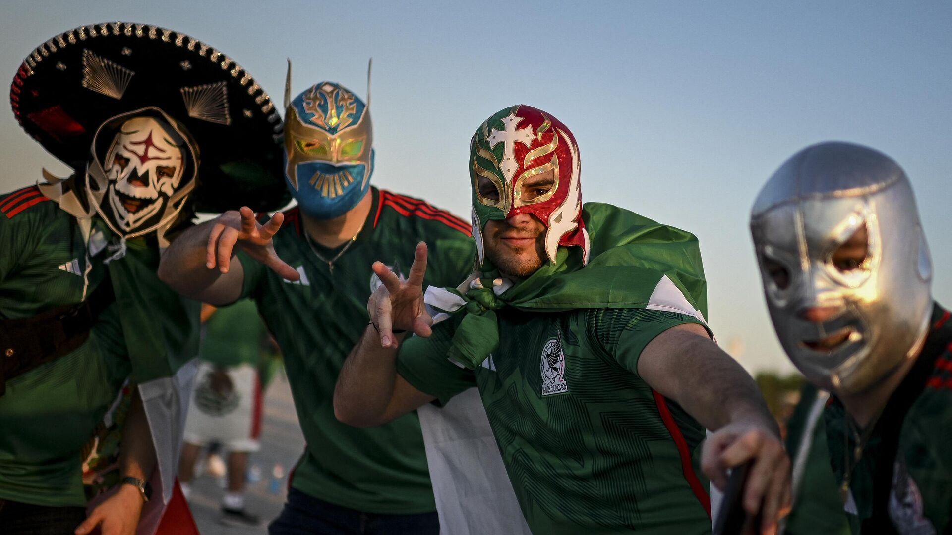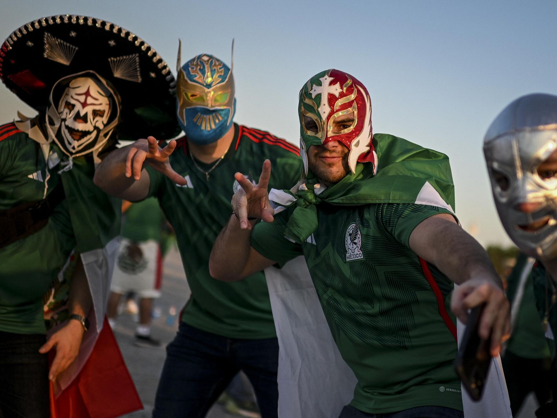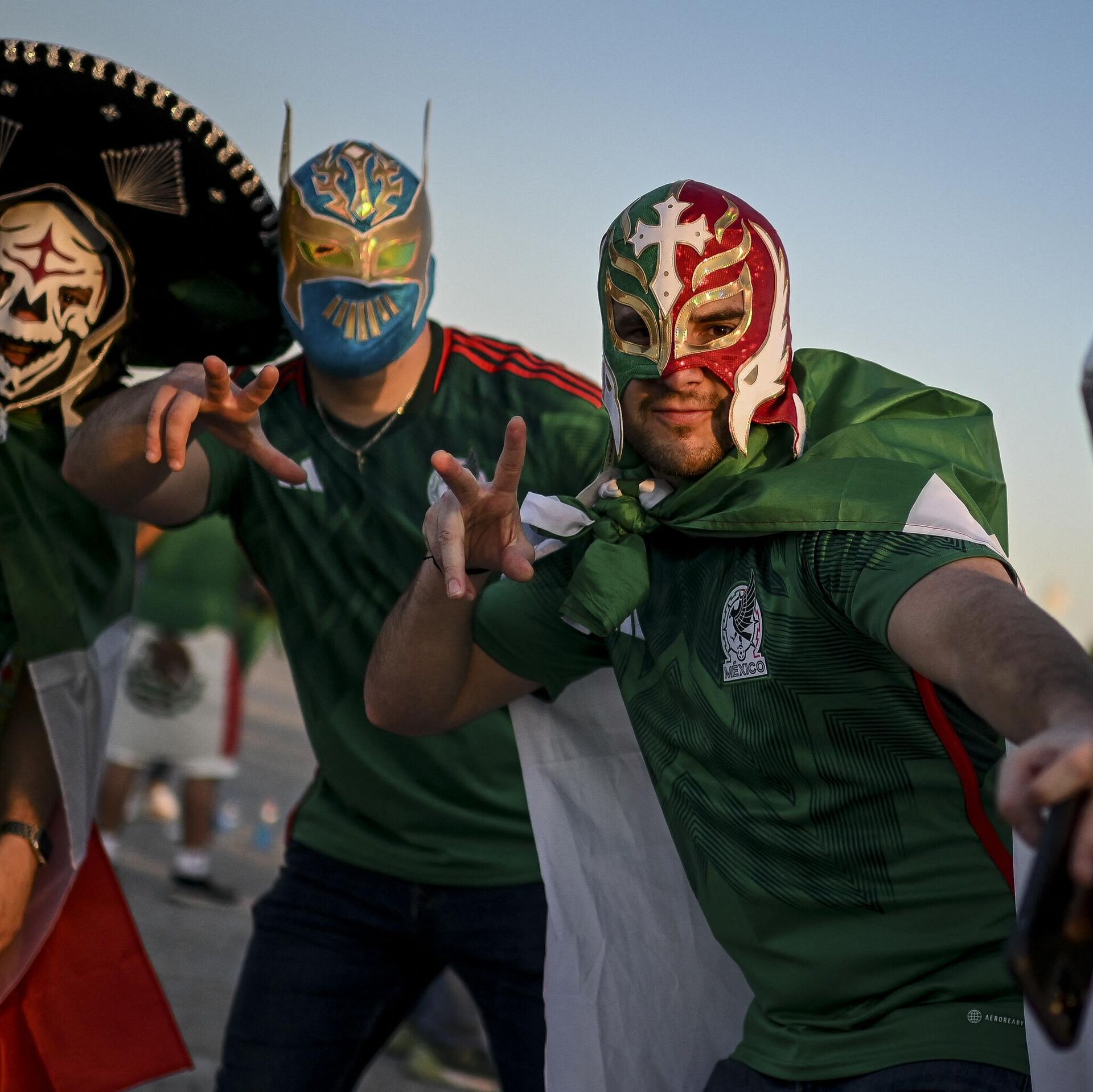 Un grupo de aficionados mexicanos aprovechó su viaje al Mundial de Fútbol de Catar 2022 para improvisar un espectáculo de lucha libre, uno de los deportes más populares del país latinoamericano.