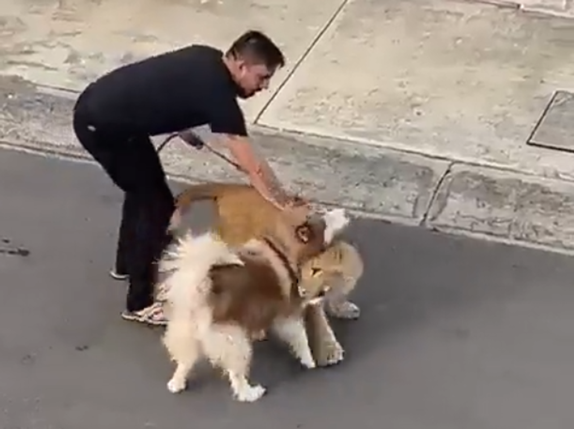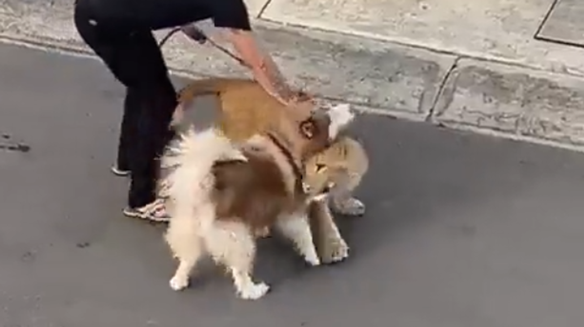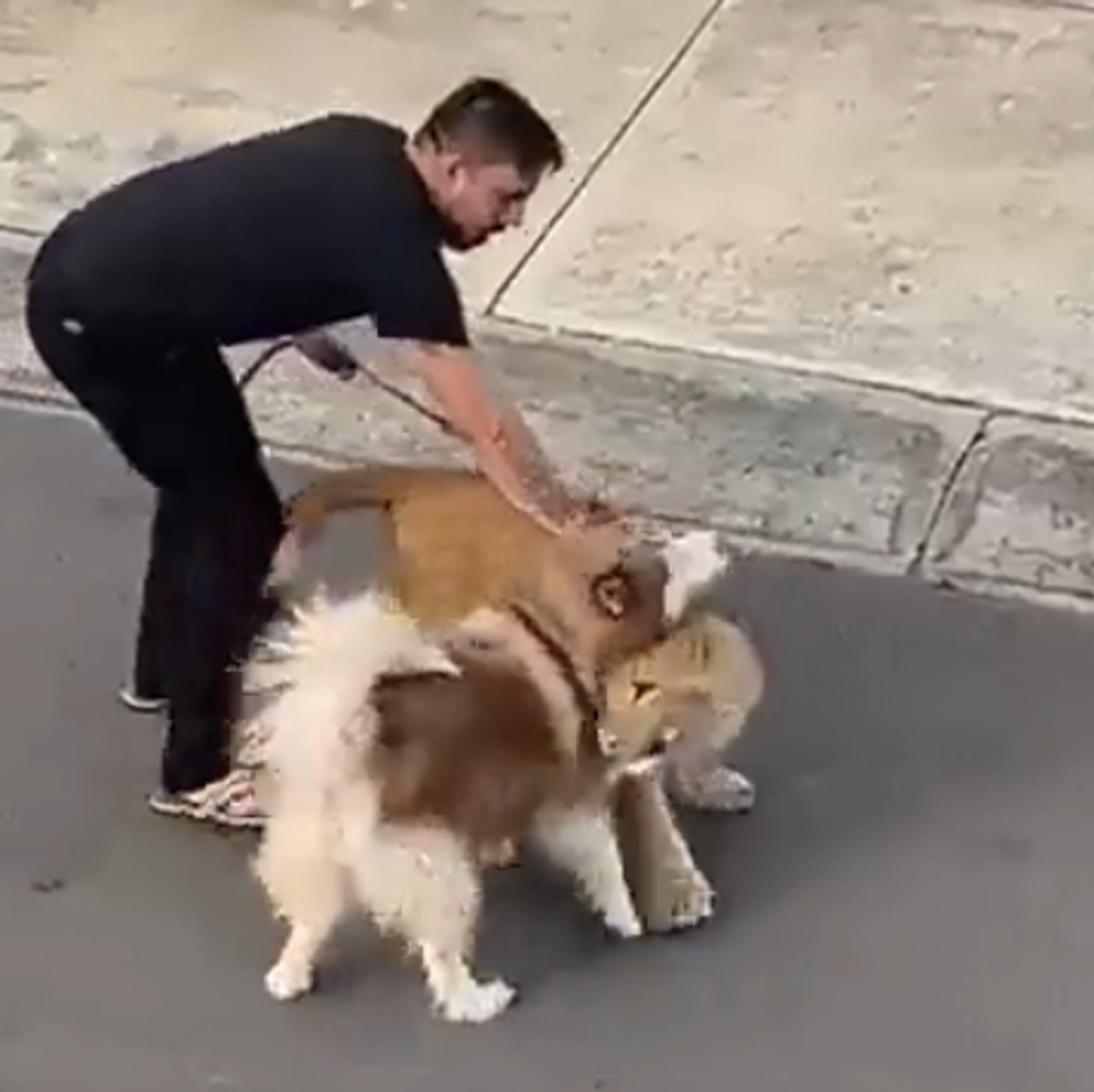 En las imágenes se observa al cachorro caminar sin dirección fija y hasta se acueste en un pequeño terreno abandonado. Además, el animal salvaje se puso a jugar con un perro a quien sacó su dueño en un momento inopotruno. Posteriormente, se observa a un hombre vestido de negro cargar al león para llevárselo, tras varios intentos de ponerle una correa.