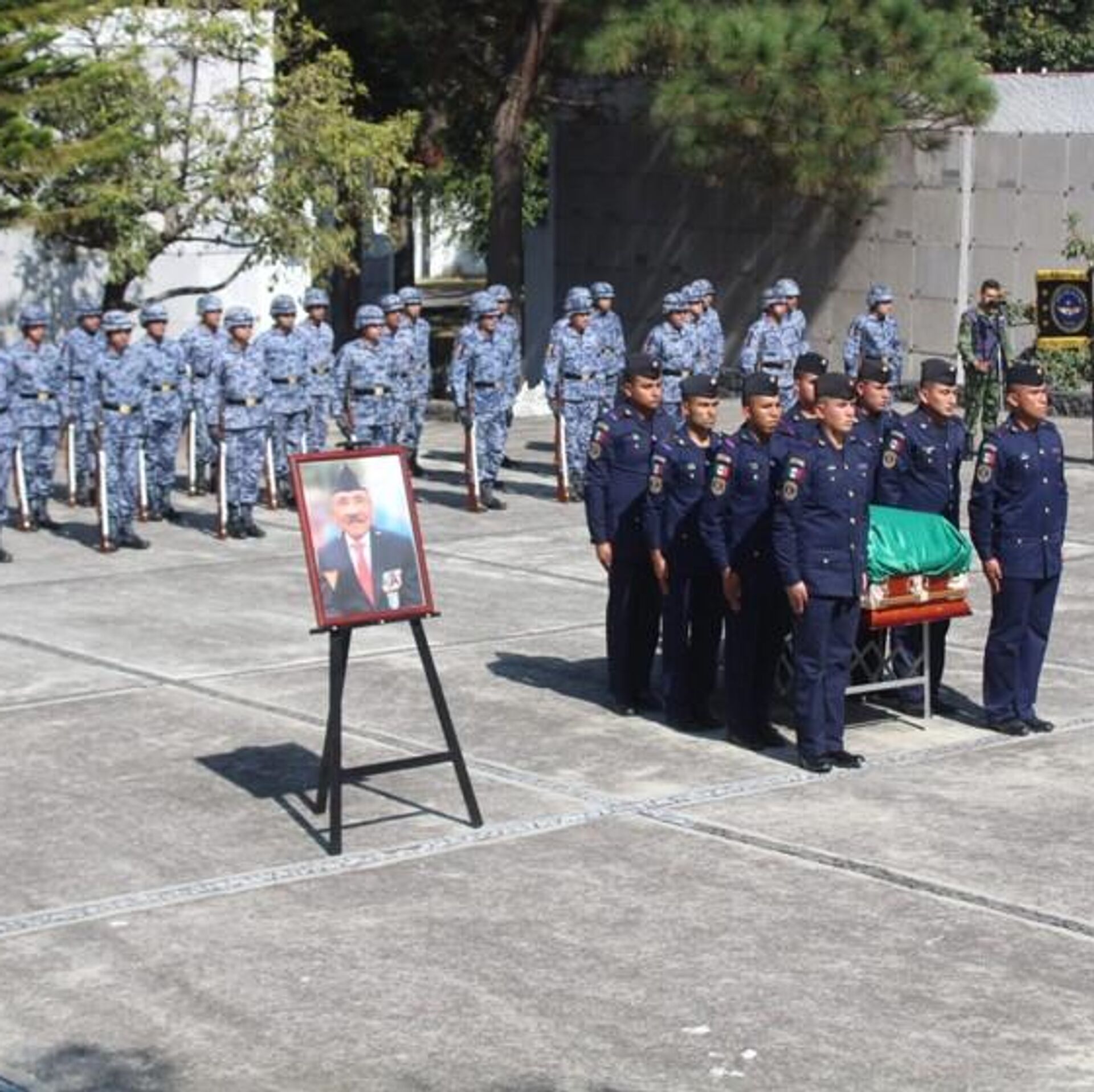 La ceremonia fue encabezada por el general piloto aviador José Gerardo Vega Rivera, Comandante de la Fuerza Aérea Mexicana, en el cementerio militar de San Andrés Totoltepec, al sur de Ciudad de México, capital del país.