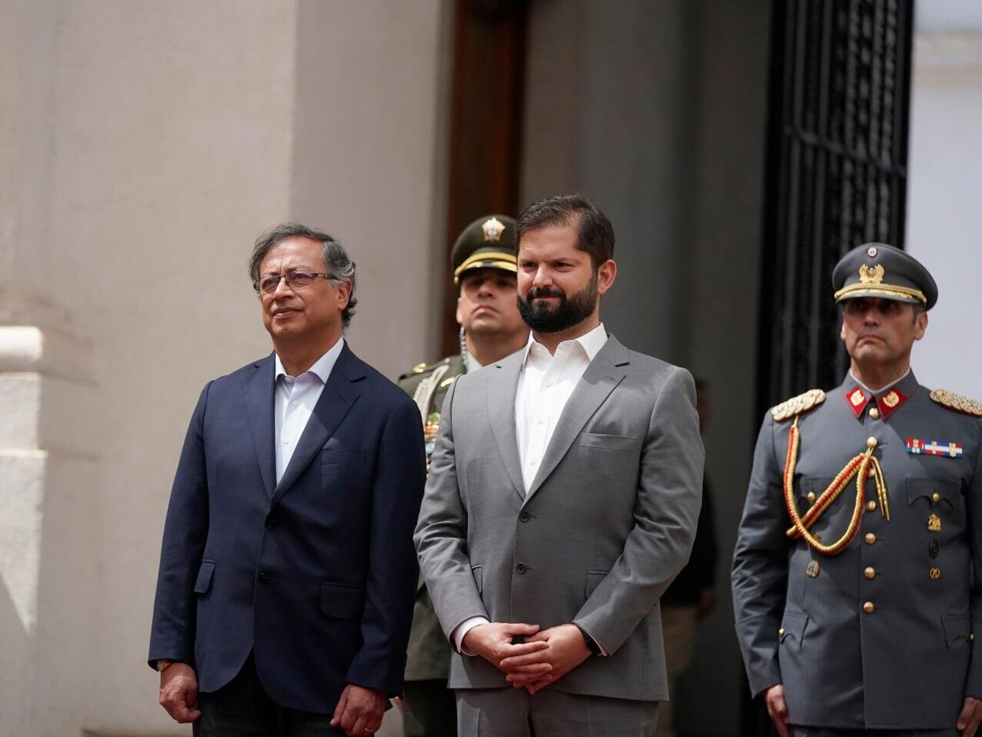 #VisitaDeEstado | Presidente @GabrielBoric encabeza ceremonia de bienvenida a Chile al Presidente de Colombia, @PetroGustavo. https://t.co/DfvaXgLdhy