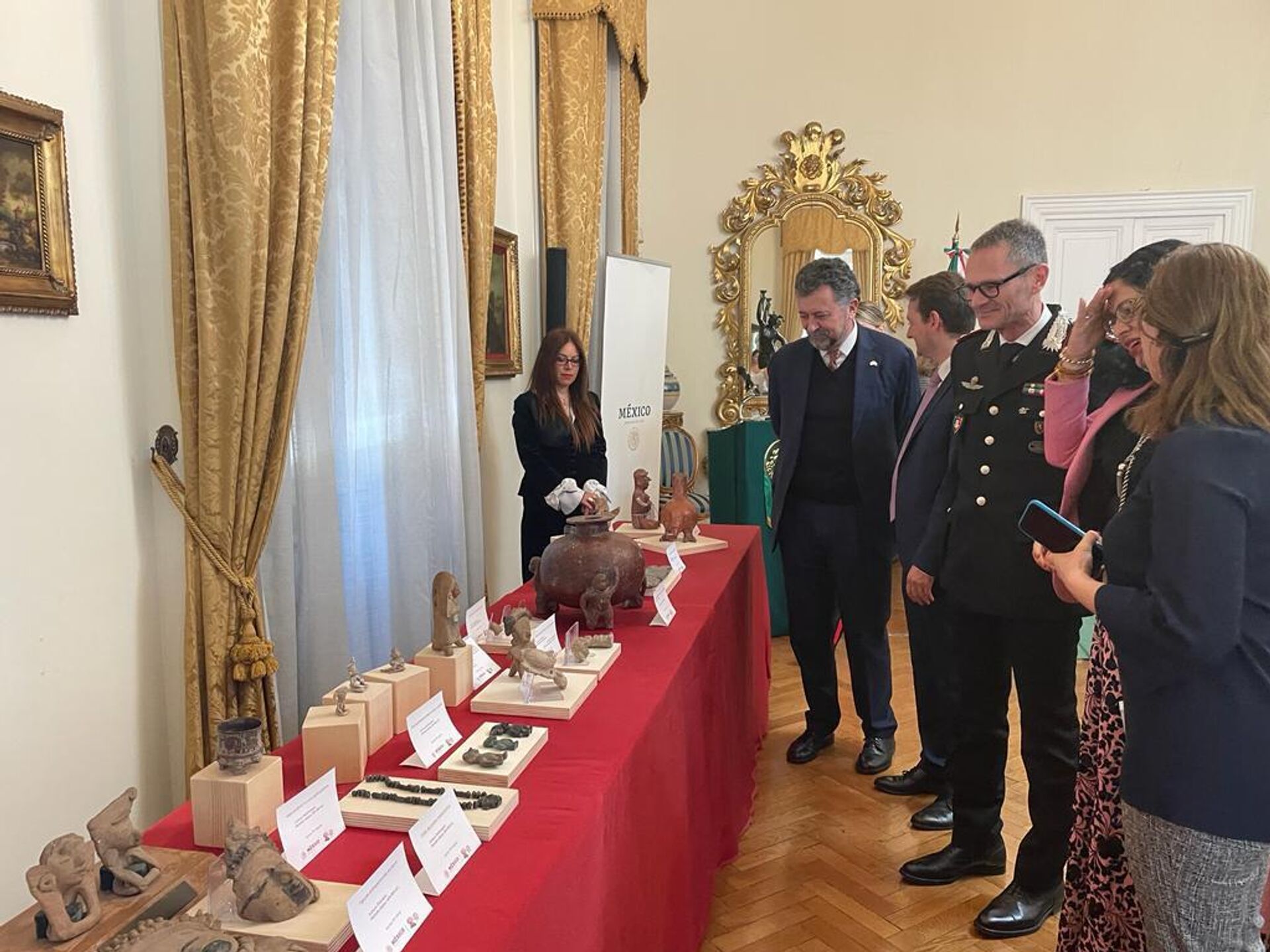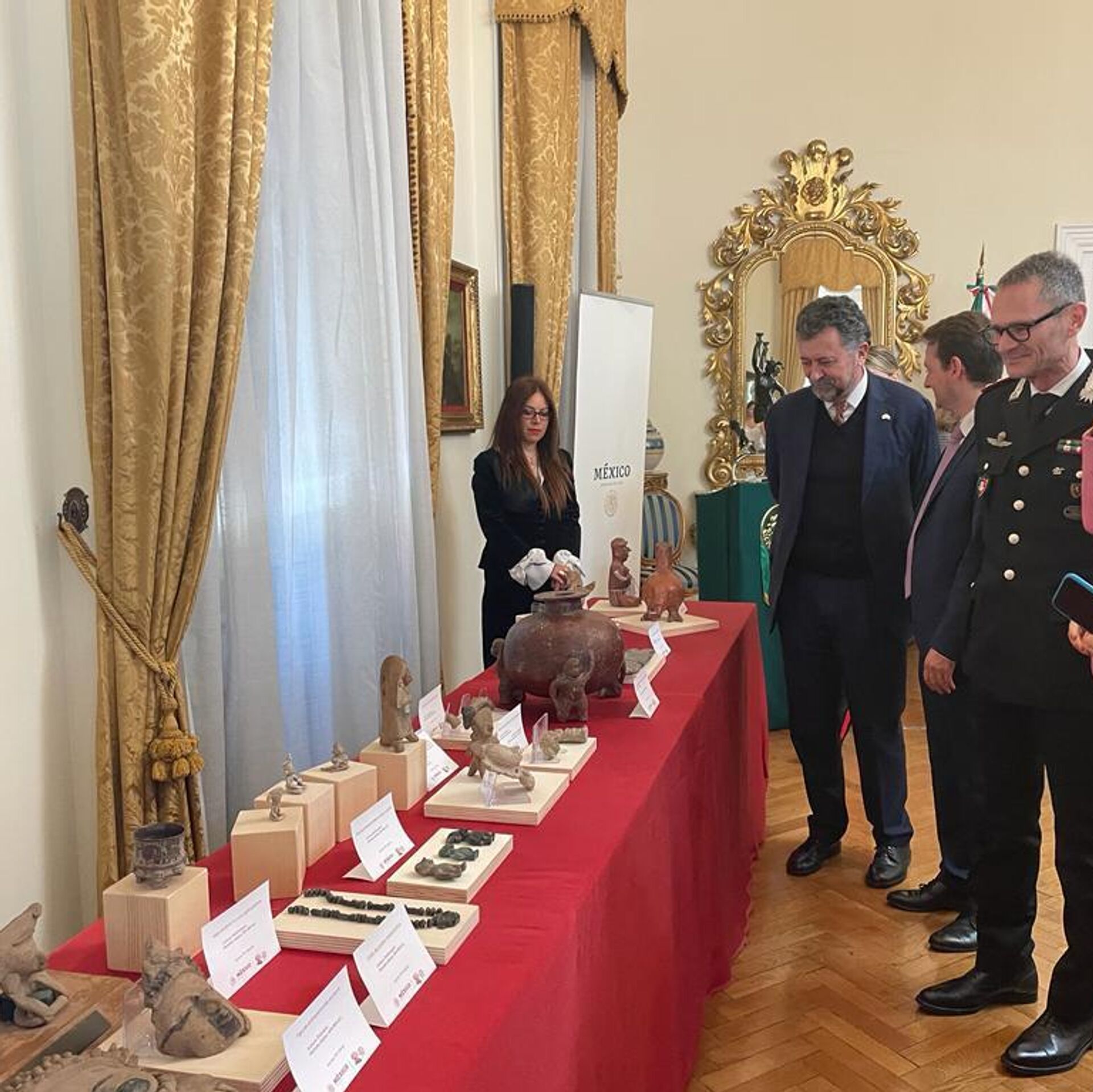 En la ceremonia de entrega estuvieron presentes el embajador de México en Italia, Carlos García de Alba, y el comandante del Arma de los Carabineros encargado del patrimonio cultural, el general Vincenzo Molinese.