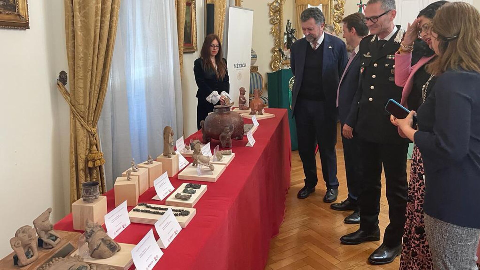 "En la sede de la embajada de México en Italia, ante la presencia de la secretaria de Cultura, Alejandra Frausto, se procedió a la repatriación de 43 piezas arqueológicas, pertenecientes al patrimonio nacional mexicano", indica un comunicado de la secretaría de Relaciones Exteriores.