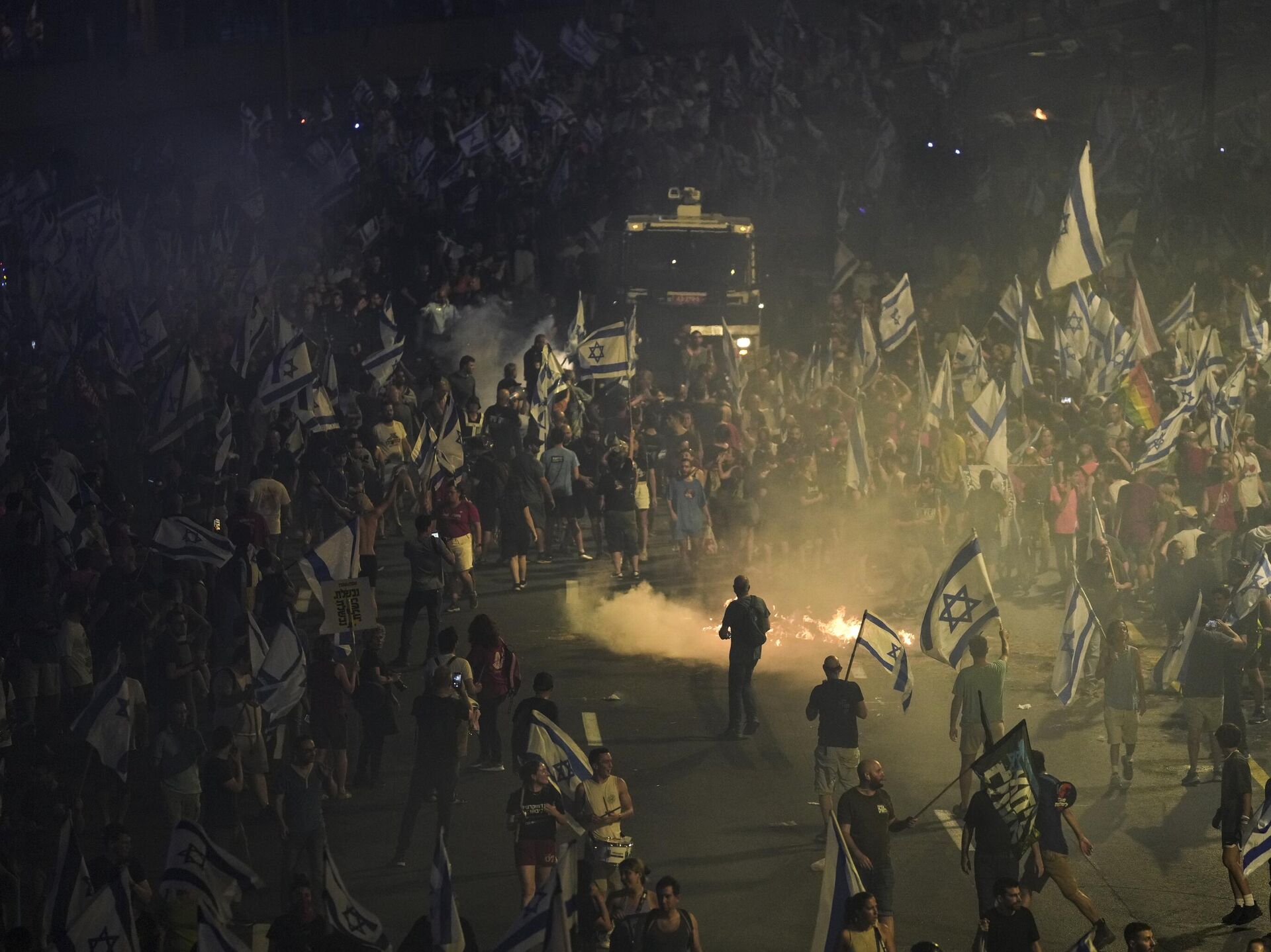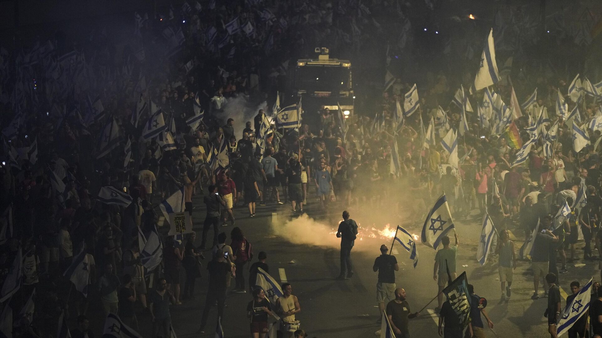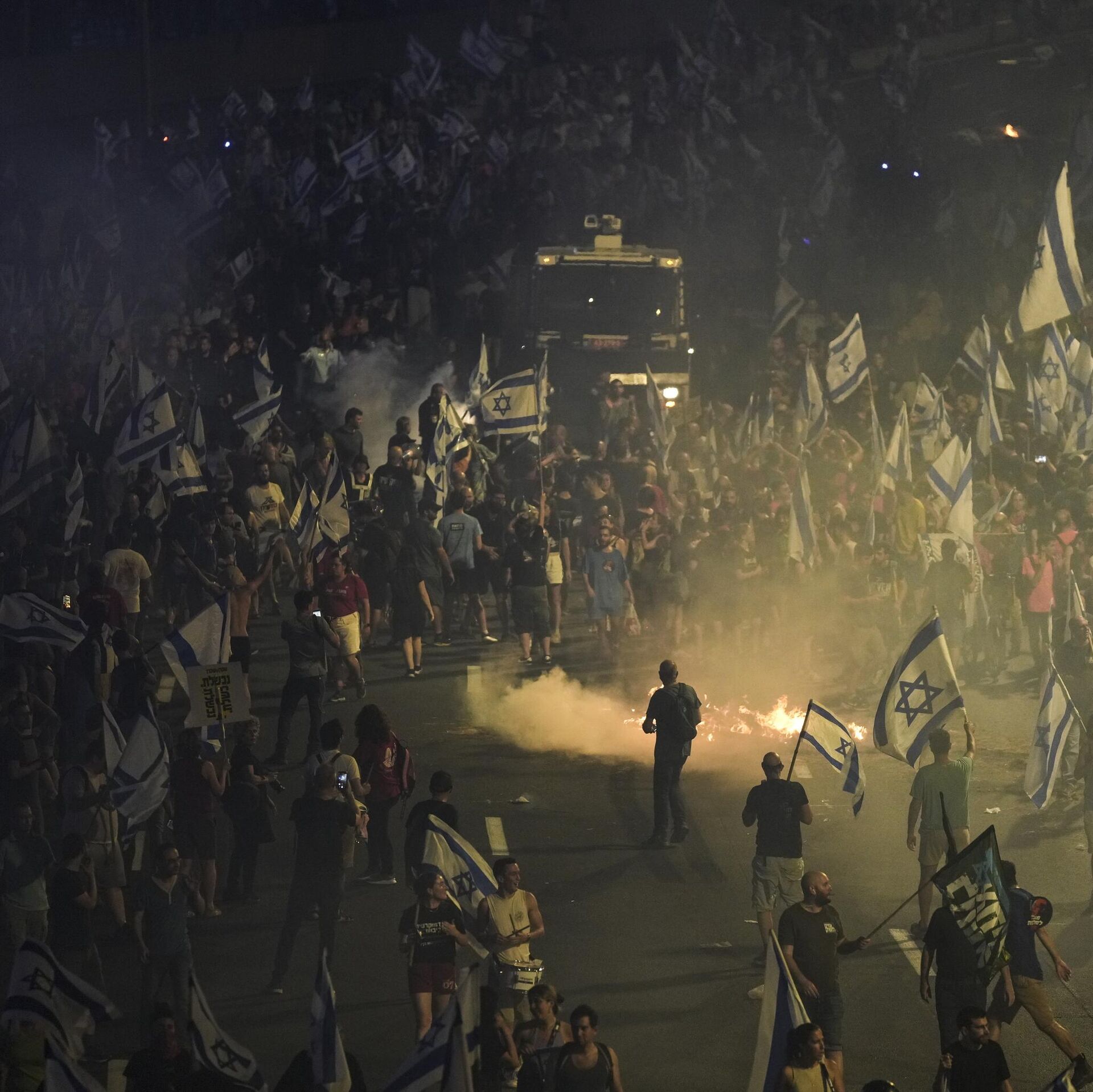 Poco después del anuncio de Eshed, cientos de manifestantes con banderas israelíes y al grito de "democracia" marcharon por Tel Aviv. Algunos bloquearon una autopista principal, encendieron hogueras y se enfrentaron a la policía.