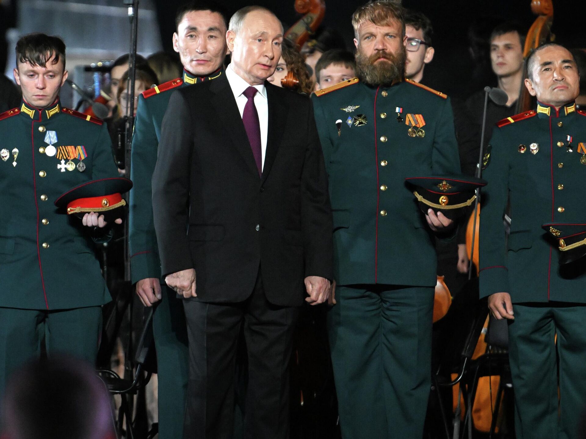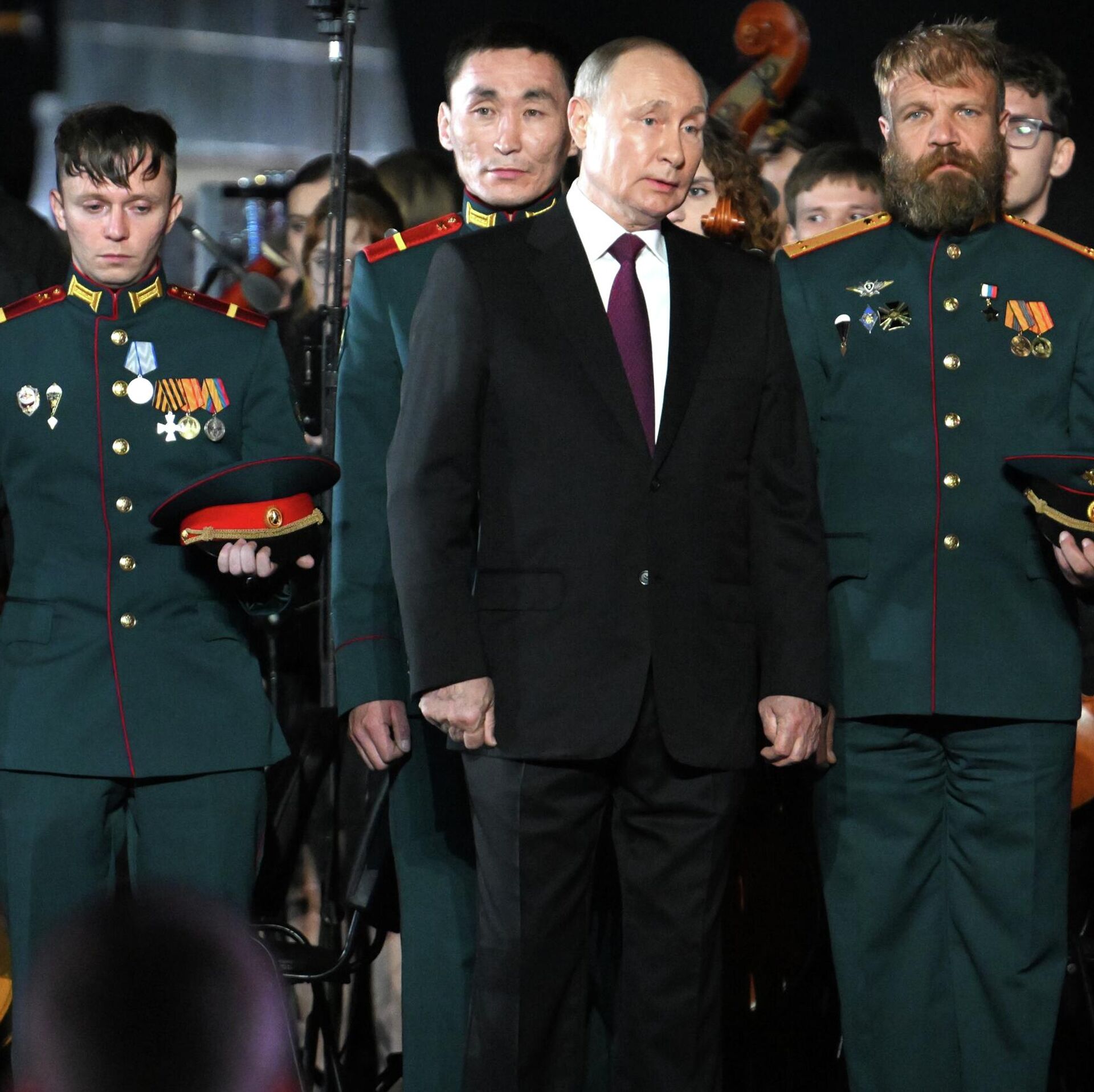 "Aquí, en la legendaria tierra de Kursk, se entregarán altas condecoraciones estatales a nuestros héroes, militares, participantes de la operación militar especial, dignos de la gloria de los héroes de la Batalla de Kursk, los que lucharon contra los nazis en el verano de 1943", adelantó Putin durante el concierto.