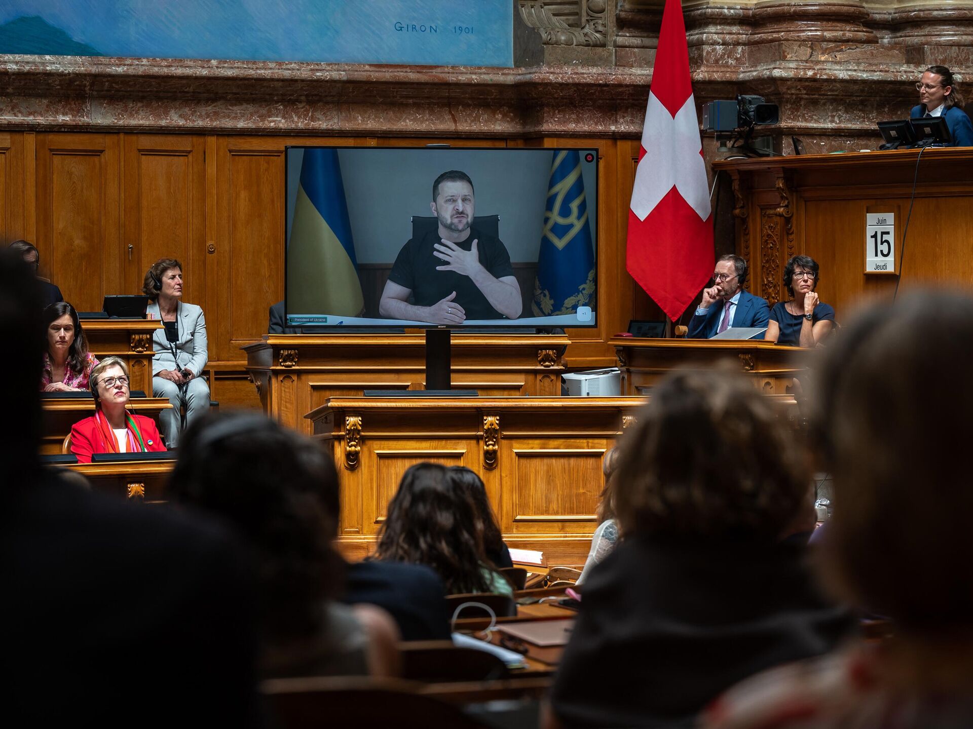 El pasado 7 de junio, el Consejo de los Estados (Cámara Alta) aprobó un proyecto que permitiría a suiza entregar equipo militar suizo a un Estado implicado en un conflicto, si este país ejerce "su derecho a la legítima defensa de conformidad con el derecho internacional". En mayo, la representante permanente de Suiza ante la ONU, Pascal Christine Berisville, declaró que la reexportación del armamento suizo a Ucrania era imposible sin modificar la legislación. Suiza ya había rechazado solicitudes de Alemania, Dinamarca y España de reexportar a Ucrania munición suiza, explicando que tiene el derecho a prohibir la reexportación de equipos bélicos si el país destinatario está implicado en un conflicto armado. Numerosos países condenaron la operación militar especial que Rusia lleva a cabo desde el 24 de febrero de 2022 y apoyan a Kiev con suministros de armas, donaciones, ayuda humanitaria y sanciones contra Moscú.