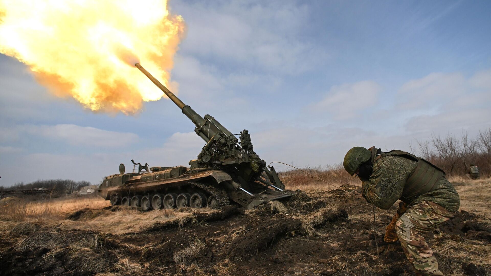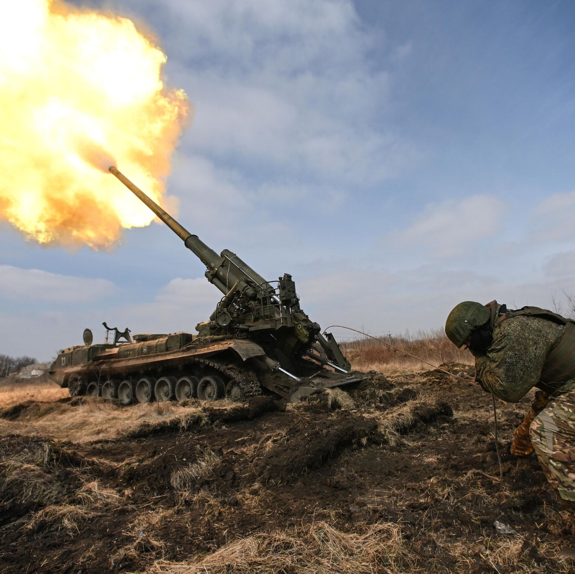 © Sputnik / Stanislav Krasilnikov / Acceder al contenido multimediaUnidad de artillería autopropulsada Malka de las FFAA rusas en la zona de la operación militar especial