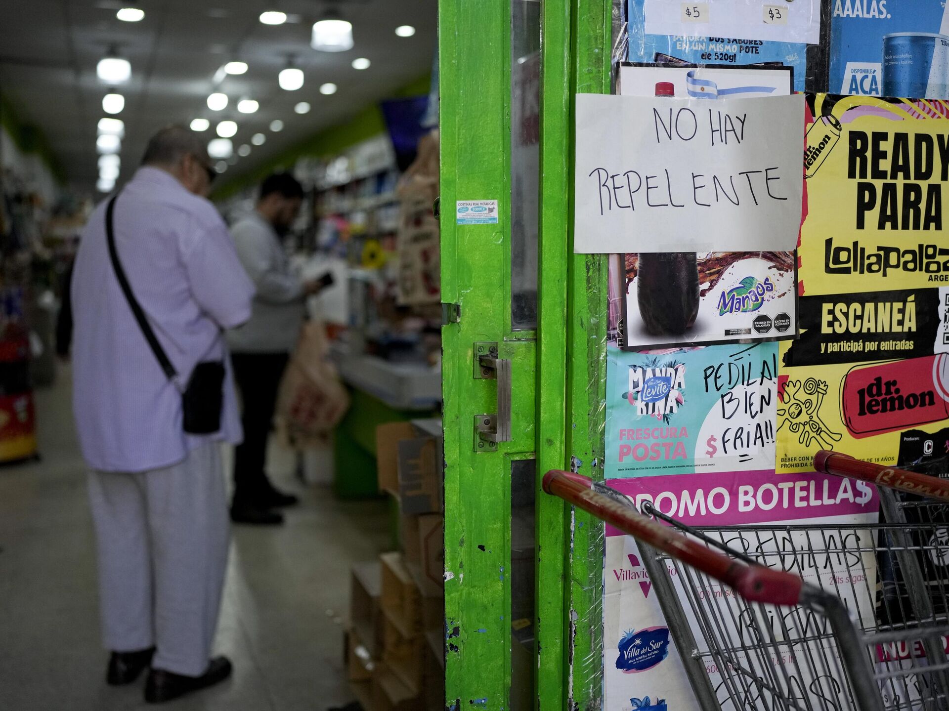 © AP Photo / Natacha PisarenkoUn letrero que anuncia: "No hay repelente", pegado en una tienda en Buenos Aires, Argentina, en medio del aumento de casos de dengue