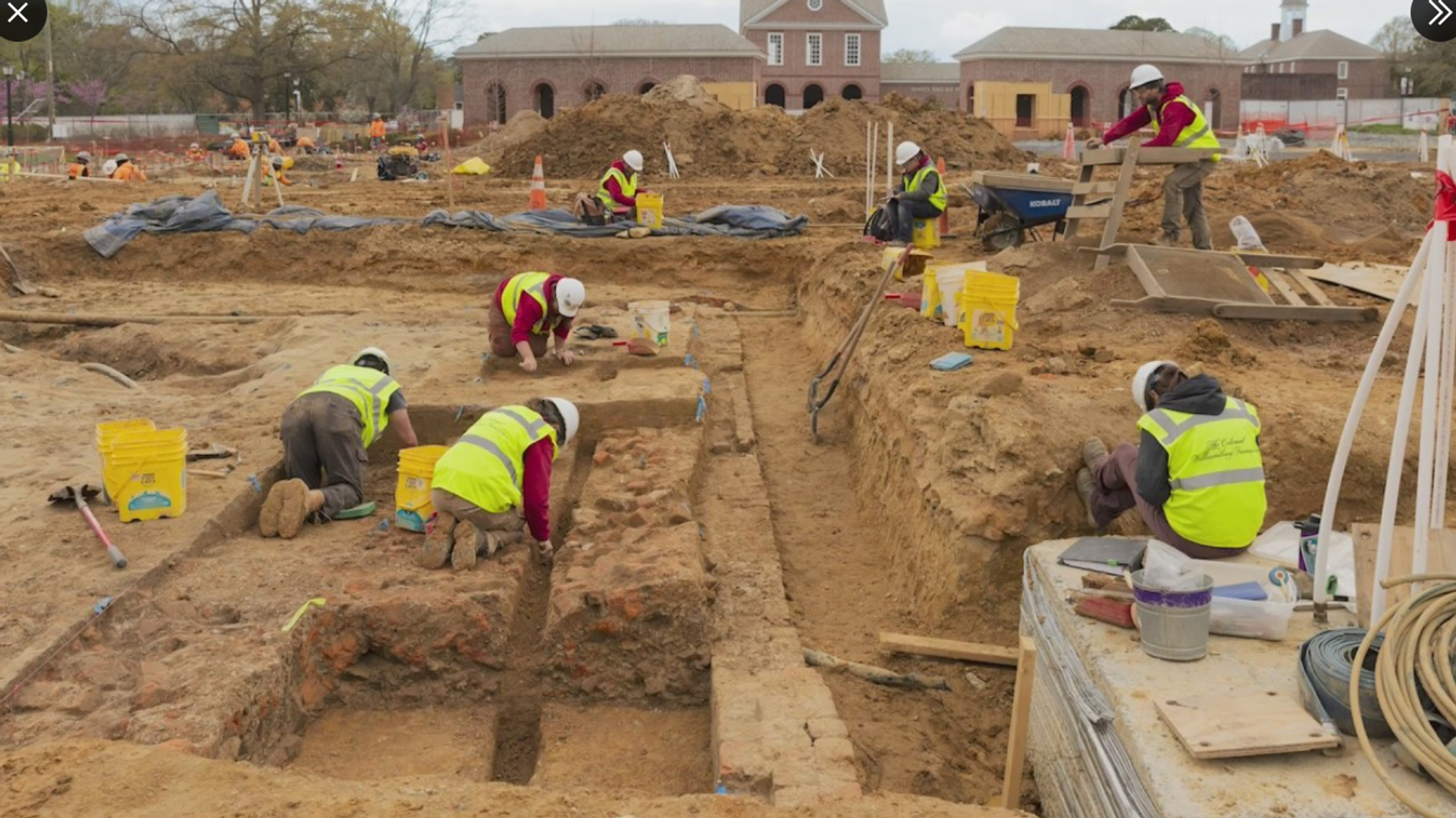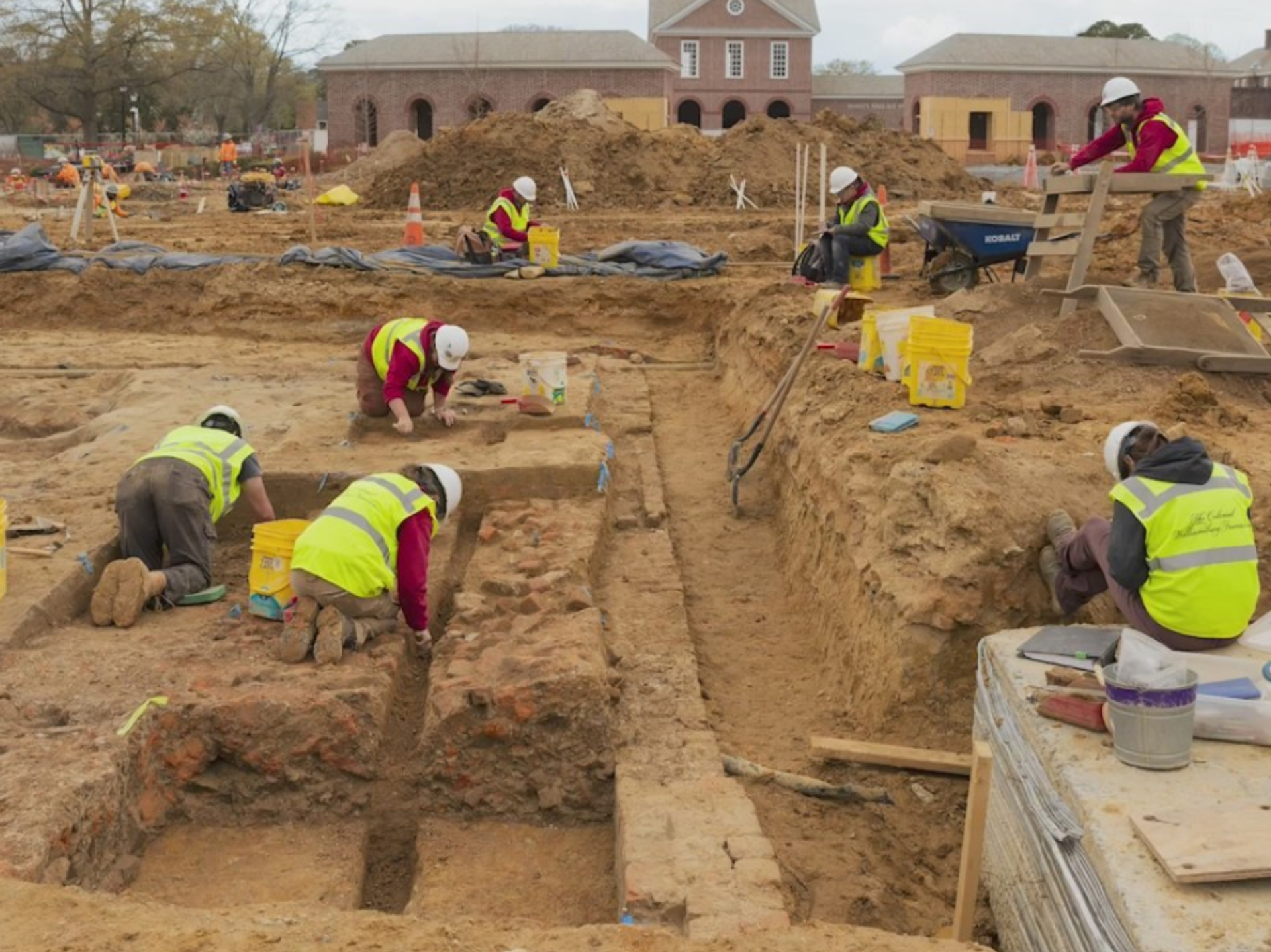 Un grupo de arqueólogos encontró los cimientos de una casa del siglo XVII durante la construcción del nuevo Centro Arqueológico en Colonial Williamsburg en el estado de Virginia, EEUU.