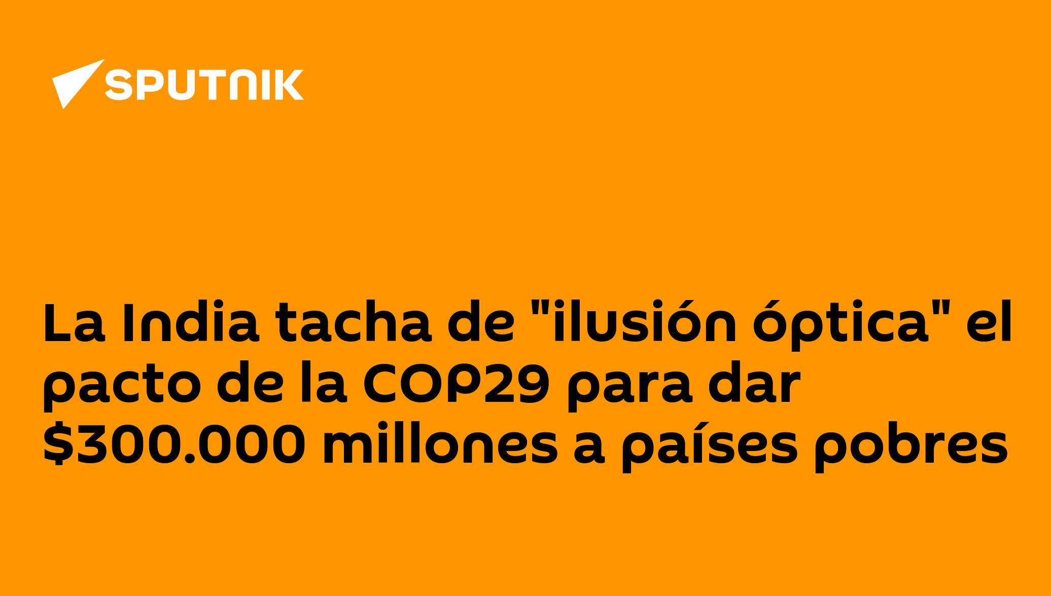 MOSCÚ (Sputnik) — La India se opuso al acuerdo aprobado en la Conferencia de la ONU sobre el Cambio Climático (COP29), que supone la asignación de 300.000 millones de dólares anuales a las naciones pobres para luchar contra el cambio climático y lo tildó de "una ilusión óptica", informó el periódico 'The Indian Express'.