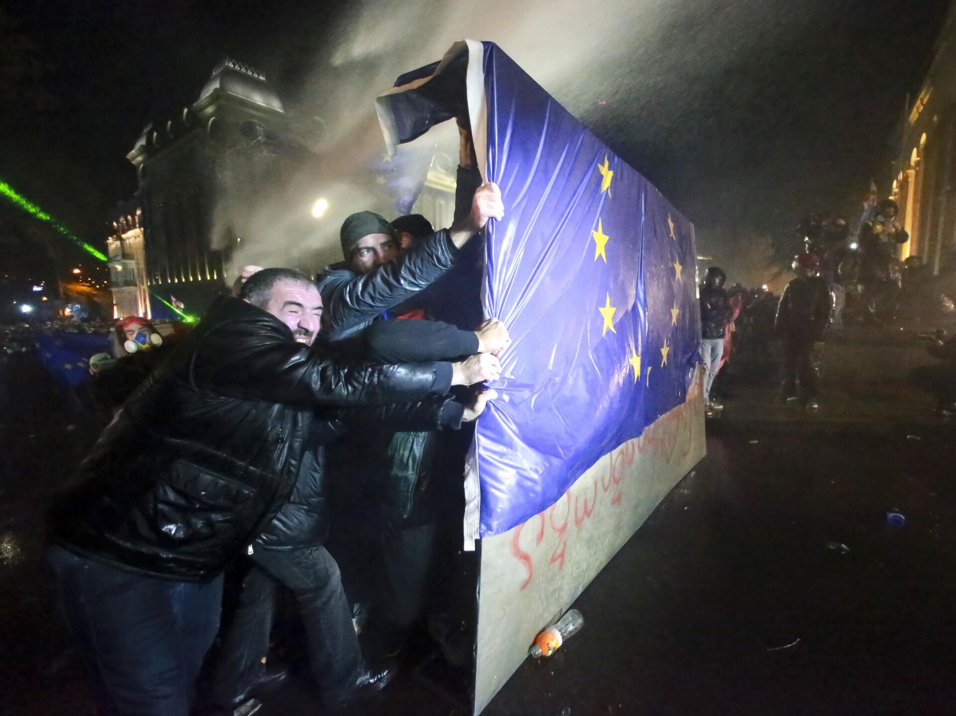 Los manifestantes, a los que se unió en un momento la presidenta de Georgia, Salomé Zurabishvili, arrojan objetos contundentes y artefactos pirotécnicos a las fuerzas del orden que, a su vez, tratan de dispersar la multitud con cañones de agua y gases lacrimógenos. Decenas de personas resultaron heridas y cientos fueron detenidas en los últimos días al calor de violentas protestas en Tiflis.