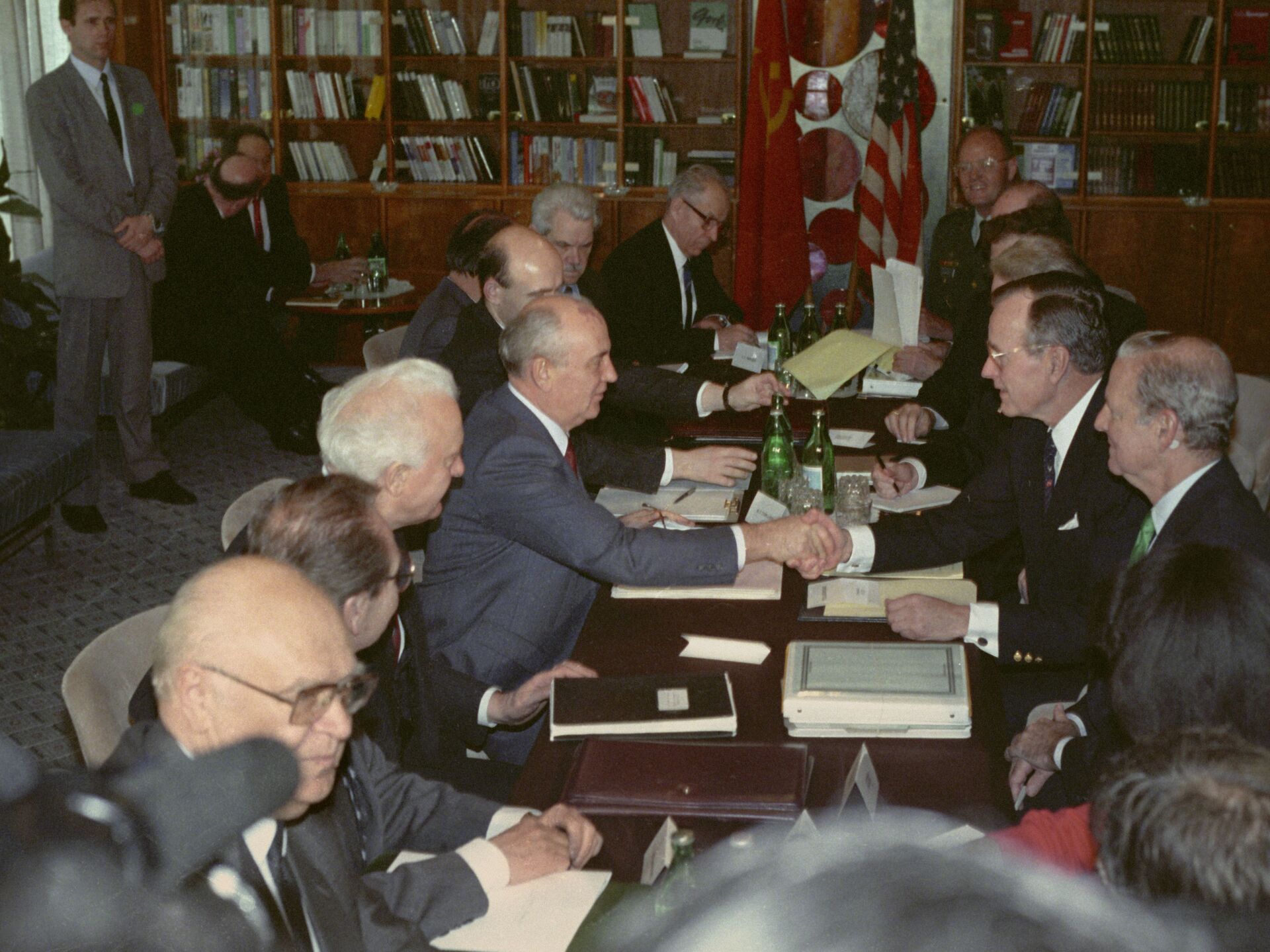 "En el plano estratégico, los métodos y enfrentamientos de la Guerra Fría han sufrido una derrota. Lo reconocemos. Y quizá lo reconozca aún mejor el público en general", dijo Mijaíl Gorbachov a George H.W. Bush durante las conversaciones.
