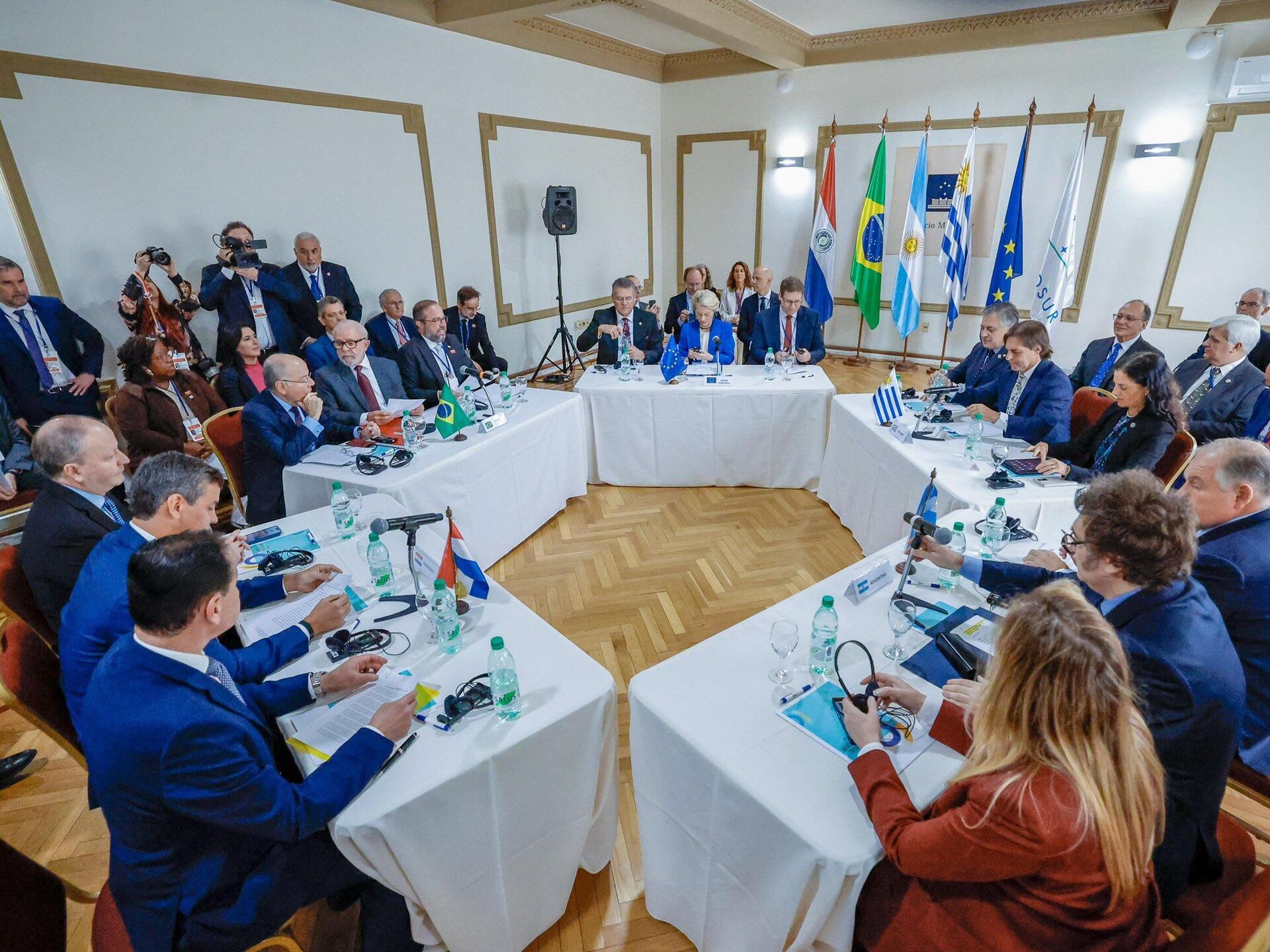 "El pacto es auspicioso, aunque su factibilidad es todavía una incógnita": la frase del analista internacional argentino Rodrigo Ventura de Marco sintetiza el espíritu del anuncio del tratado comercial entre el Mercado Común del Sur (Mercosur) y la Unión Europea. Tras 25 años de idas y vueltas, el acuerdo birregional se encamina a concretarse. De llegar a buen puerto, nacerá la mayor zona de libre intercambio del planeta.En diálogo con Sputnik, el experto remarcó que, si bien "supone muchos beneficios a nivel comercial", simultáneamente despierta "muchas objeciones por parte de países europeos en torno a los intereses de países productores en materia agrícola y ganadera, tales como Francia". La eliminación de barreras arancelarias para más del 90% de las importaciones de cada bloque ha despertado sendas críticas por parte de productores del viejo continente.La potencial resistencia de los países afectados reviste un papel central, al considerar que la viabilidad del pacto requiere la ratificación tanto del Parlamento Europeo como de los congresos de los miembros plenos del Mercosur, incluyendo la flamante incorporación de Bolivia en esta categoría. En el viejo continente, actores de peso como Francia, Hungría y Austria han dejado trascender públicamente que no firmarán.Para el politólogo Gabriel Merino, si bien existe una "resistencia implacable de productores europeos para frenar el acuerdo", las voces críticas no provienen exclusivamente del viejo continente. El consultor advirtió que "si bien el Mercosur celebra la concreción del pacto, hay que considerar que la apertura comercial puede perjudicar a los sectores industriales del bloque sudamericano".Las miradas de los analistas consultados se montan sobre un manto de optimismo reflejado en las palabras de la presidenta de la Comisión Europea, Ursula von der Leyen, quien aseguró, durante la XLV Cumbre de jefes de Estado del Mercosur, que "la alianza va a fortalecer las cadenas de valor, va a desarrollar industrias estratégicas, va a apoyar la innovación y va a crear trabajos y valores para ambos lados del Atlántico".¿Victoria del viejo continente frente a Washington?El principio de acuerdo de dos de los bloques regionales más relevantes a nivel mundial se inscribe en un panorama atravesado por cierta revitalización del proteccionismo profesado, centralmente, por el flamante presidente estadounidense electo Donald Trump. En ese marco, el pacto reviste un impacto que trasciende a los países afectados."El anuncio tiene una dimensión simbólica muy importante, sobre todo para la Unión Europea. En un tablero global signado por el triunfo de Trump, esto puede verse como un triunfo para Von der Leyen, como prueba de poder", apuntó Merino.Consultado por Sputnik, el analista Juan Venturino afirmó que "hubo claros consensos a nivel birregional que posibilitaron que esto se concretara. El mundo pareciera haber atravesado un cambio de rumbo hacia una economía más cerrada, de la mano de Donald Trump, y esta noticia es una señal en un sentido diferente".Un dilema para MileiSi bien el libre comercio constituye una bandera indeclinable del discurso libertario profesado por el presidente argentino Javier Milei, el acuerdo no se limita a lo comercial. Por fuera de la eliminación de barreras arancelarias, la Unión Europea ha manifestado en diversas oportunidades la centralidad que reviste para su bloque la preocupación por el cuidado del ambiente, consigna ampliamente criticada por el mandatario sudamericano, para quien la denominada Agenda 2030 supone una instancia "socialista"."No está claro si los objetivos de la Unión Europa son compatibles con las banderas de Milei en relación a la lucha por el cuidado del planeta y los derechos de las minorías sexuales", dijo a este medio el politólogo y consultor Julio Burdman.En el mismo sentido se expresó el analista y periodista Eduardo Martínez, quien a consulta de Sputnik destacó que "el Gobierno argentino queda en una situación incómoda, al verse forzado a adherir a políticas que van contra su alineamiento ideológico". En ese marco, el experto consideró que "el apoyo a las consignas en cuestión puede ser una barrera para Milei".De hecho, durante su discurso al asumir la presidencia pro tempore del Mercosur, Milei destacó que el pacto "dista de ser una realidad".Durante su alocución, el presidente libertario reflejó sus críticas a la alianza regional sudamericana: "El Mercosur, que nació con la idea de profundizar nuestros lazos comerciales, terminó convirtiéndose en una prisión que no permite que sus países miembros puedan aprovechar ni sus ventajas comparativas, ni su potencial exportador", denunció.En efecto, el mandatario argentino llegó a la cumbre en Uruguay con un objetivo claro: plantear a los otros países del bloque la necesidad de entablar tratados de libre comercio con terceros sin romper el acuerdo regional. Tácitamente, todos los caminos conducen al gran hermano del norte: Estados Unidos. Si bien el presidente uruguayo saliente Luis Lacalle Pou había manifestado en reiteradas oportunidades su interés en avanzar hacia dicha dirección, hasta ahora había recibido firme resistencia por parte de sus socios.Según Venturino, "la postura de Milei va directamente en contra del Mercosur: el presidente prioriza la agenda de Estados Unidos en su inserción geopolítica. Si hasta ahora esto no cobró un calibre mayor, es porque Argentina tiene compromisos estructurales con el bloque que está obligada a respetar"."No creo que Milei se vea atraído por el Mercosur, incluso con este acuerdo: su posicionamiento hasta ahora ha sido fluctuante, sobre todo desde el triunfo de Trump. Lo que reina ahora es la imprevisibilidad del Gobierno respecto a la política exterior", remarcó el investigador.