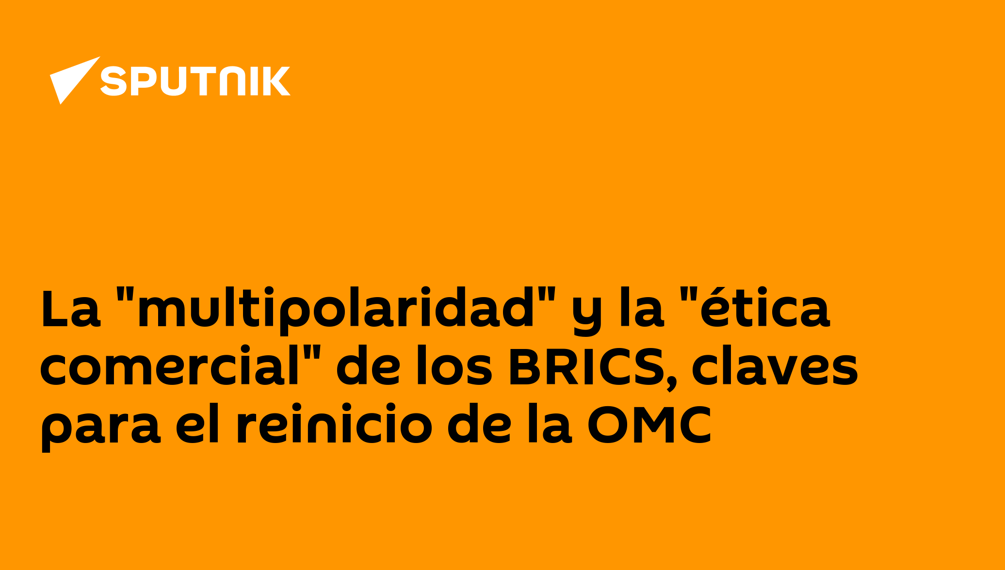 "Creo que es esencial llevar la multipolaridad y la ética de los sistemas comerciales previstos por los BRICS a la OMC, como parte de su reinicio y reestructuración", afirmó el analista.