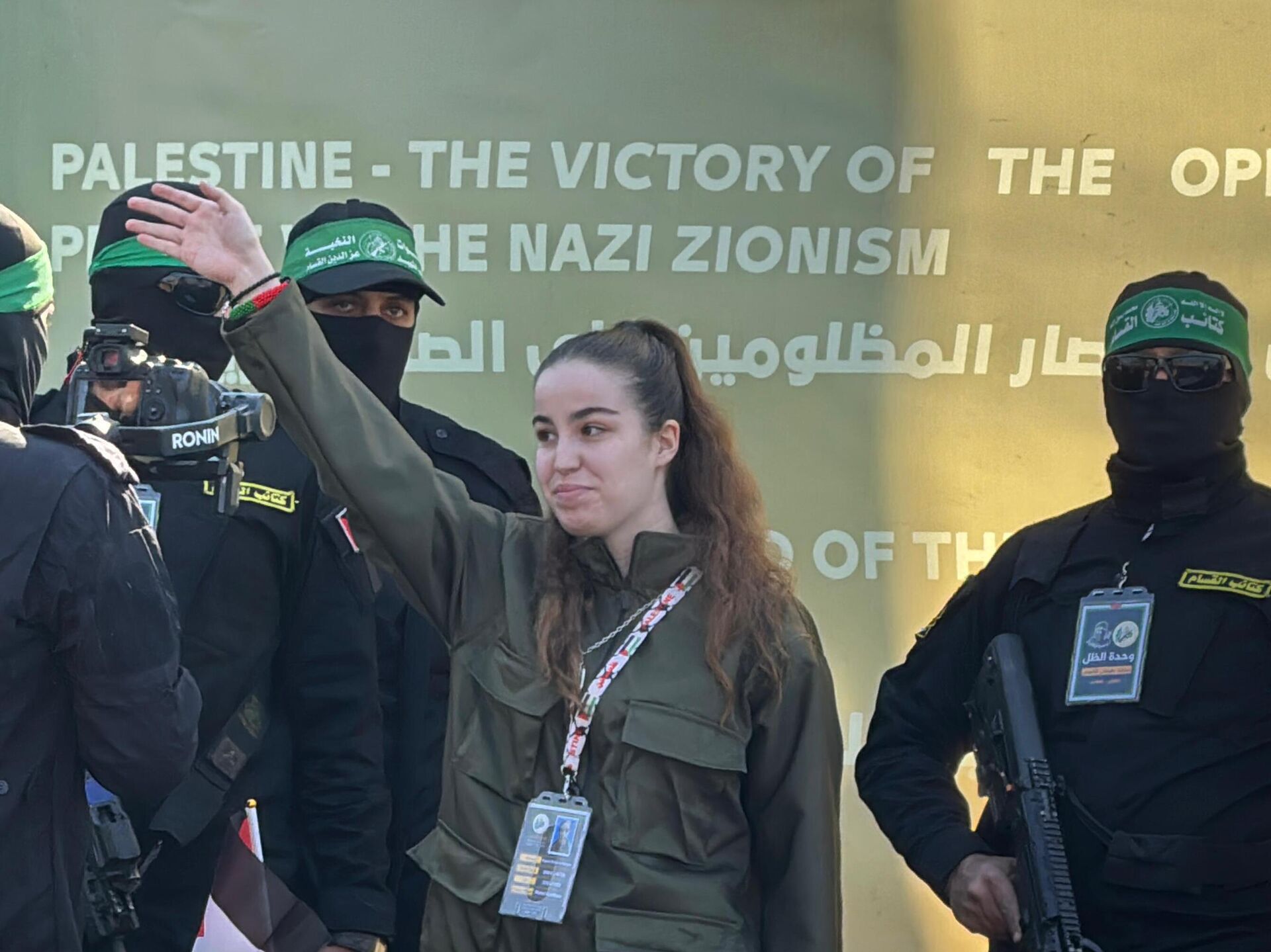 La soldado sonrió levemente y saludó con la mano antes de que bajar de un escenario y ser llevada a un vehículo de la Cruz Roja que la llevará a un equipo de militares y personal de inteligencia israelí que la llevarán a Israel.